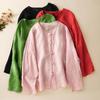 Camisa de Manga Larga con Cuello Redondo y Bordado Tridimensional de Estilo Chino Nuevo para Mujer 2025 Nuevo Top Holgado Casual de Jersey