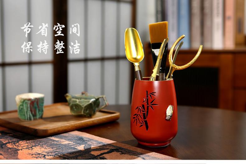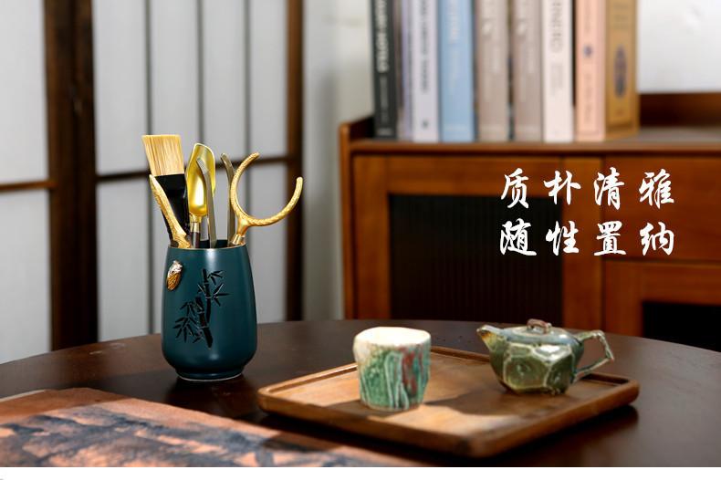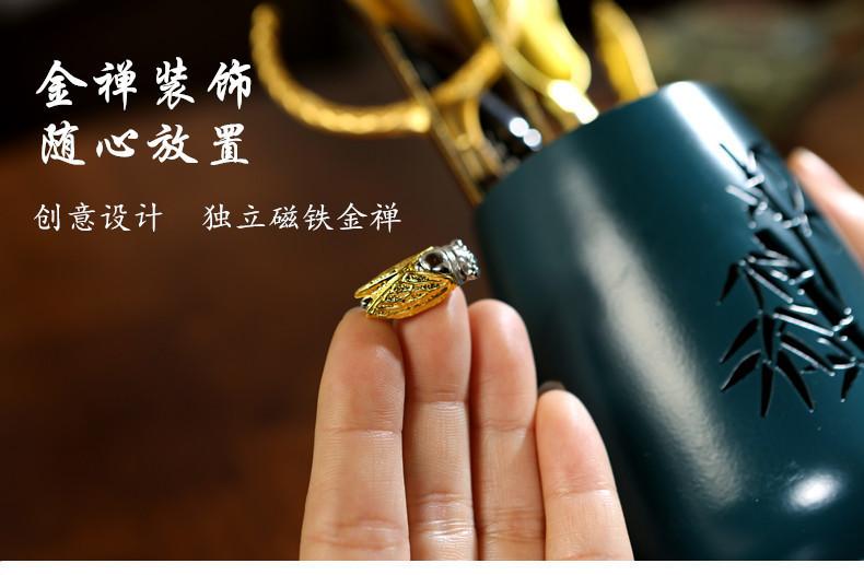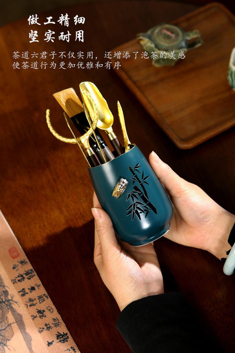 Herramientas para hacer té chino, Decoraciones de mesa de té, Juego de seis caballeros para ceremonia del té, Accesorios para juego de té Kung Fu, Móvil Oro Zen Creativo