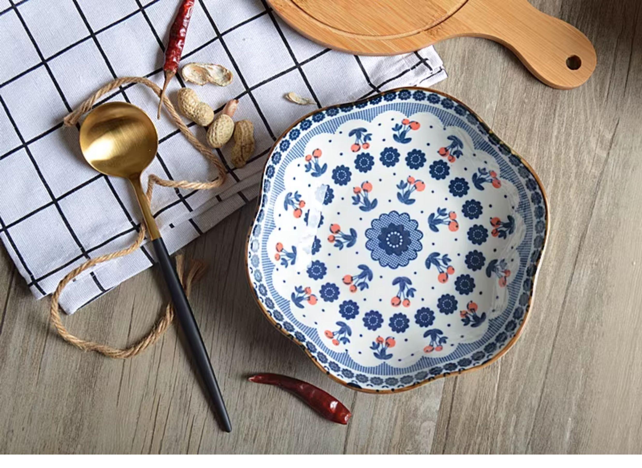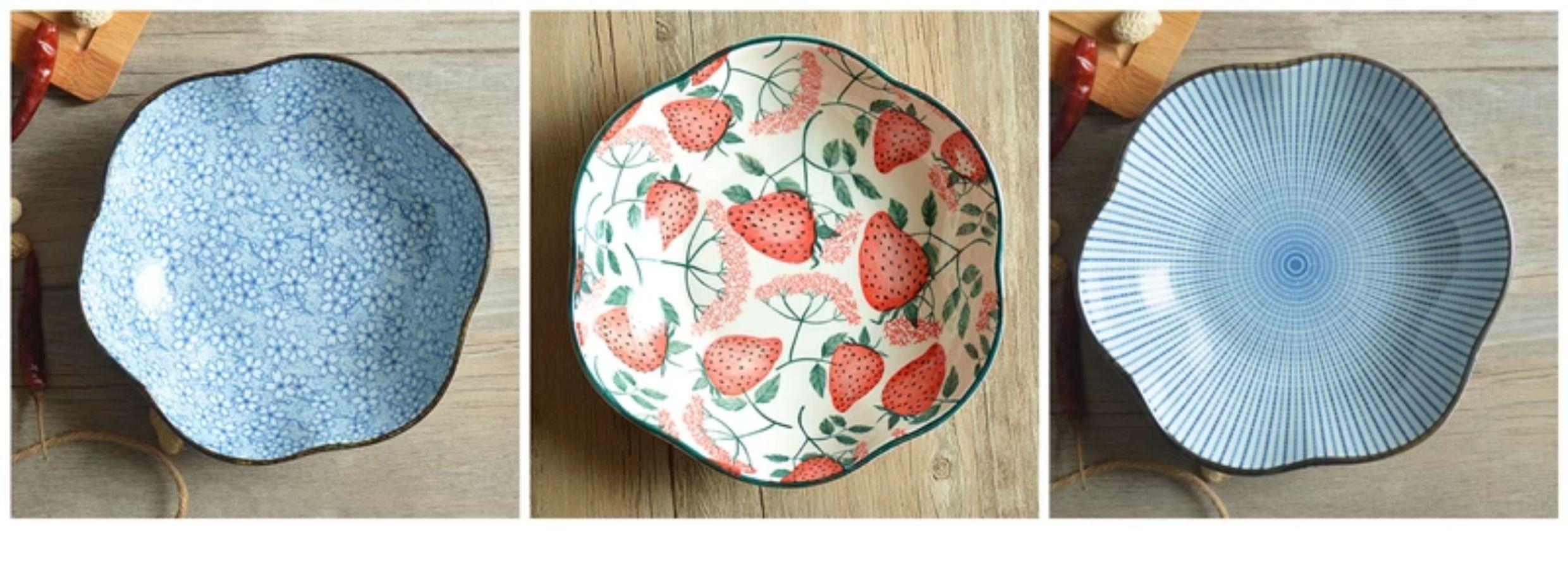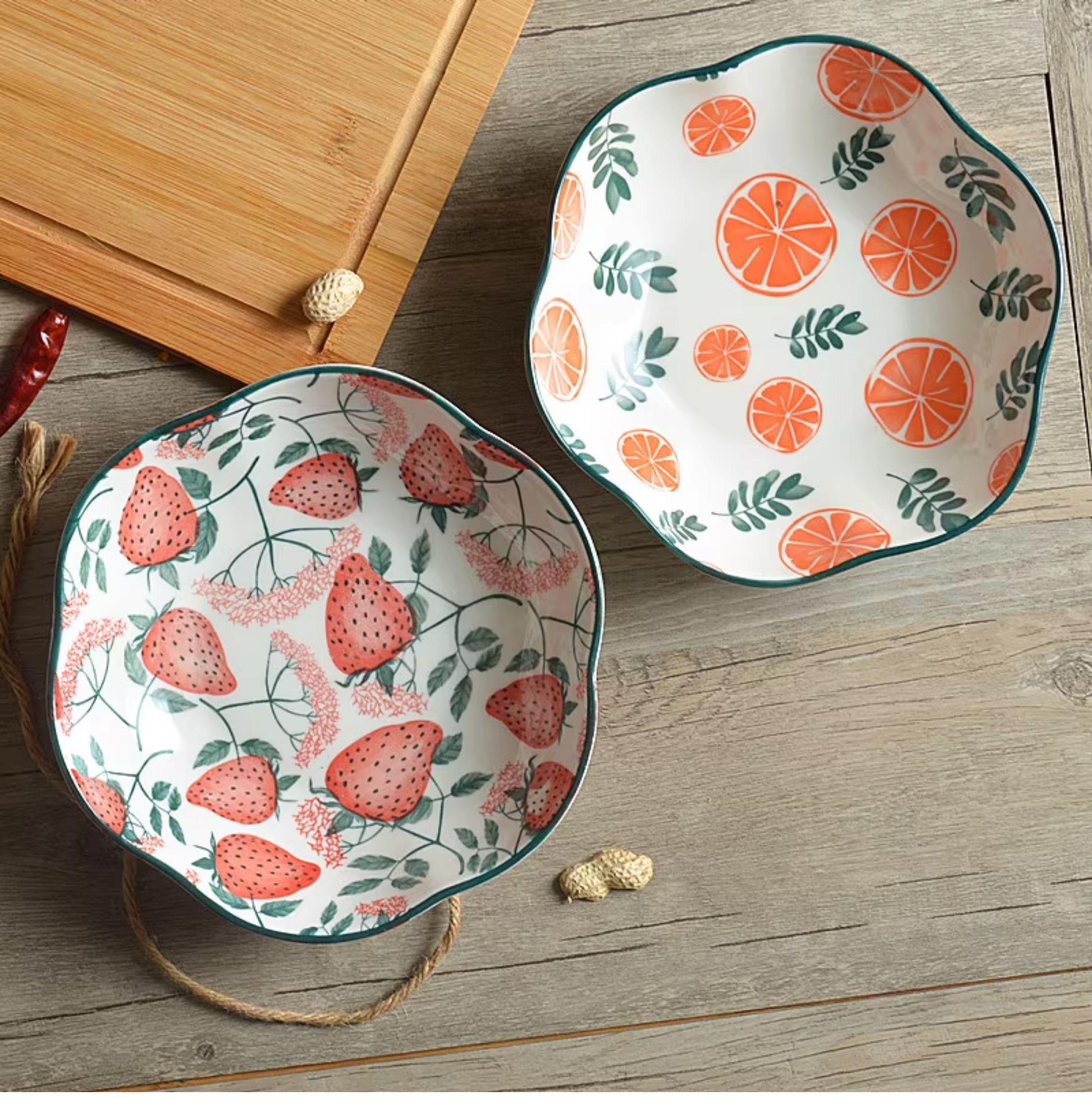 Plato de cerámica de 7.2 pulgadas con forma de flor, color bajo cubierta, creativo para el hogar, estilo nórdico, plato para desayuno, plato hondo, tazón para ensalada de frutas, tazón para hornear