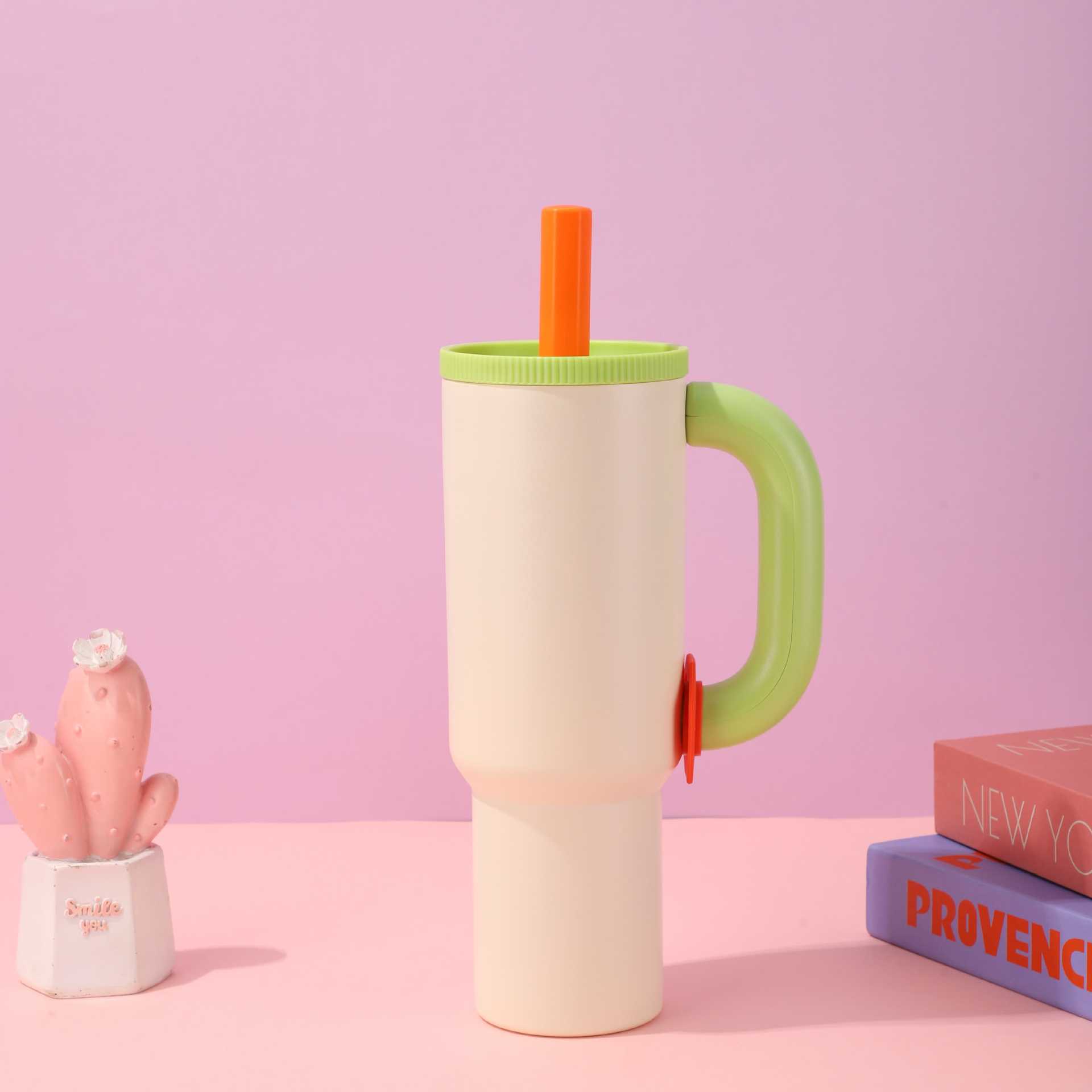 Nueva Taza para Coche con Asa de Acero Inoxidable 304, Portátil para Exteriores, Vaso Ice King de Gran Capacidad con Pajita, Vaso Aislado para Agua