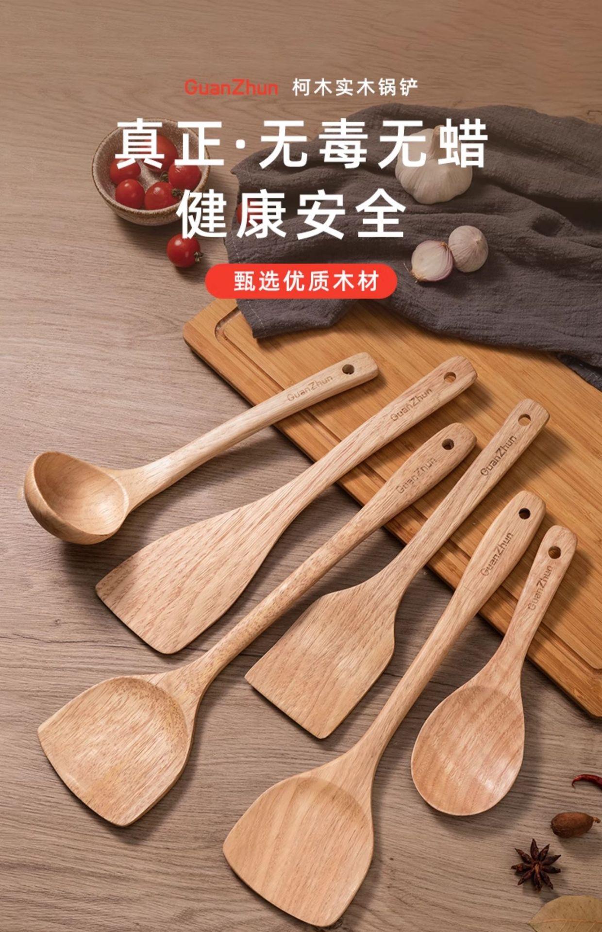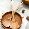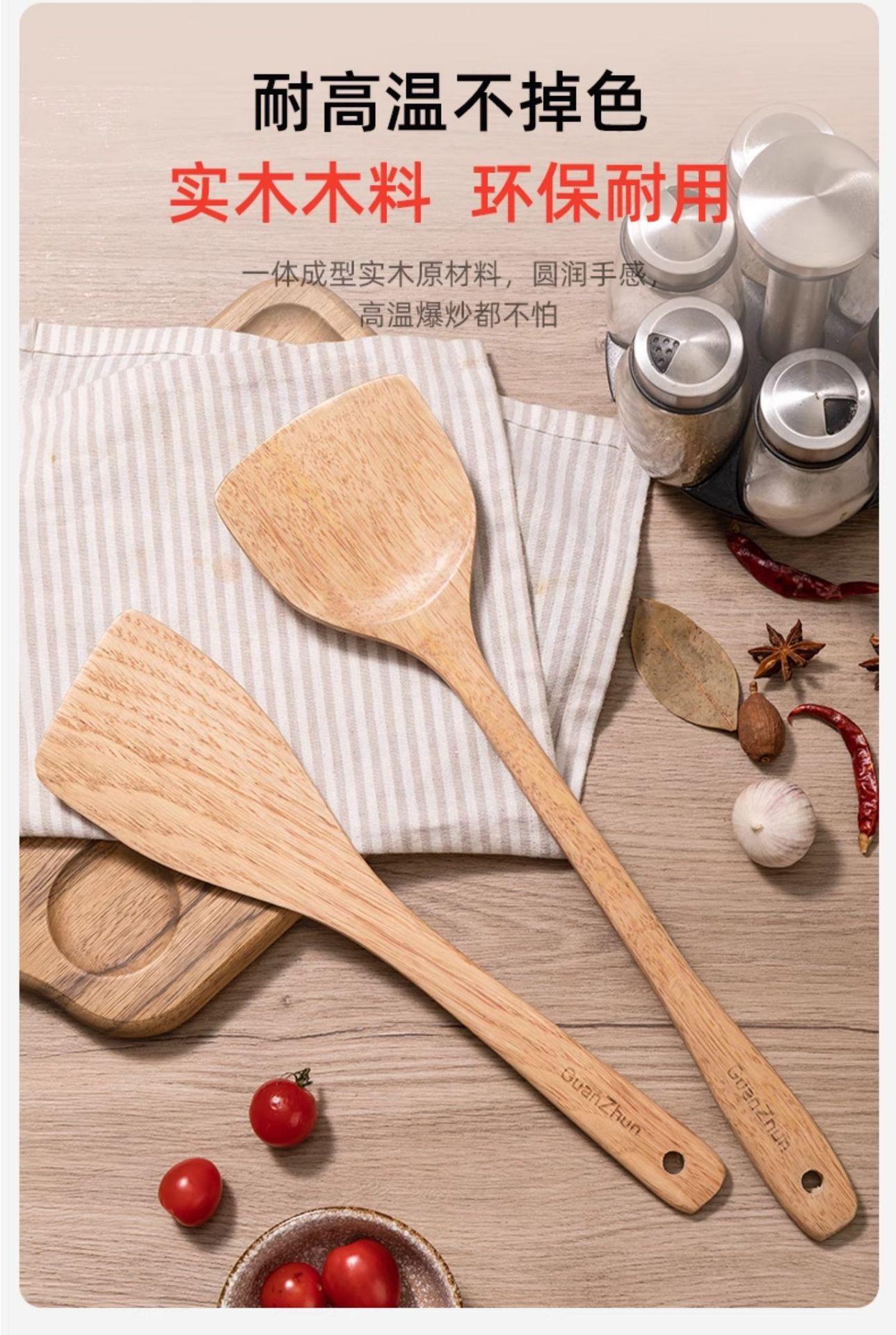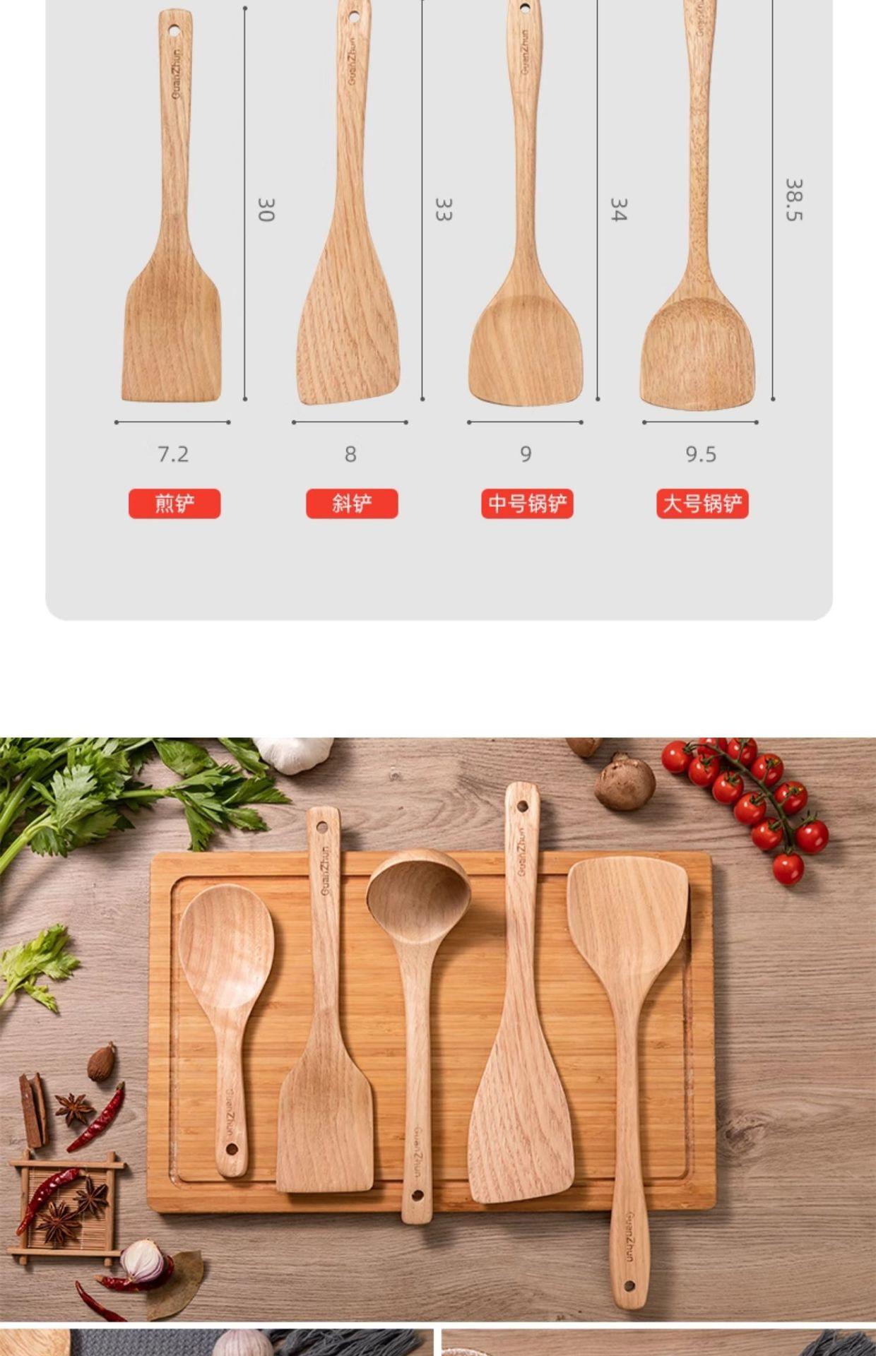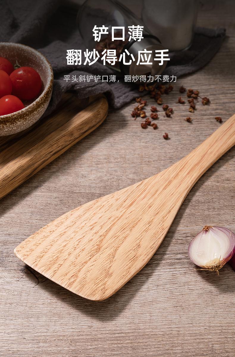 Espátula de madera para el hogar, espátula para saltear para sartén antiadherente, utensilios de cocina de madera, mano antiquemaduras que no daña la olla, madera Ko, mango largo, espátula de madera maciza