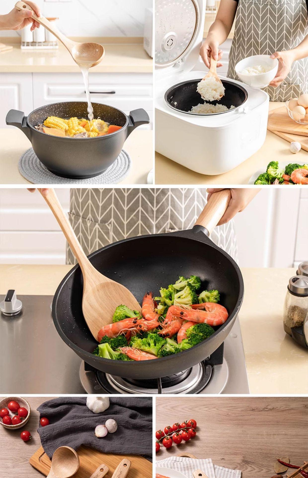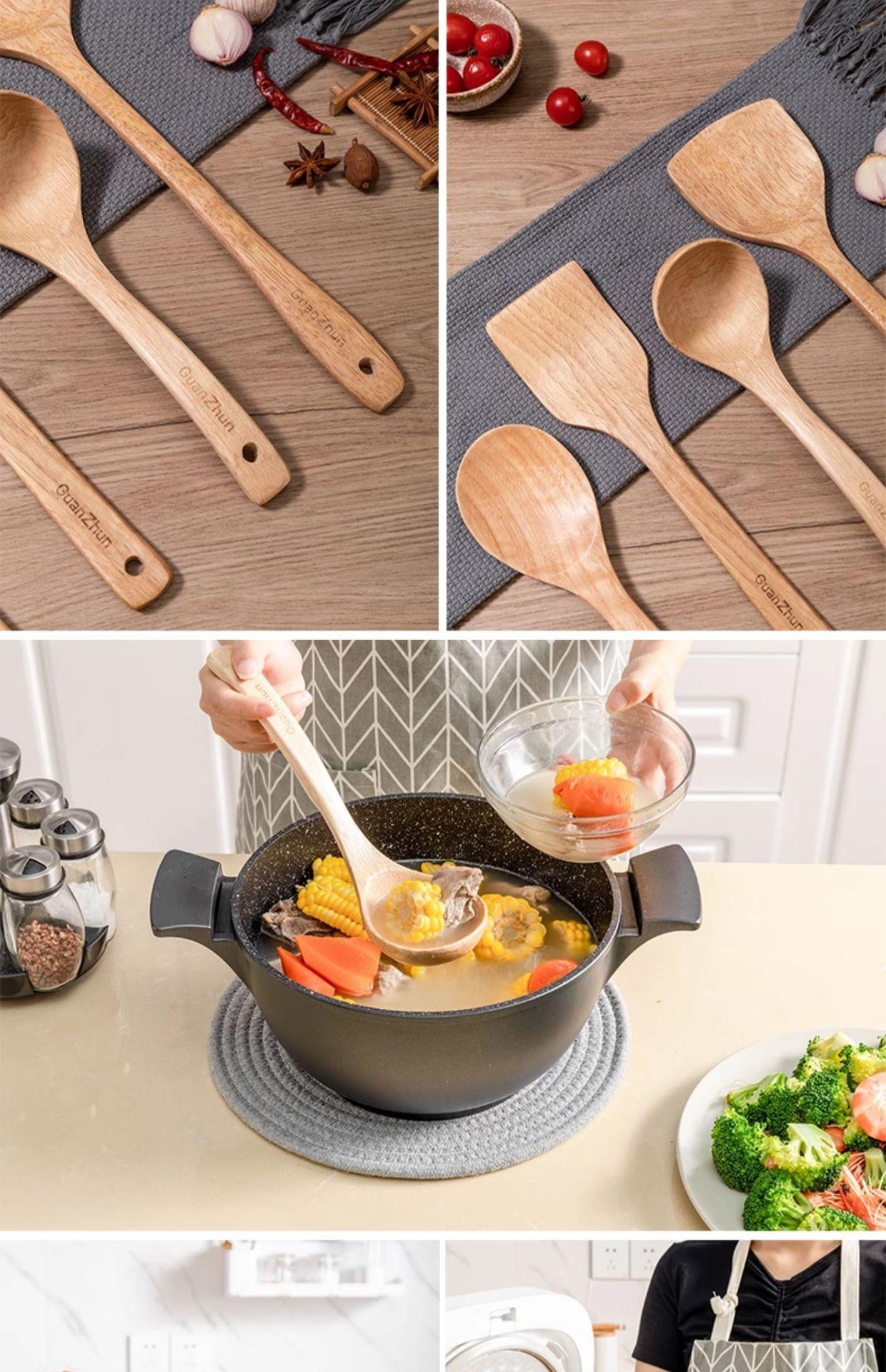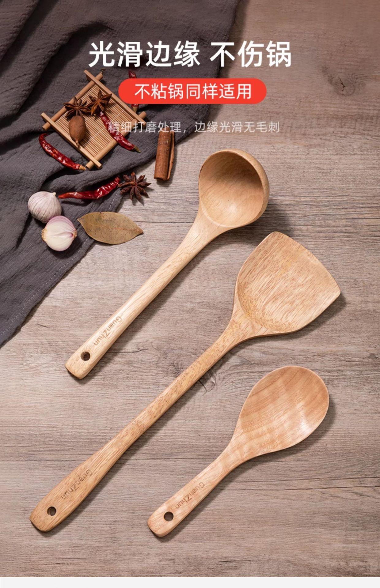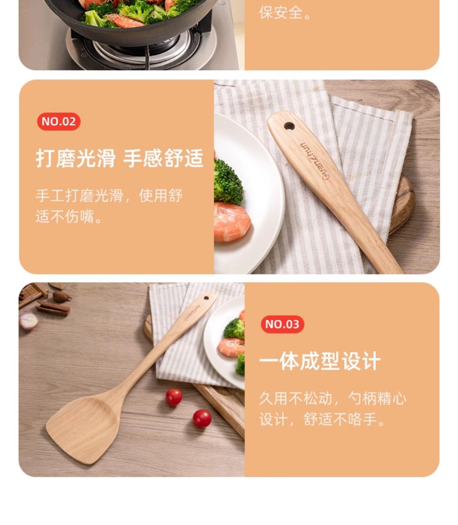 Espátula de madera para el hogar, espátula para saltear para sartén antiadherente, utensilios de cocina de madera, mano antiquemaduras que no daña la olla, madera Ko, mango largo, espátula de madera maciza