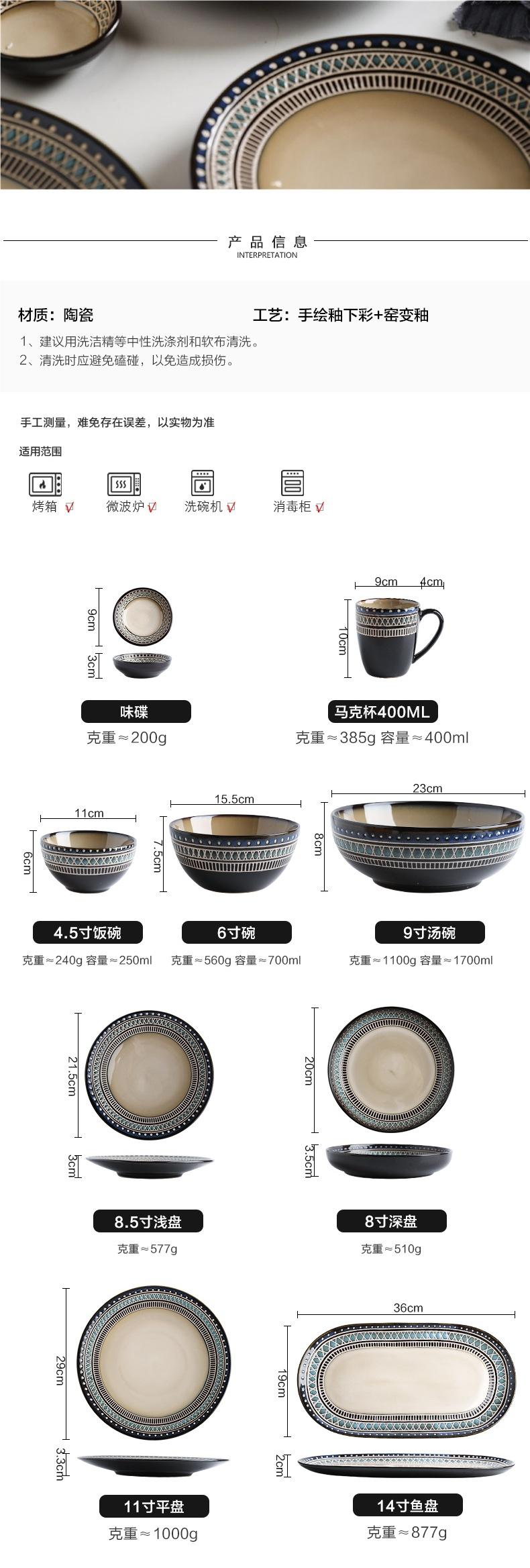 Bowls y Platos de Cerámica Retro Sherry para el Hogar Individual Tazón de Sopa Tazón de Arroz Plato Plato Occidental Plato para Bistec Tazón Plato Juego de Vajilla