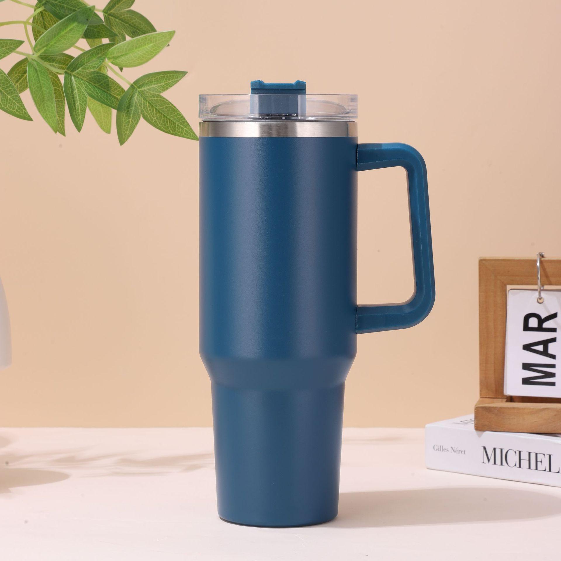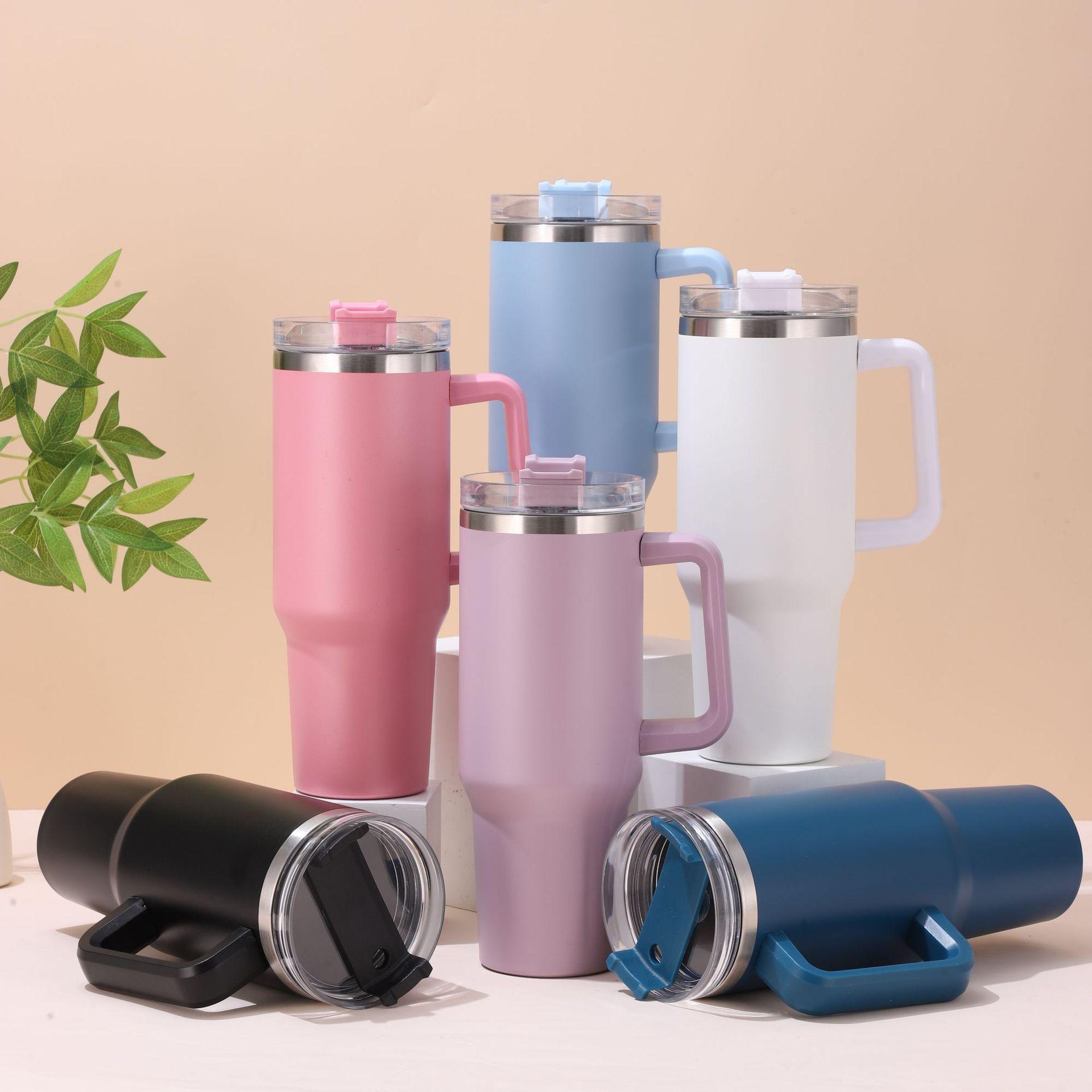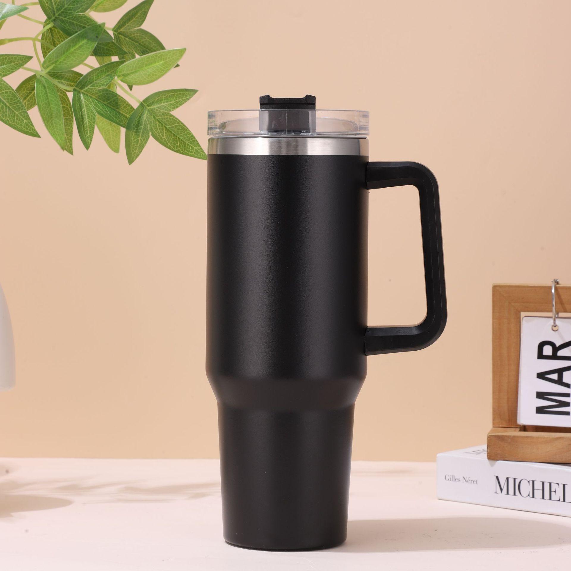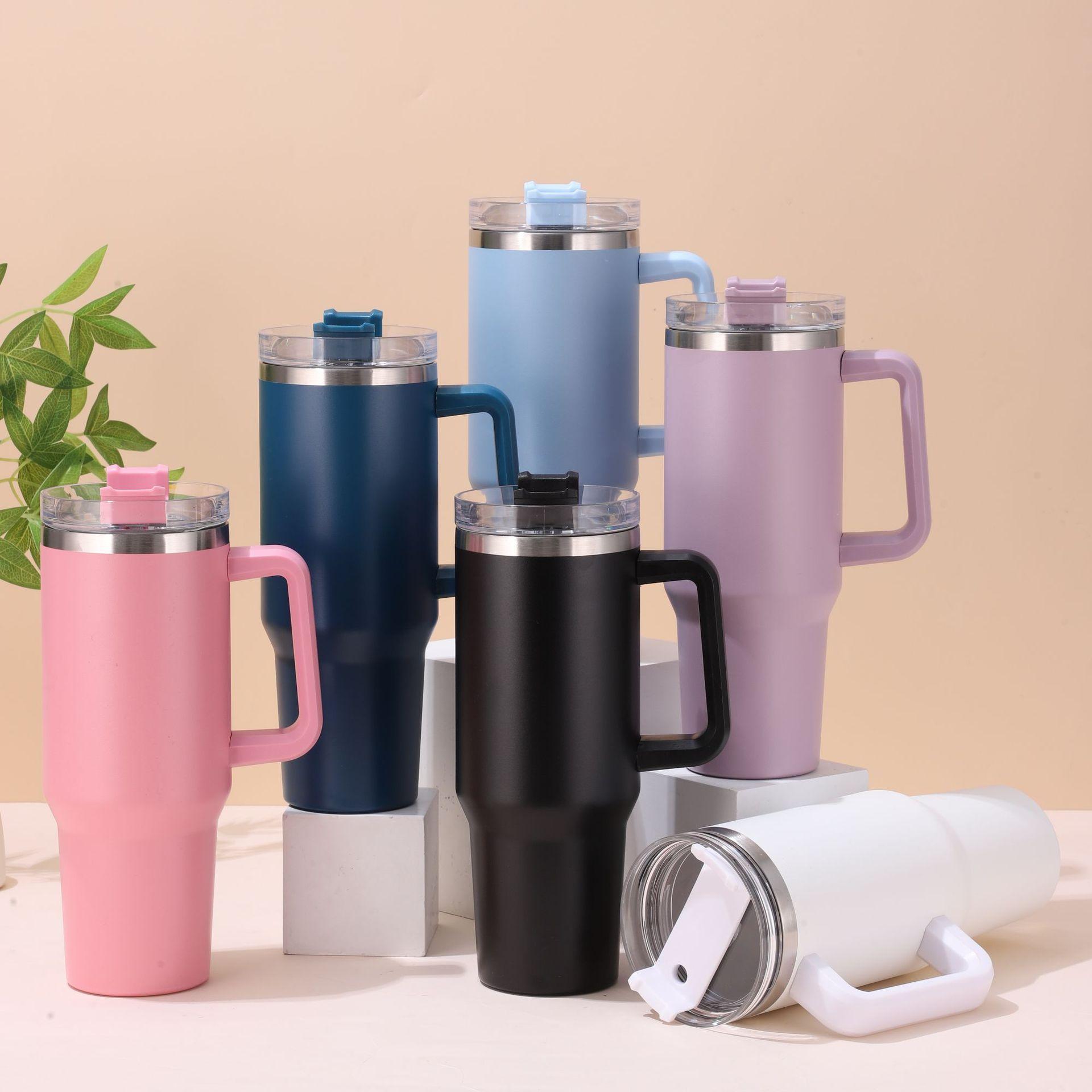 Vaso para coche de generación transfronteriza de 40 oz, termo de acero inoxidable 304 de gran capacidad con asa, popote portátil, vaso para hielo
