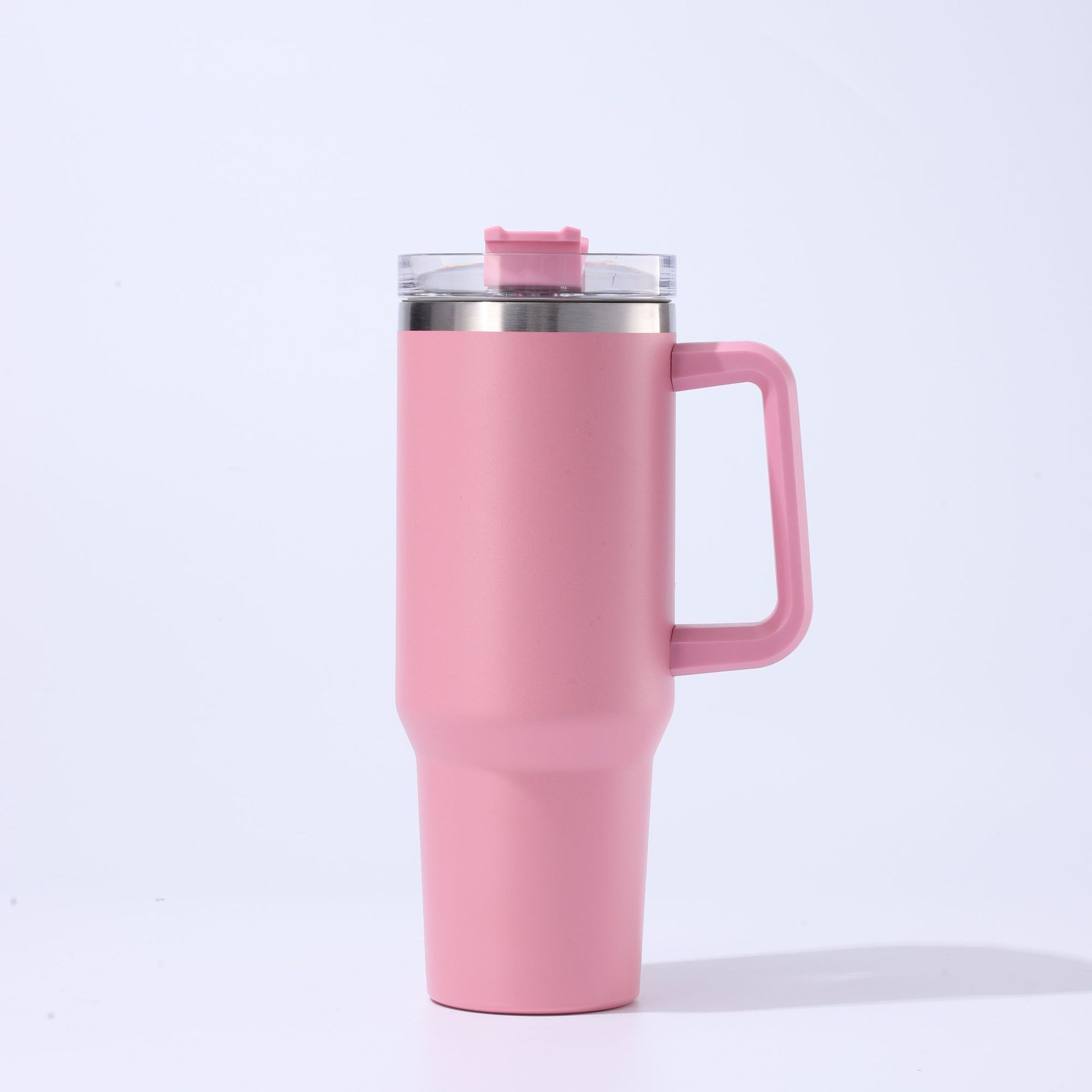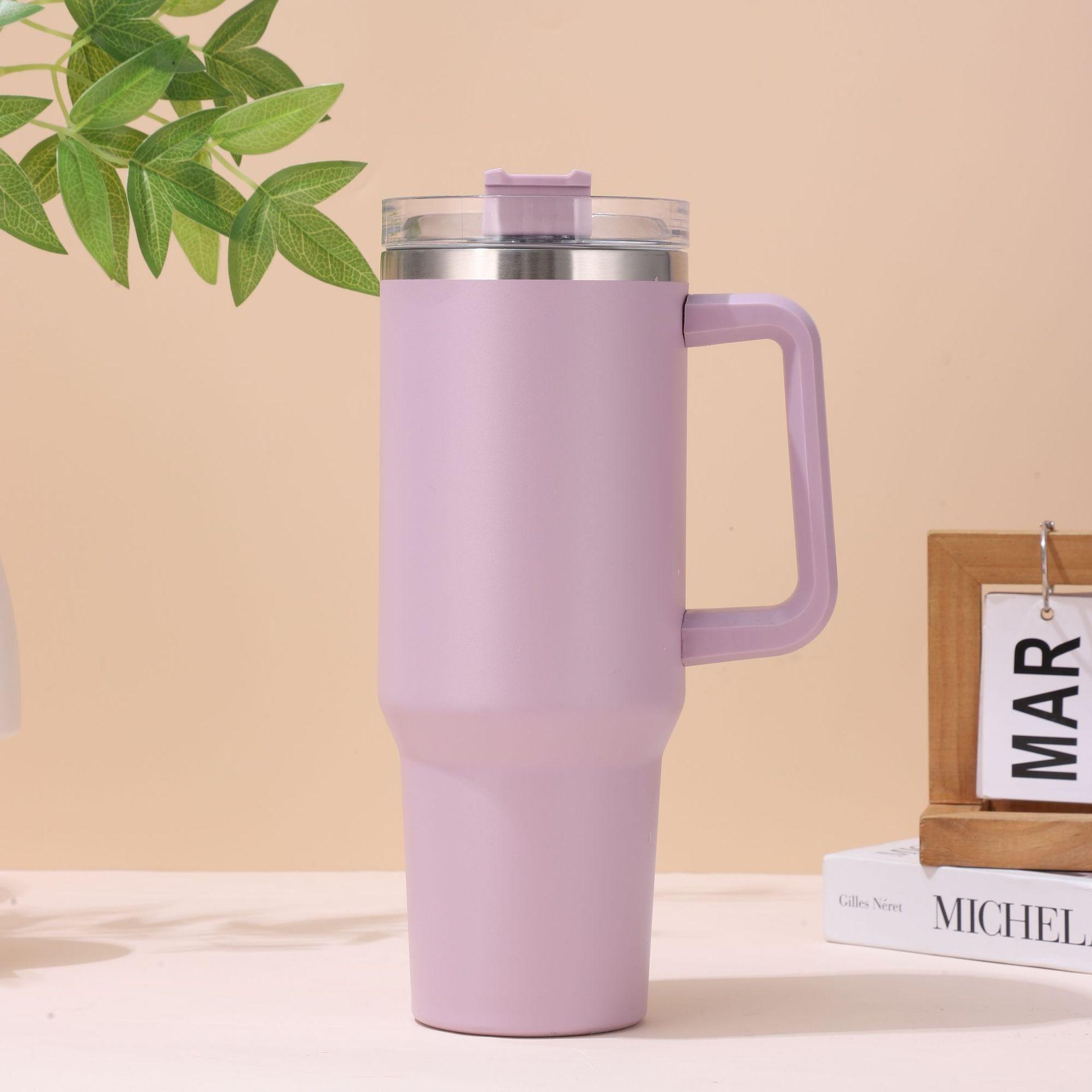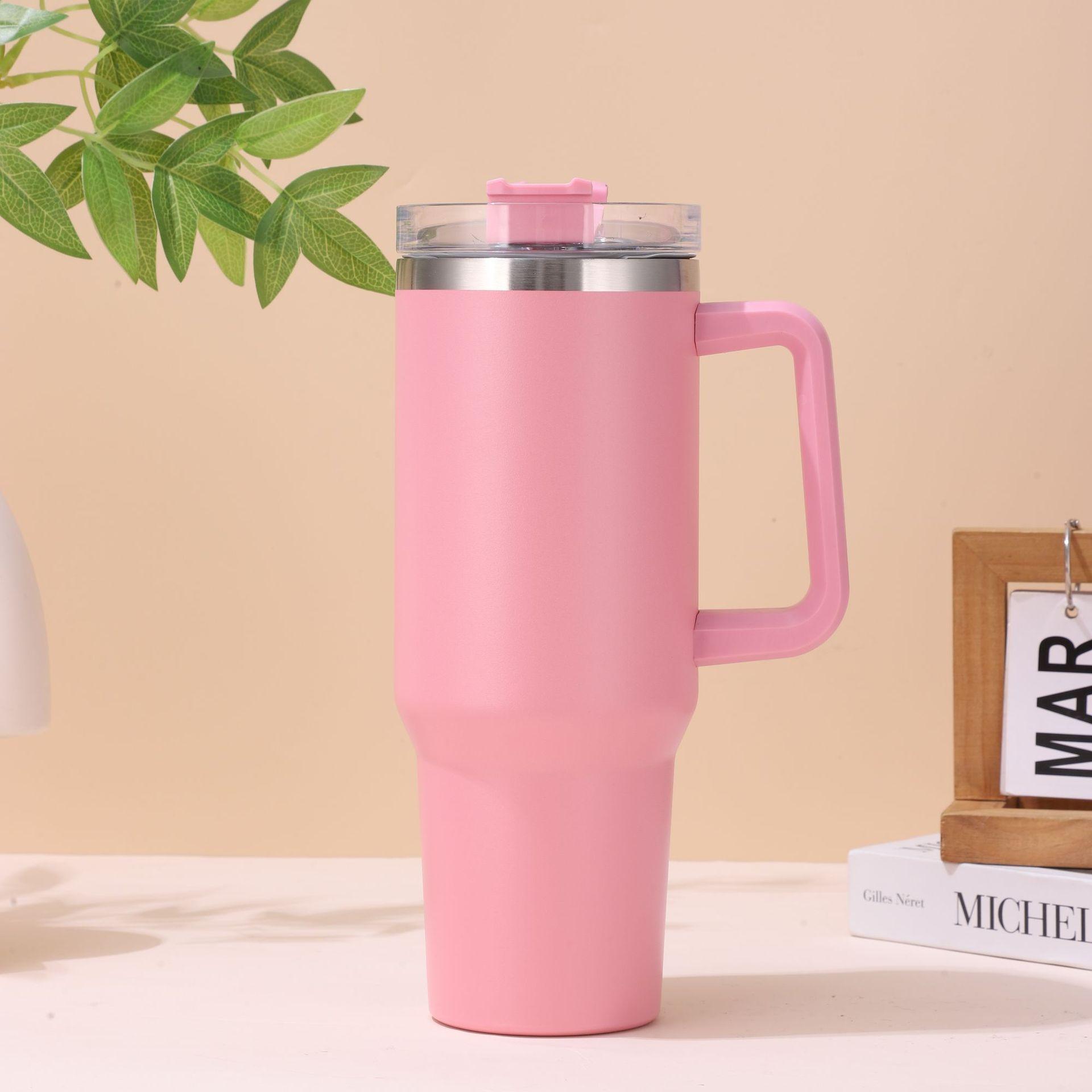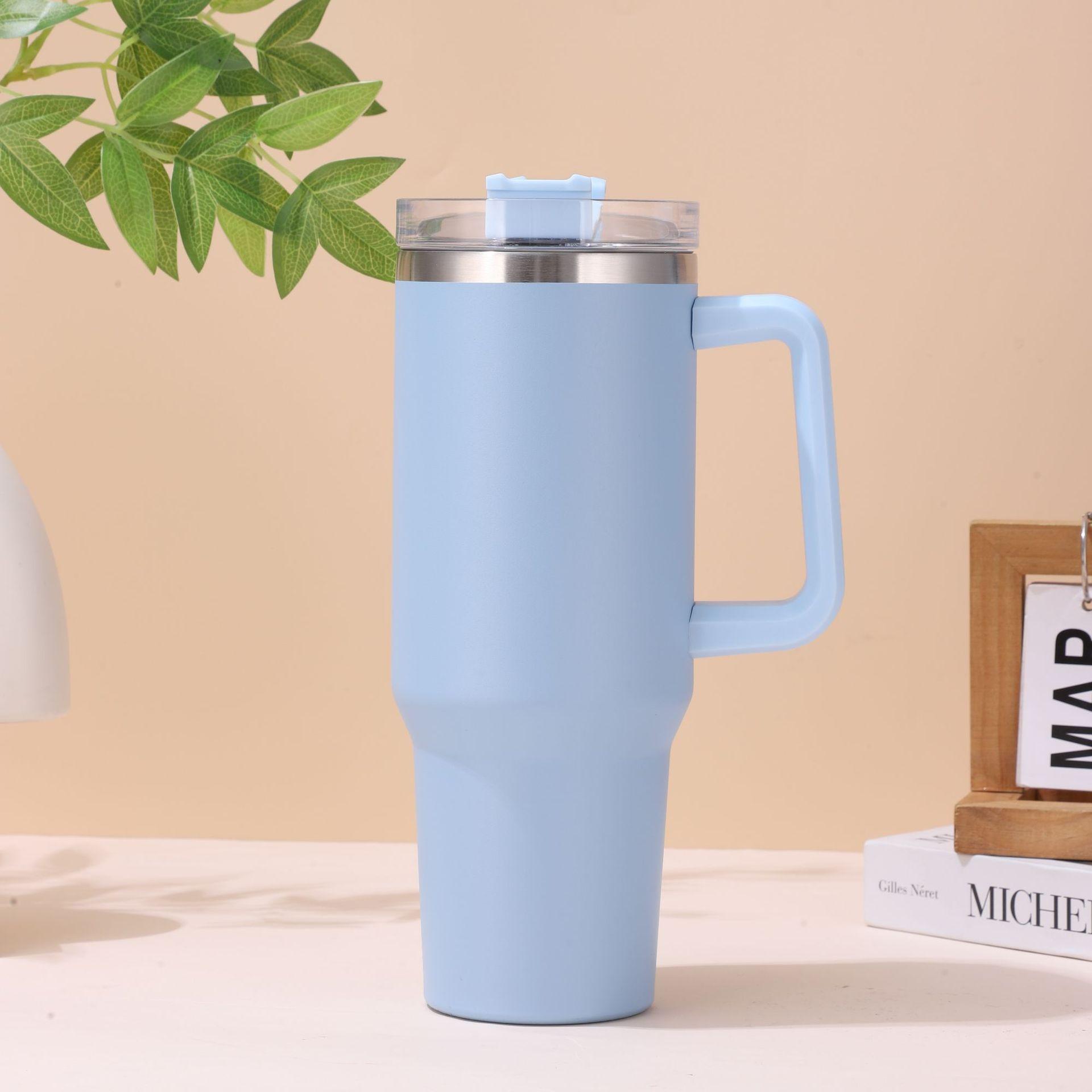 Vaso para coche de generación transfronteriza de 40 oz, termo de acero inoxidable 304 de gran capacidad con asa, popote portátil, vaso para hielo