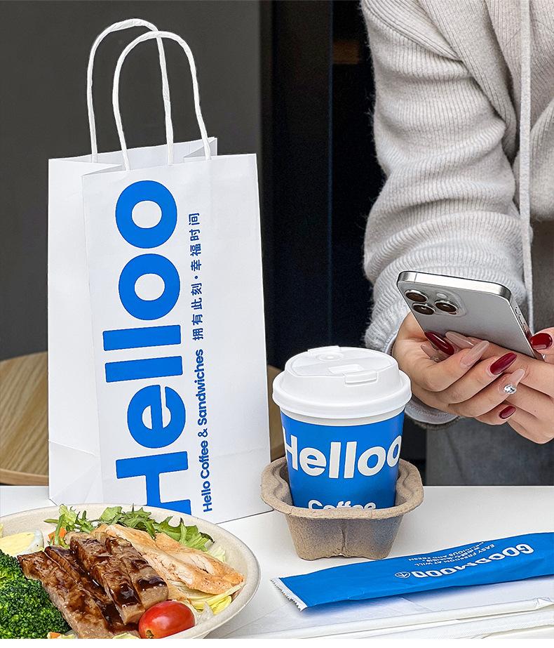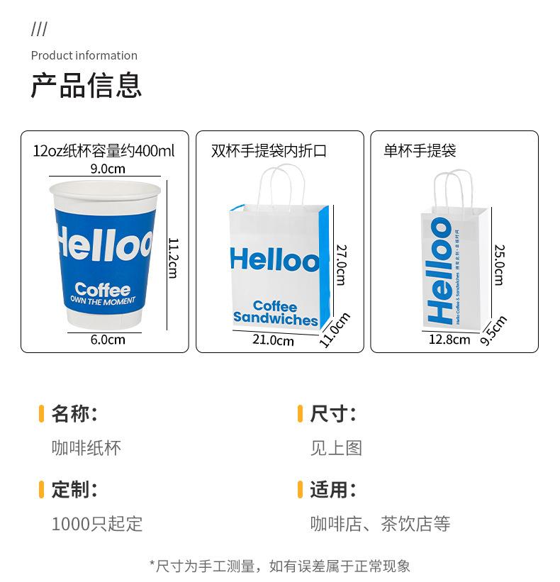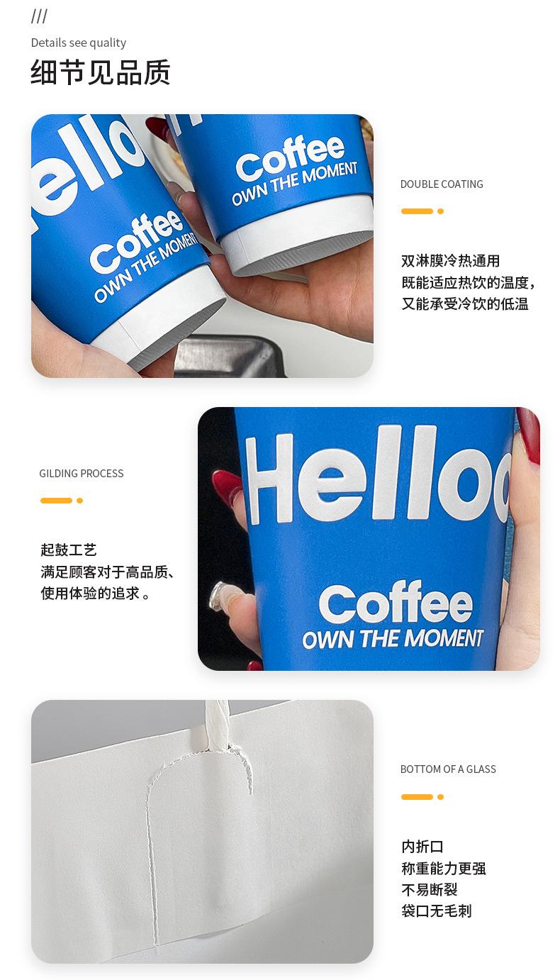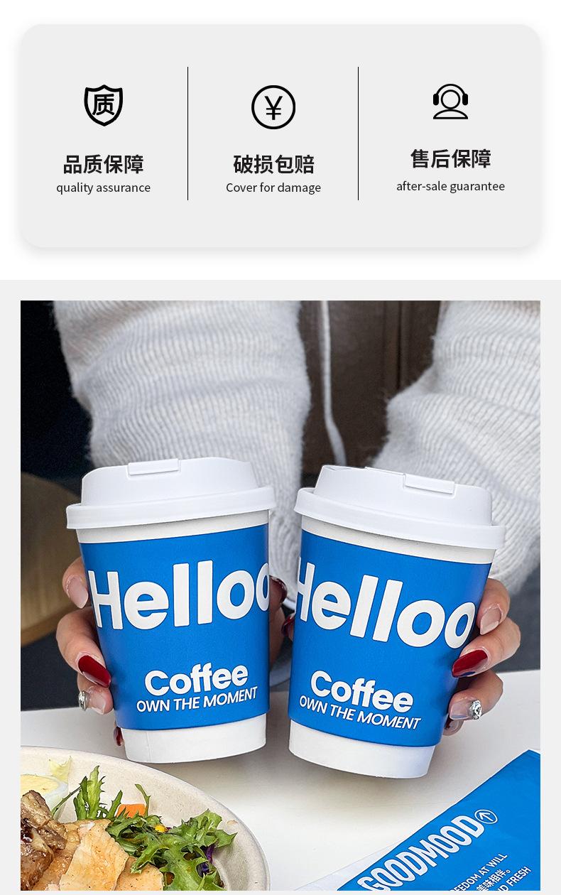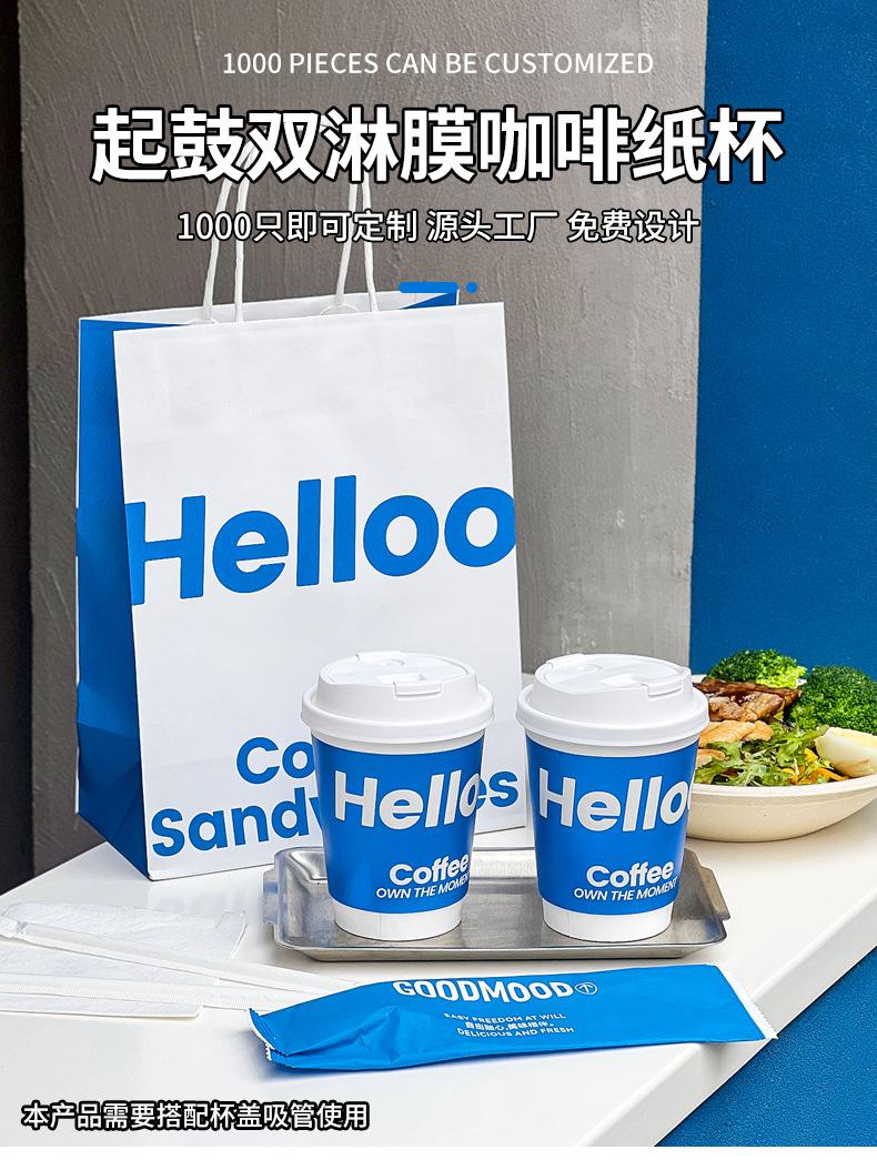 Vaso desechable para café de doble capa con película, vaso de papel para té con leche, tapa, vaso para llevar para bebida caliente, bolsa para vasos individuales y dobles, para llevar comercial