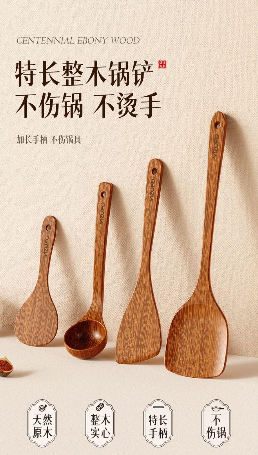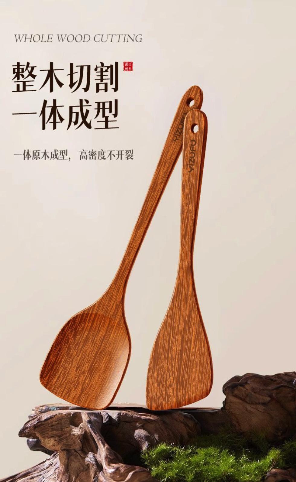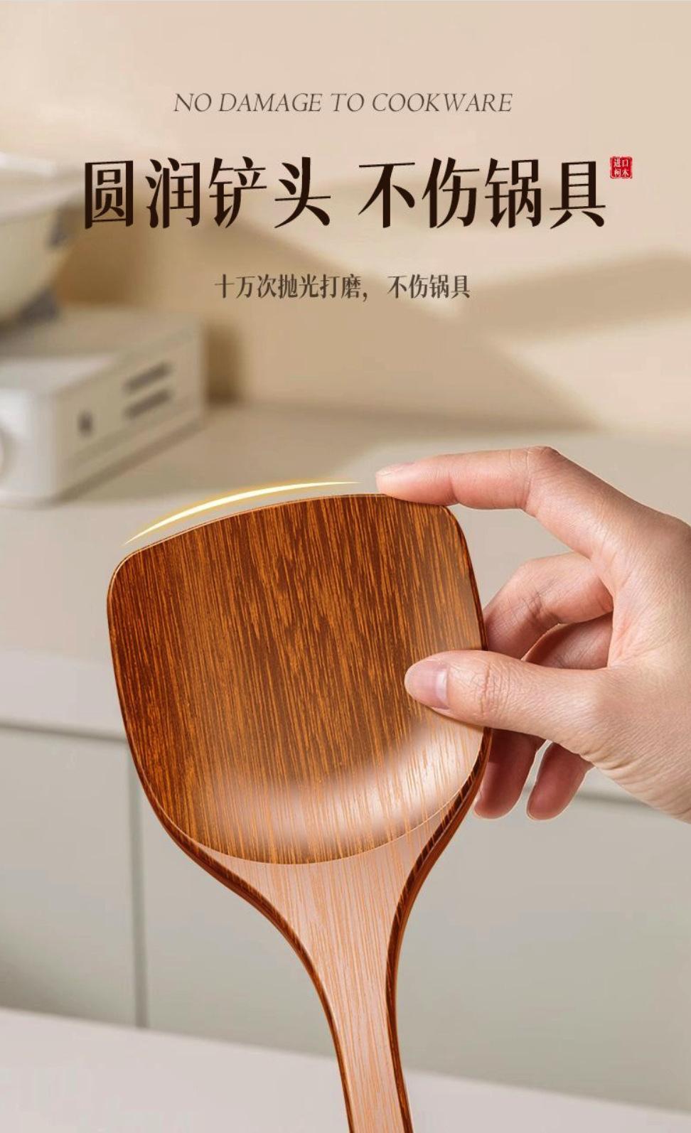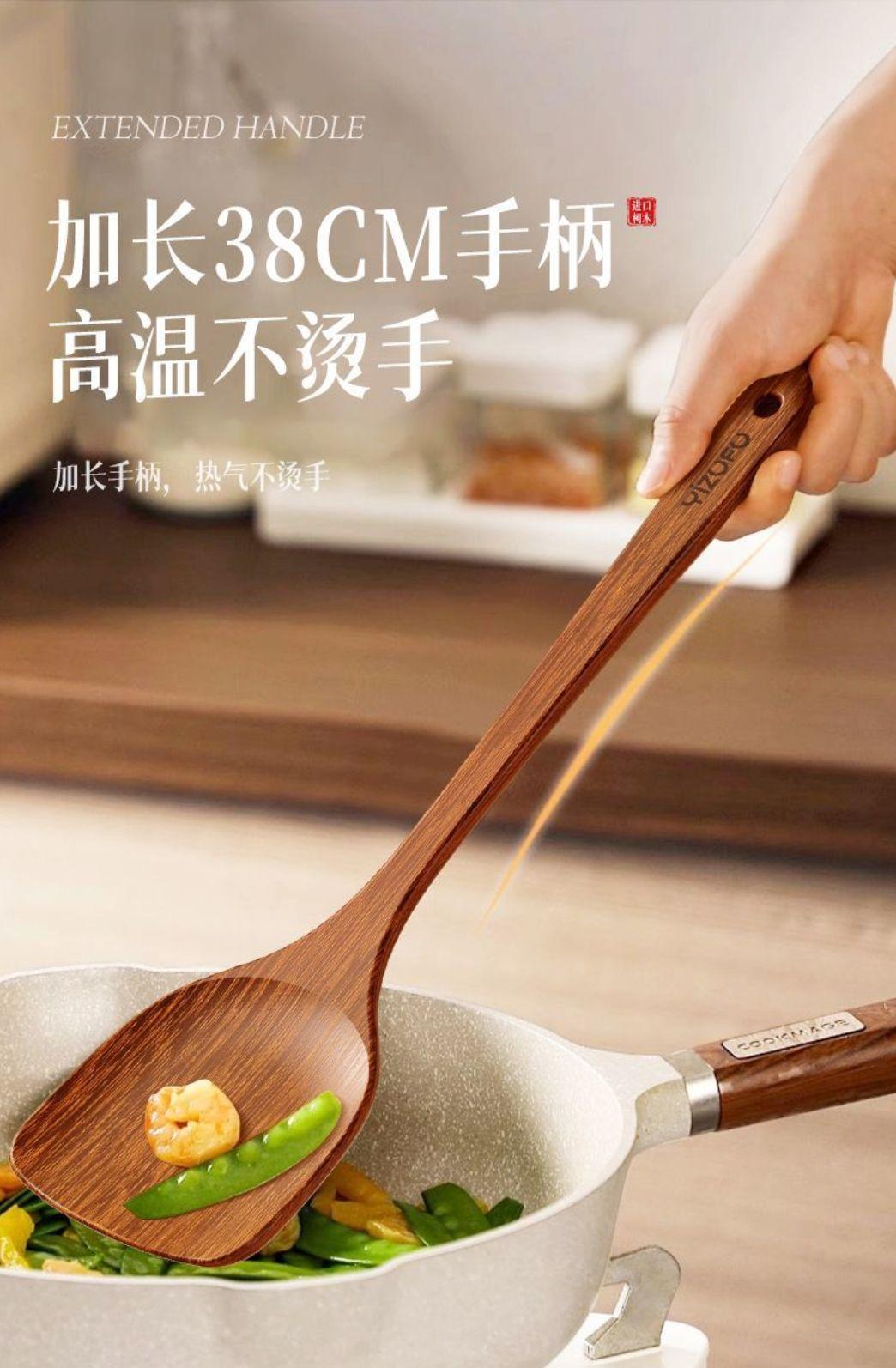 Espátula de madera entera antiadherente espátula de madera espátula de ébano espátula sin humo espátula de madera de mango largo utensilios de cocina cuchara sopera gruesa cuchara para arroz