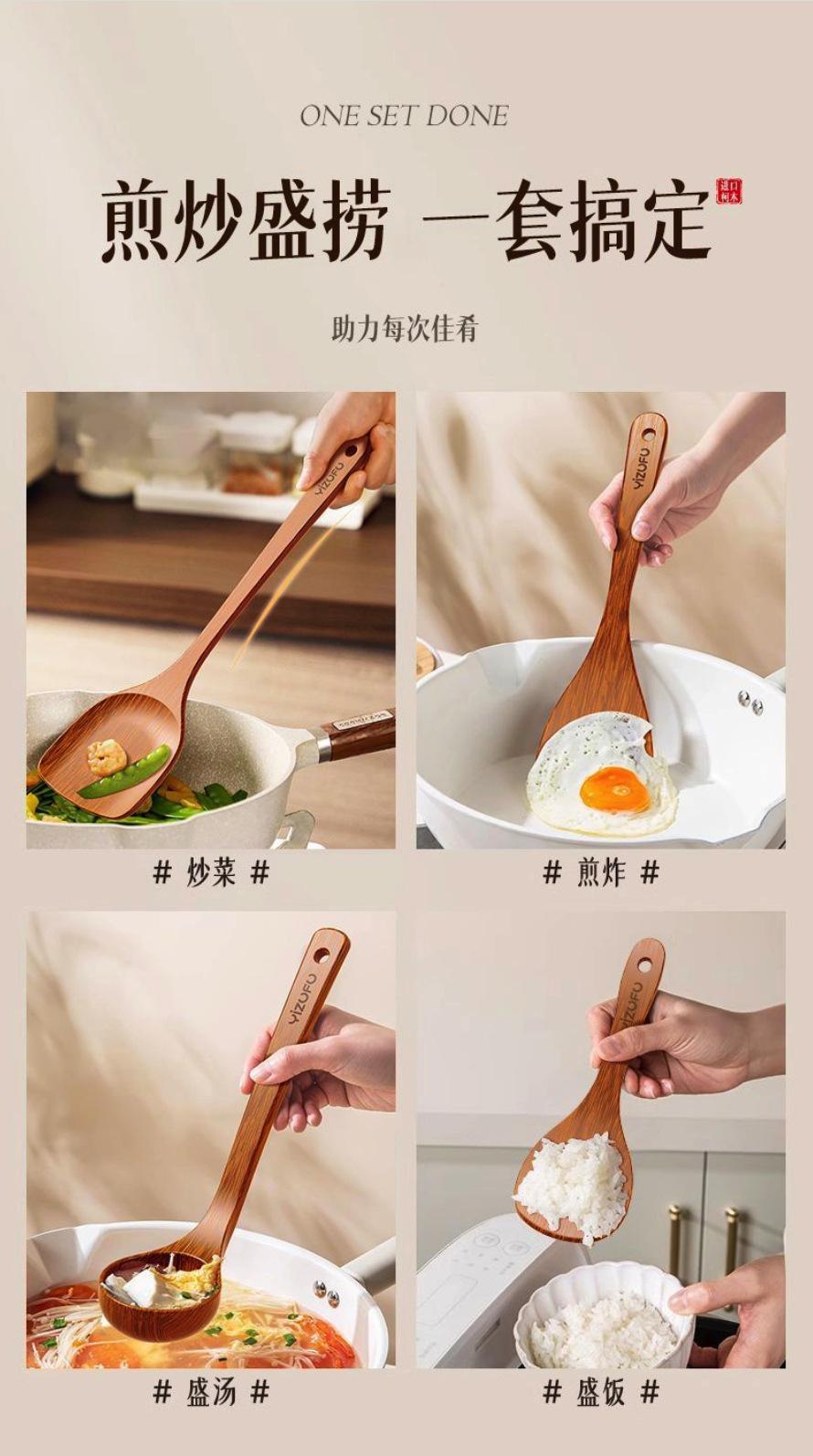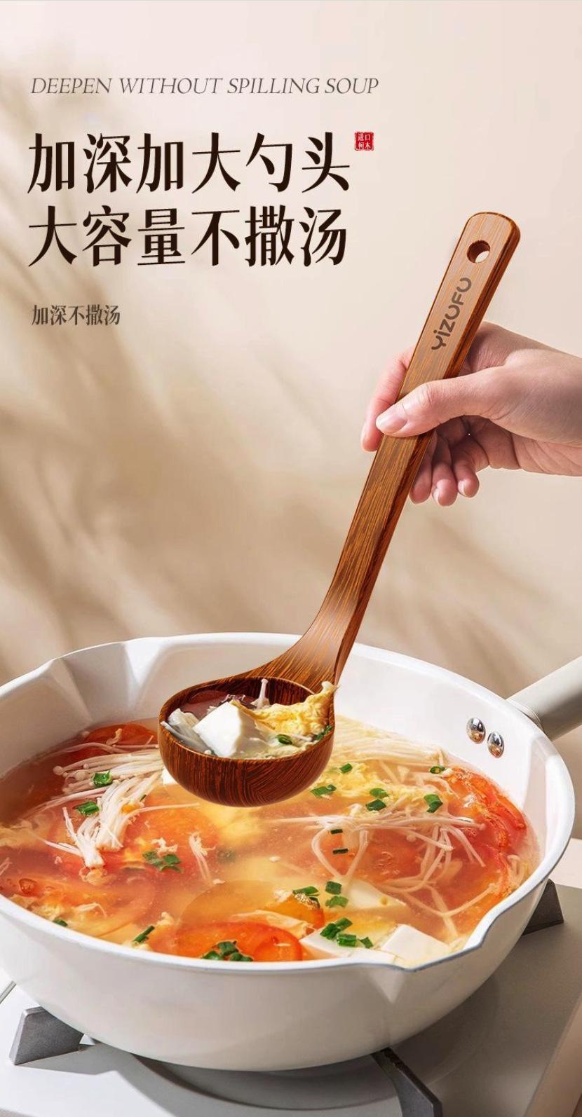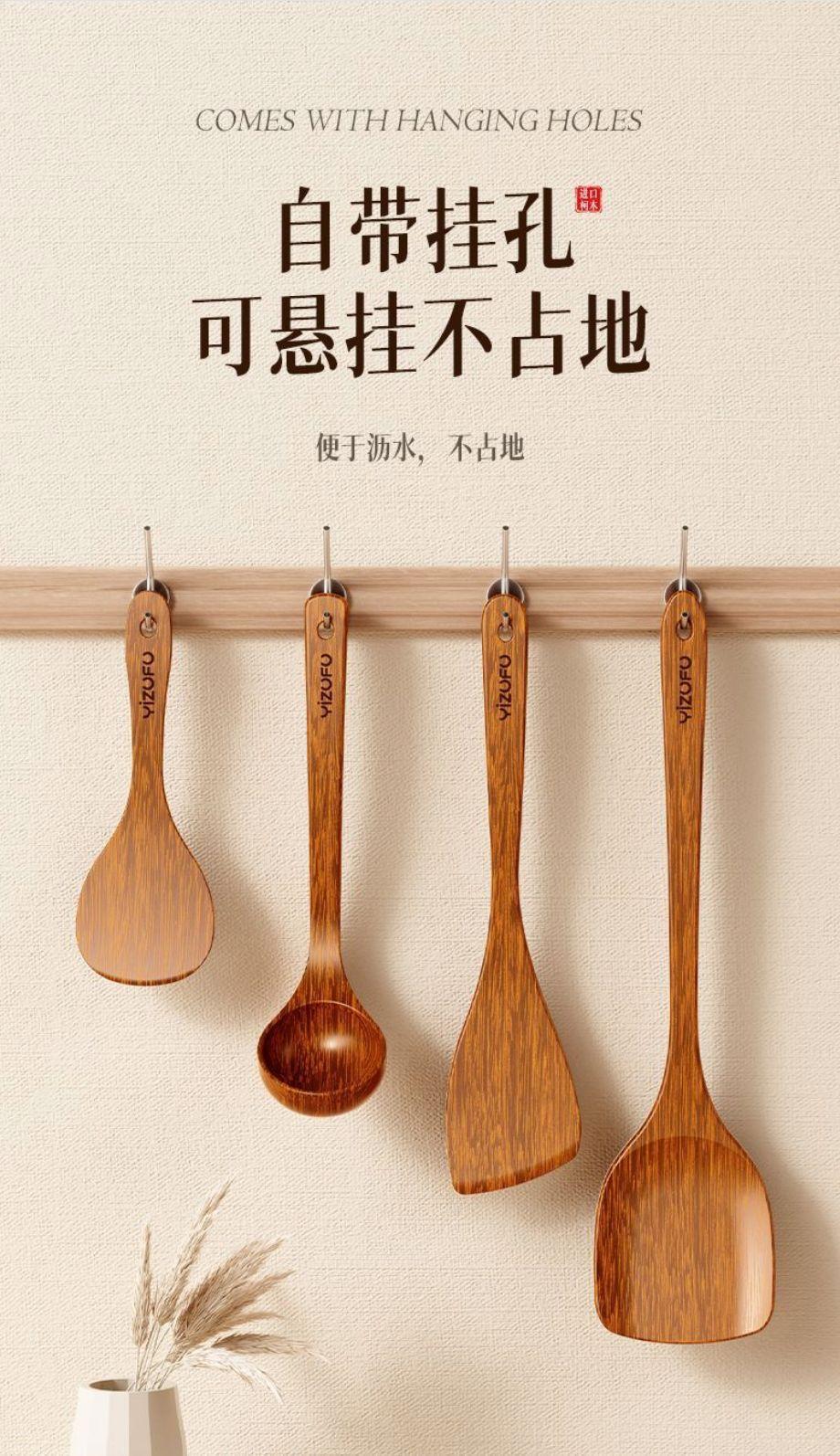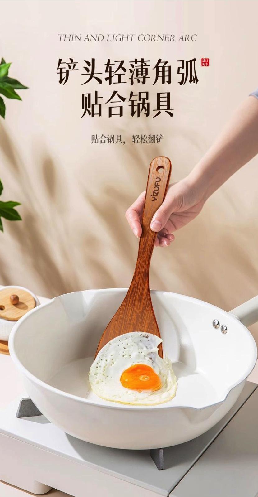 Espátula de madera entera antiadherente espátula de madera espátula de ébano espátula sin humo espátula de madera de mango largo utensilios de cocina cuchara sopera gruesa cuchara para arroz