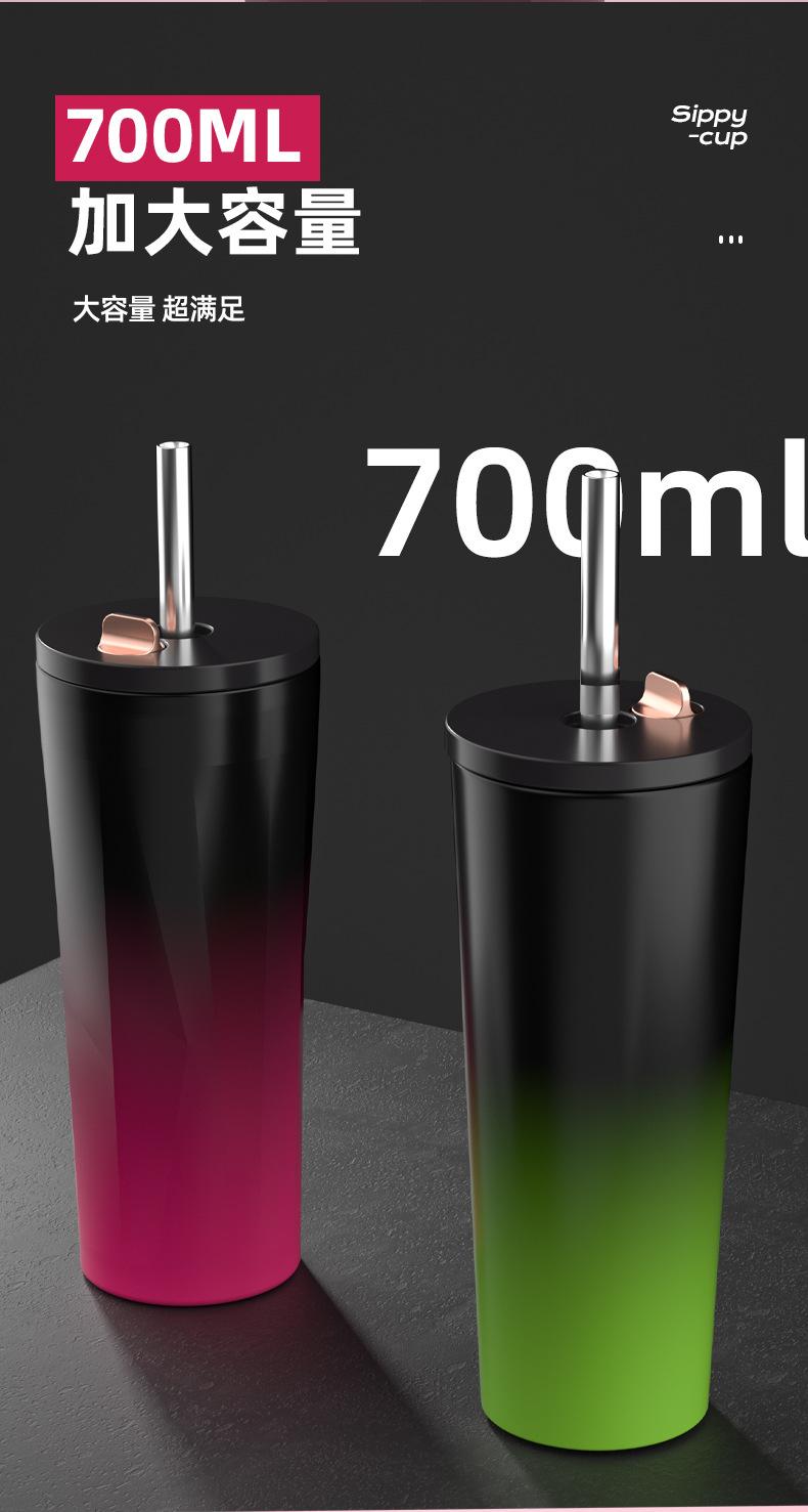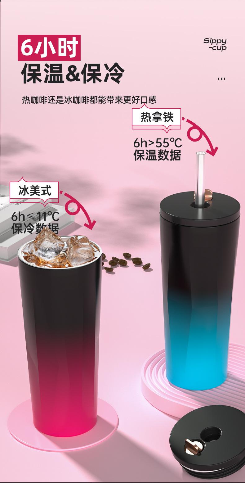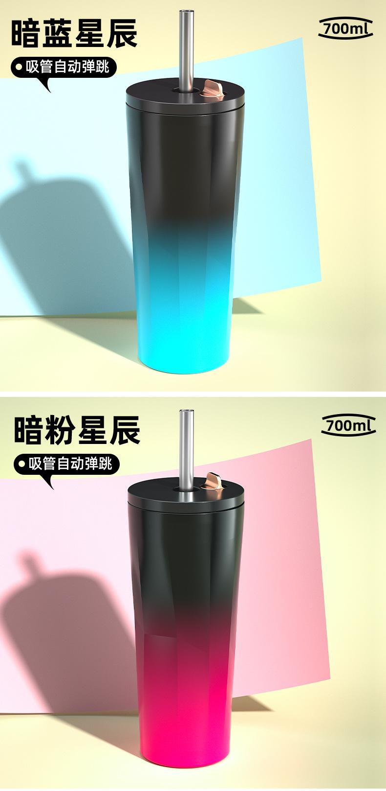 Vaso de Acero Inoxidable con Aislamiento al Vacío Transfronterizo 2025 Vaso con Pajita de Color Gradiente para Exterior Portátil Vaso para Agua para Coche Portátil