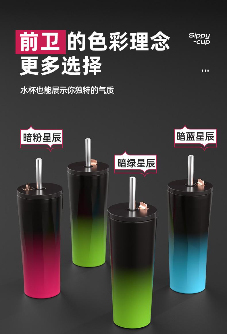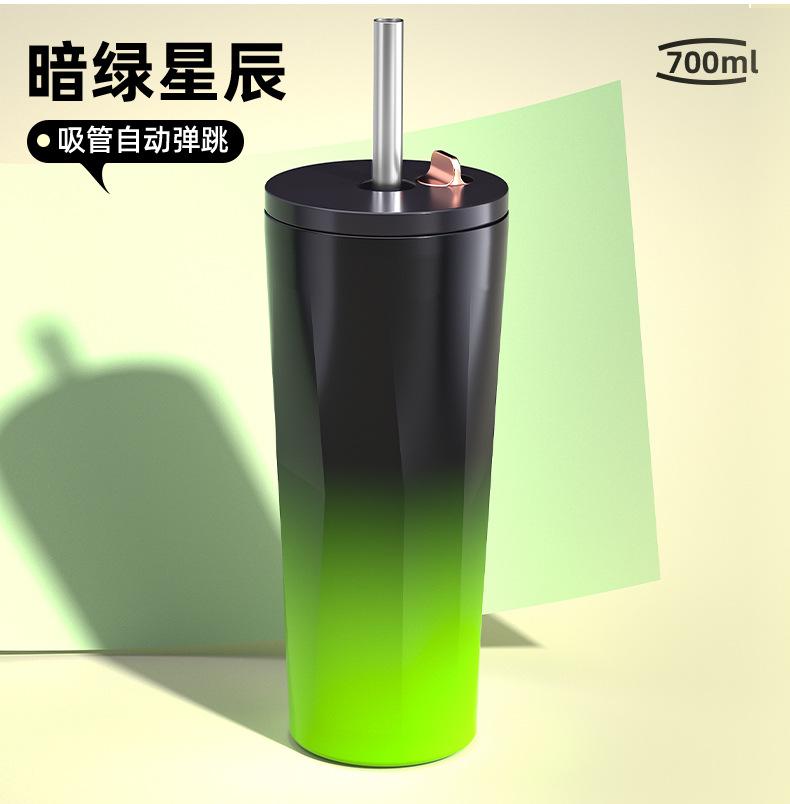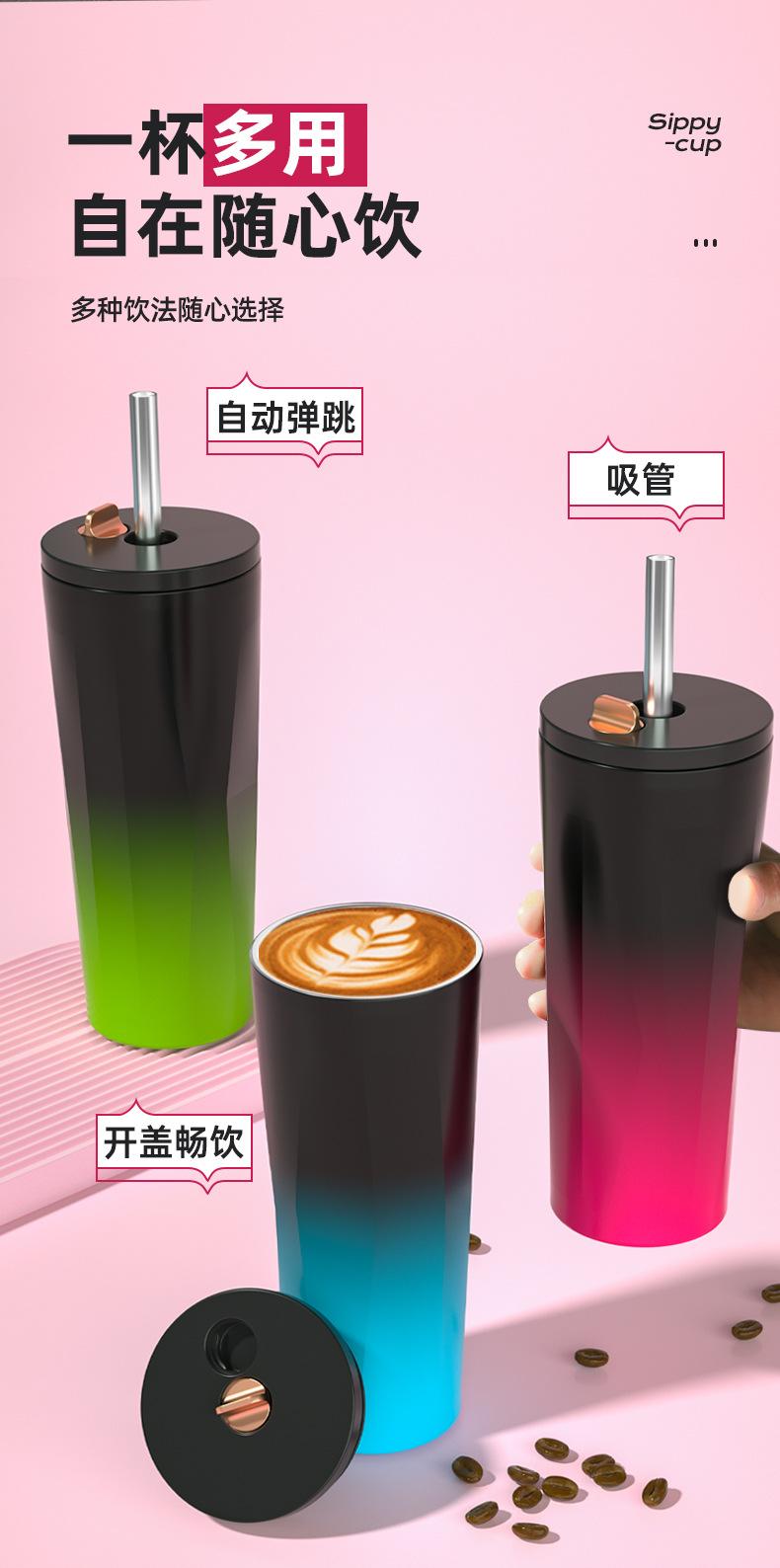 Vaso de Acero Inoxidable con Aislamiento al Vacío Transfronterizo 2025 Vaso con Pajita de Color Gradiente para Exterior Portátil Vaso para Agua para Coche Portátil