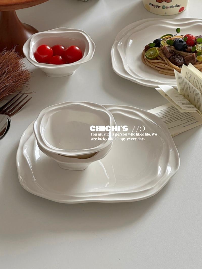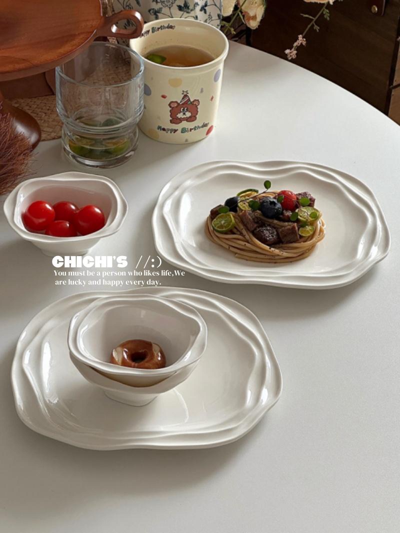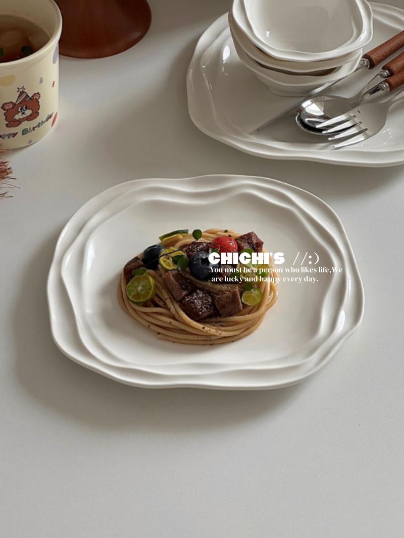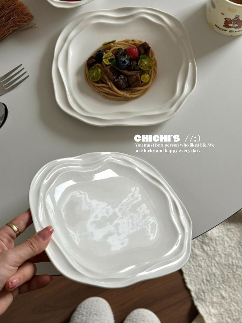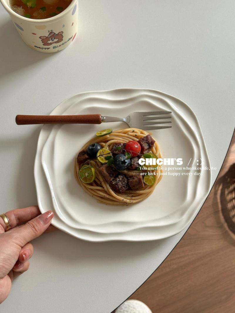 Plato de Encaje Francés Estilo Ins Vajilla de Cerámica Plato para Desayuno en Casa Plato para Snacks de Alto Valor Plato para Pasta