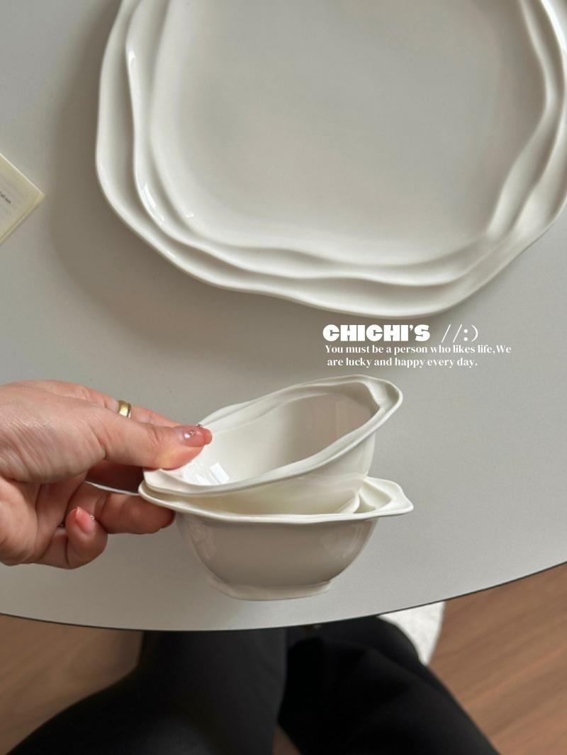 1 wavy dipping bowl, 1 wavy shallow dish, 1 wavy dipping bowl + 1 shallow plate