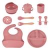 Deep pink【bib+bear plate+bear bowl+316 fork and spoon+wooden handle fork and spoon】
