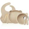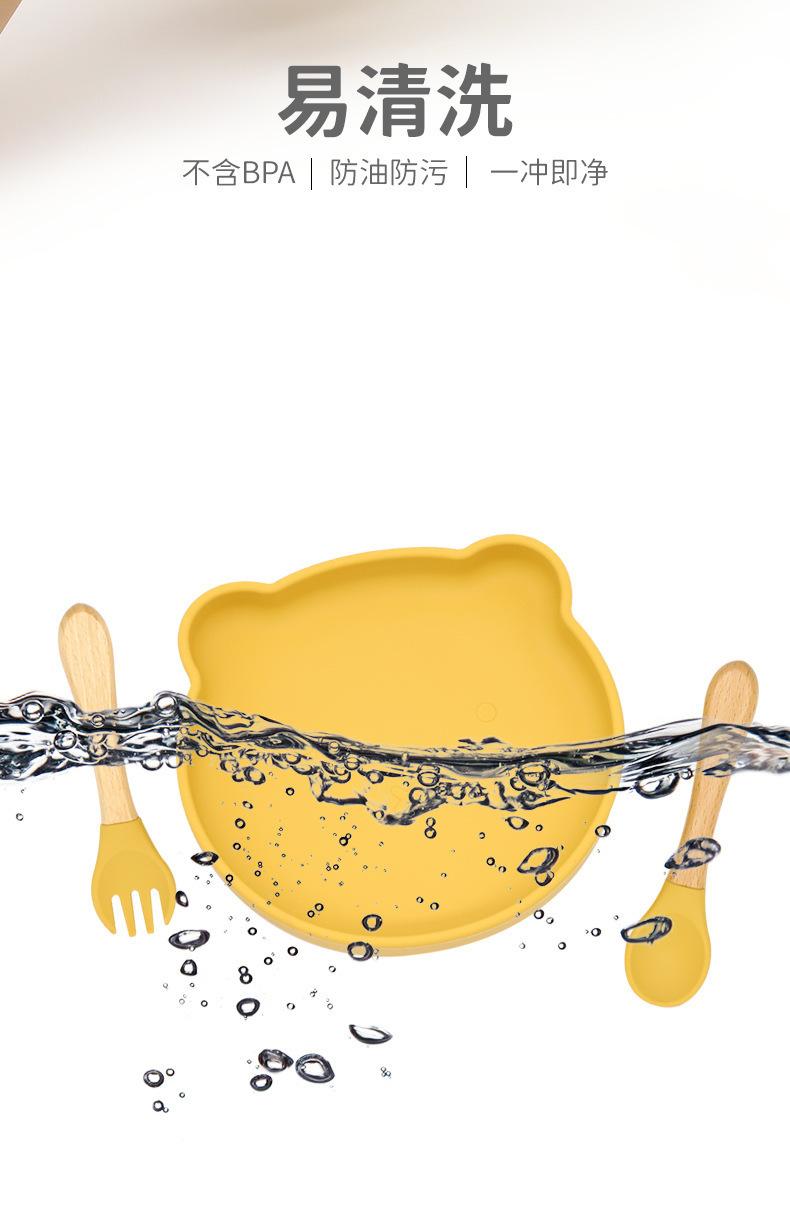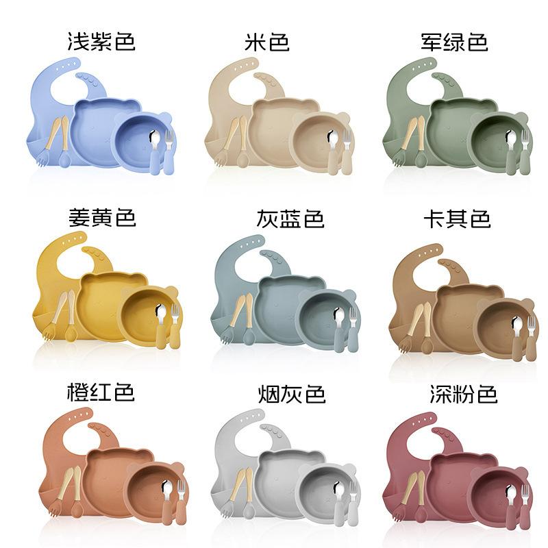 Light purple【Bib+Bear plate+Bear bowl+316 fork and spoon+Wooden handle fork and spoon】, Beige【Bib+Bear Plate+B...
