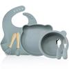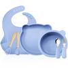 Dusty blue【Bib+Bear plate+Bear bowl+316 fork and spoon+Wooden handle fork and spoon】