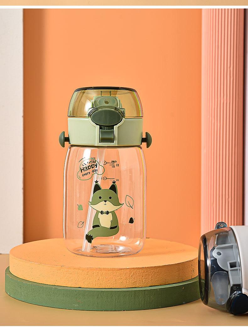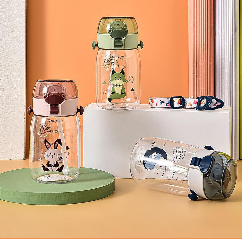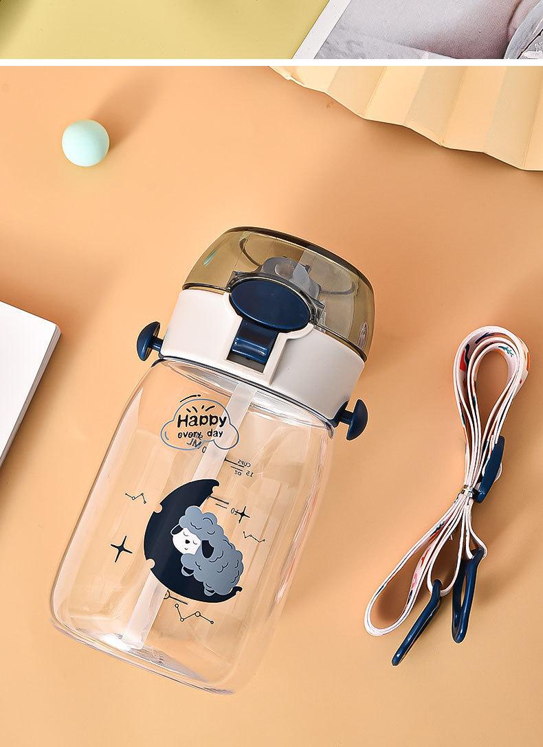 Vaso de agua para niños lindo caricatura nuevo vaso de plástico al por mayor vaso de agua simple con correa vaso con pajita