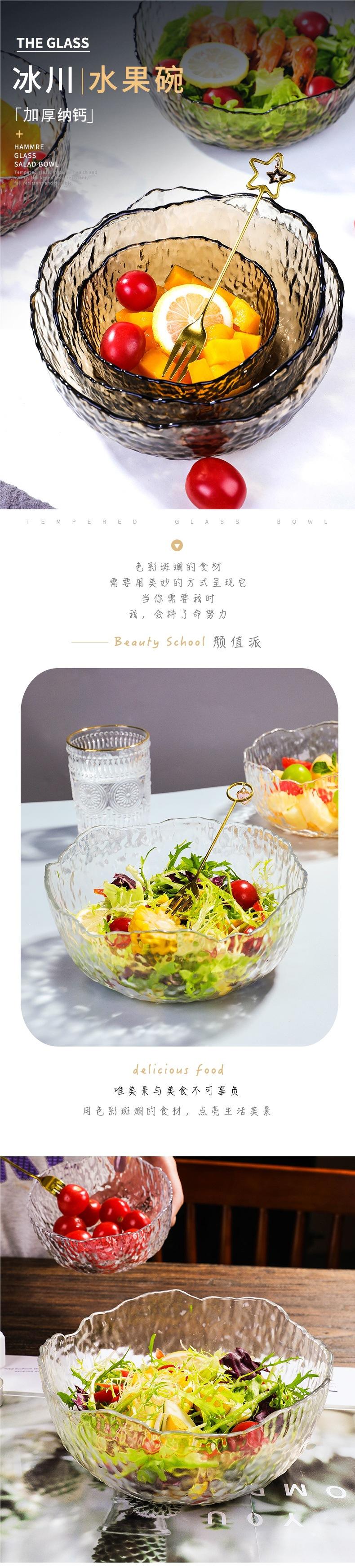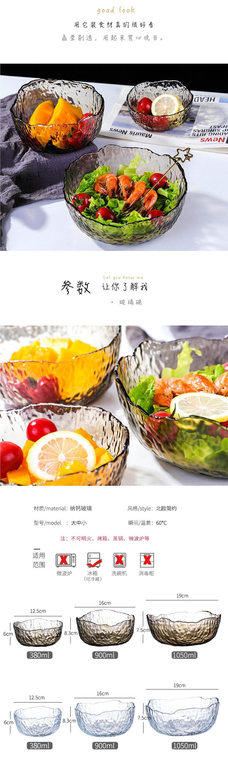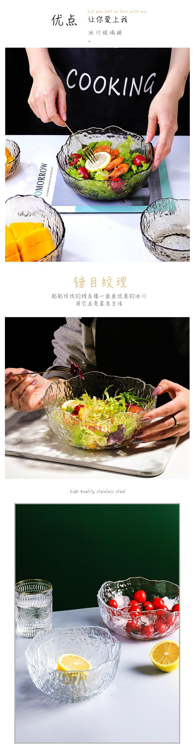 Tazón de vidrio resistente a altas temperaturas tazón de arroz tazón de ensalada para el hogar transparente grande frutero alto valor cara comer fideos tazón de sopa vajilla