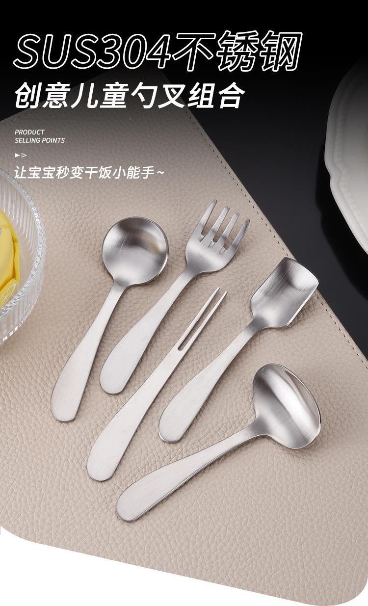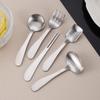 Cuchara y tenedor para niños de acero inoxidable brillante 304, mango largo, para uso doméstico, para alimentación de bebés, cuchara redonda, cuchara cuadrada, cuchara plana, juego de tenedor para fruta