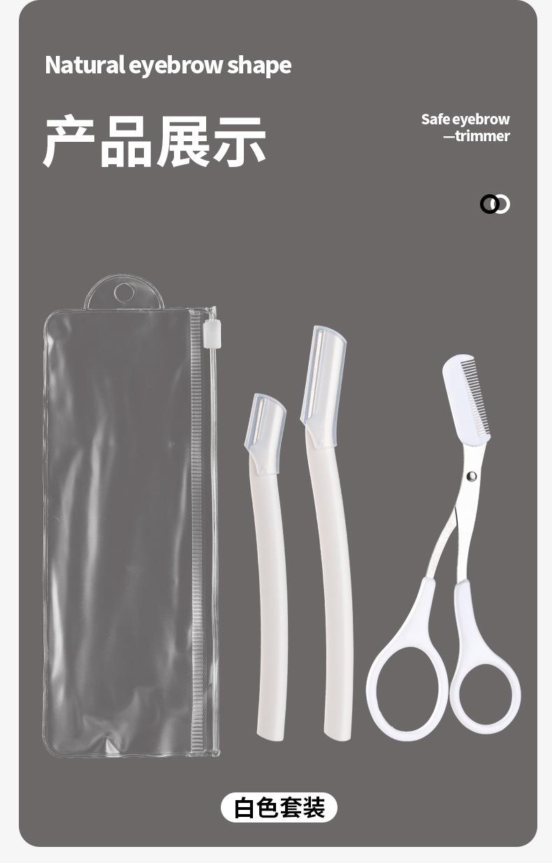 Crescent set eyebrow razor + eyebrow scissors, Eyebrow trimmer white set, Eyebrow trimmer transparent color se...