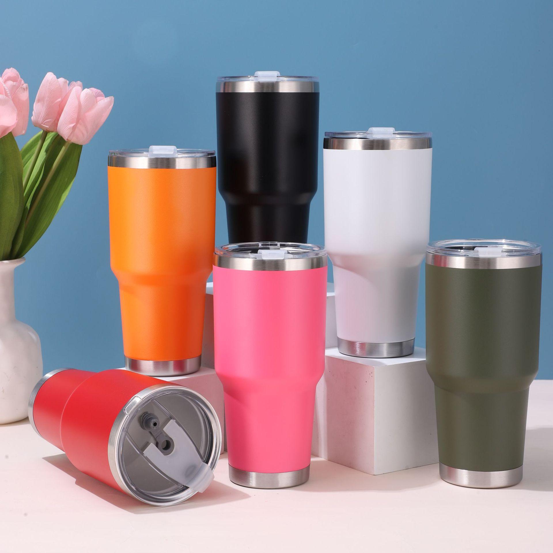 Vaso para coche de 30 oz transfronterizo, termo de color sólido de acero inoxidable 304, gran capacidad, portátil para exteriores, vaso para hielo para coche