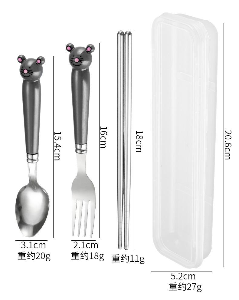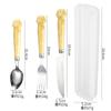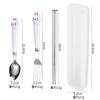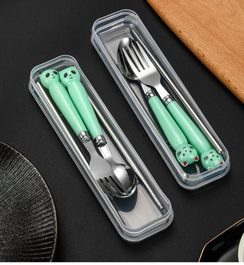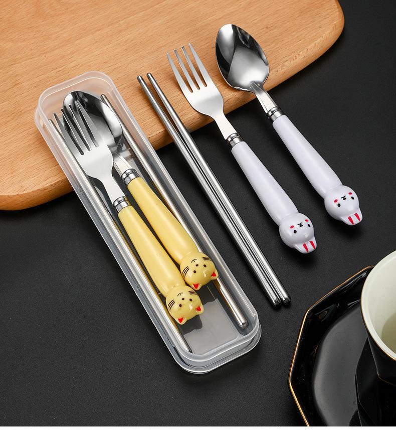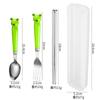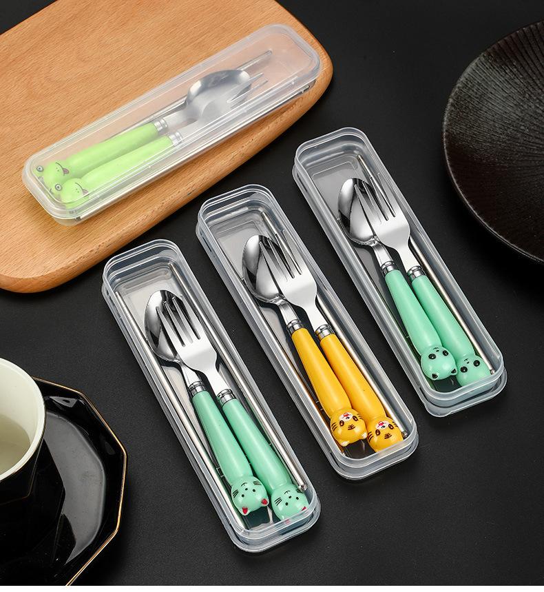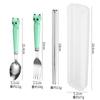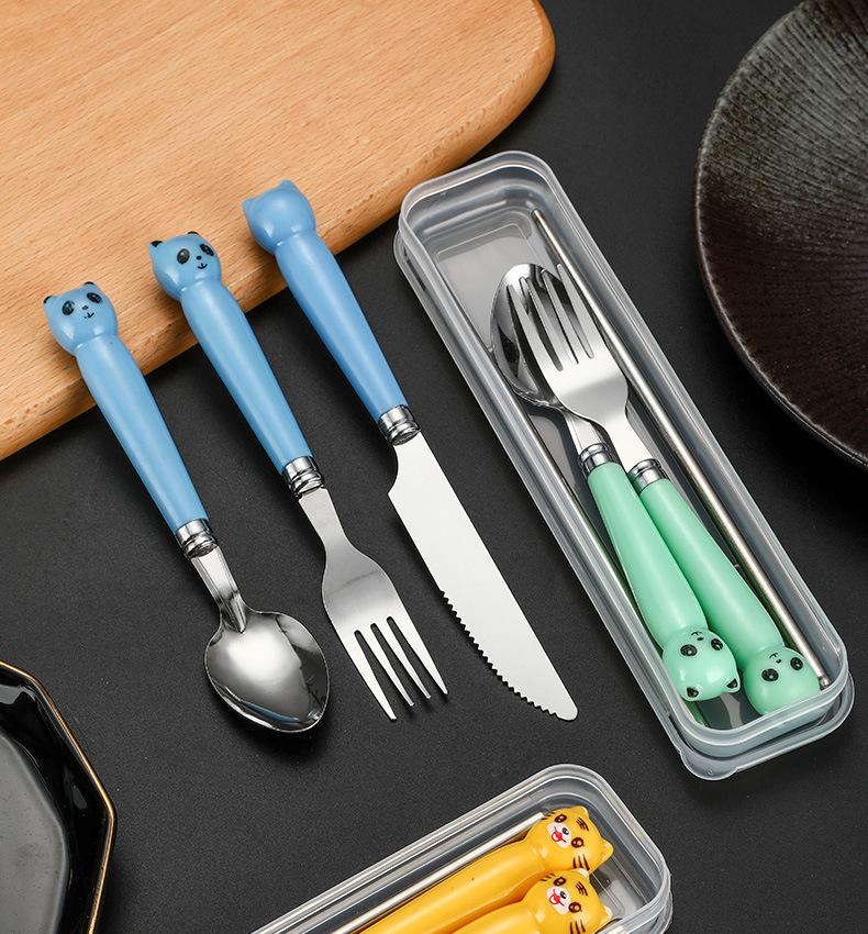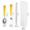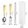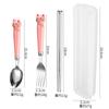 Set de Cubiertos Portátiles de Acero Inoxidable de Dibujos Animados para Estudiantes y Niños, Juego de Cuatro Piezas, Cuchara para Arroz con Figura Linda, Tenedor para Postre, Palillos, Cuchillo