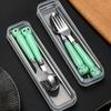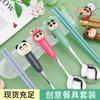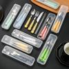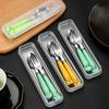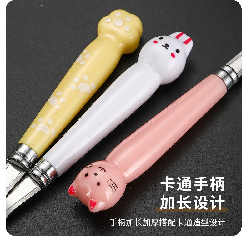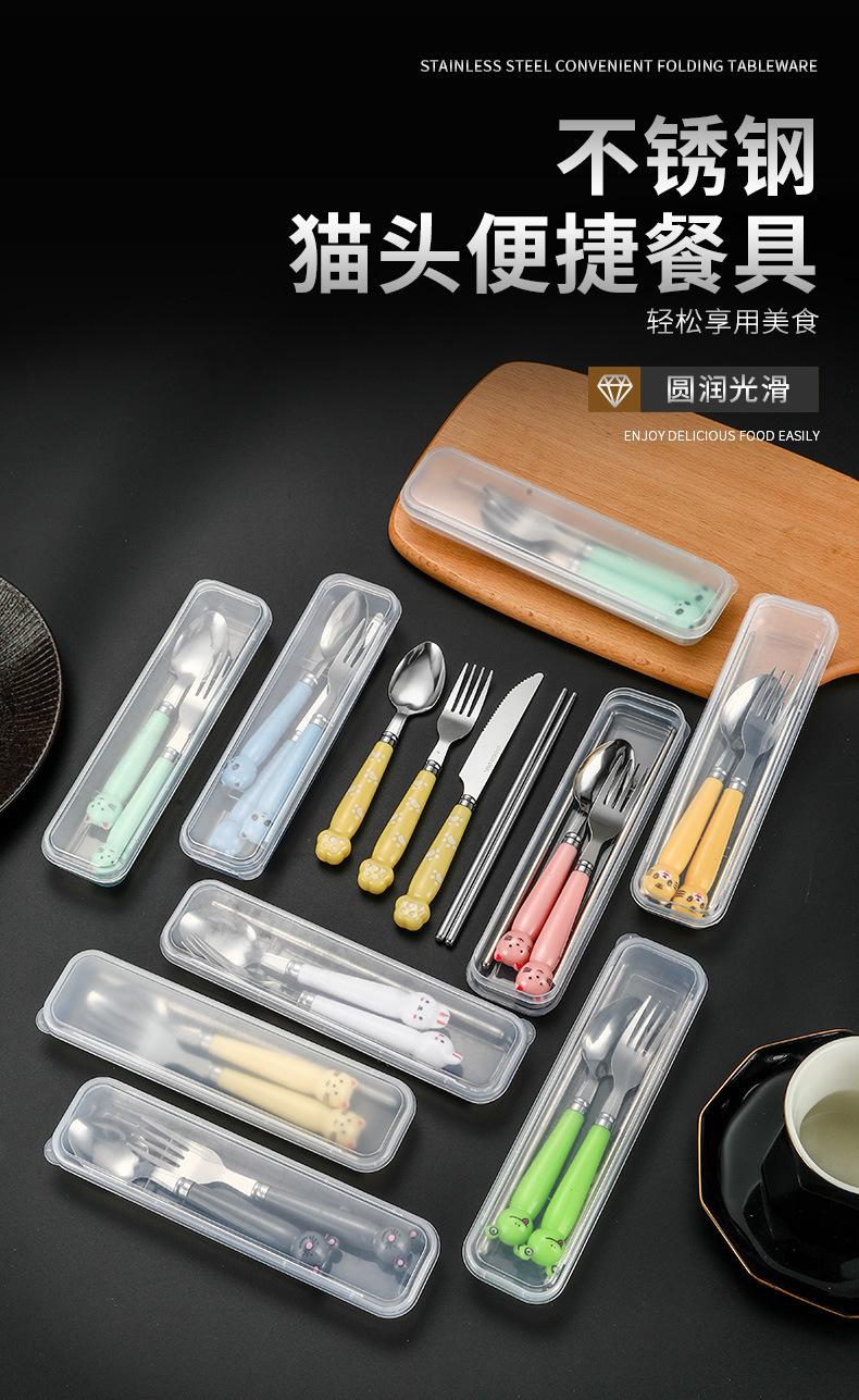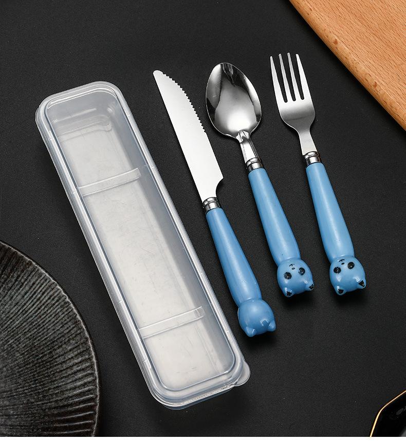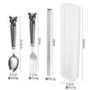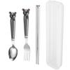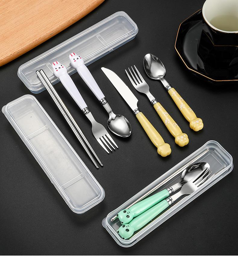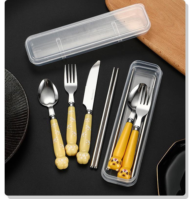Set de Cubiertos Portátiles de Acero Inoxidable de Dibujos Animados para Estudiantes y Niños, Juego de Cuatro Piezas, Cuchara para Arroz con Figura Linda, Tenedor para Postre, Palillos, Cuchillo