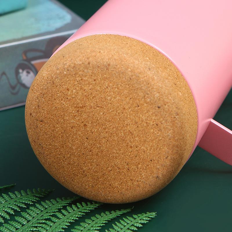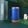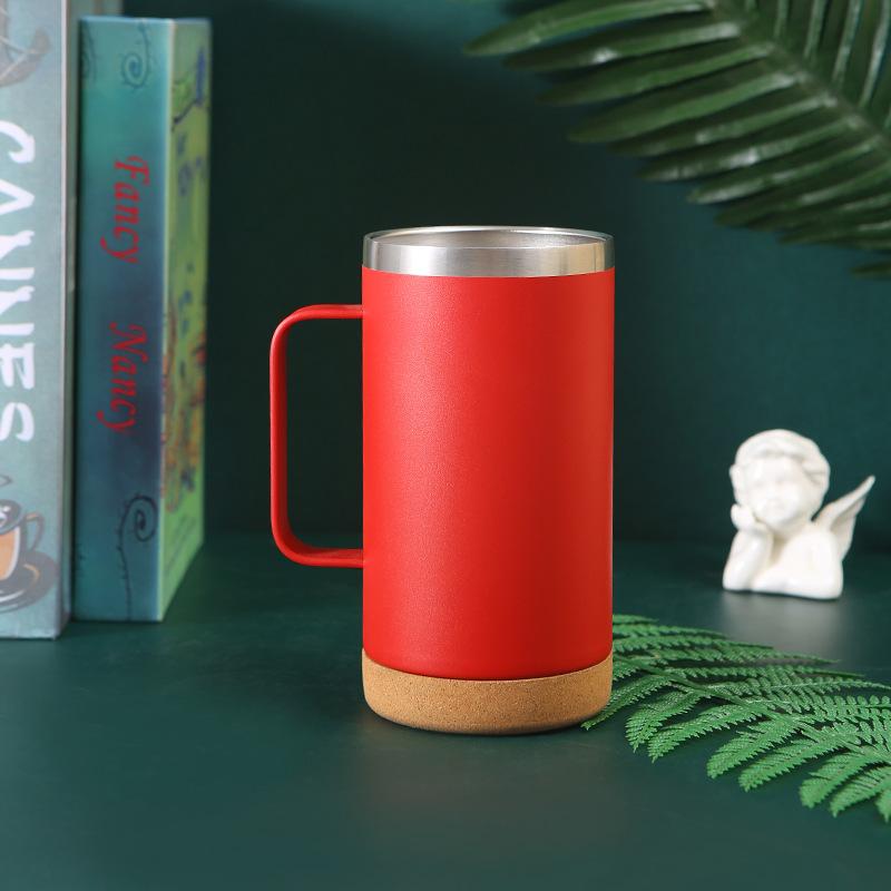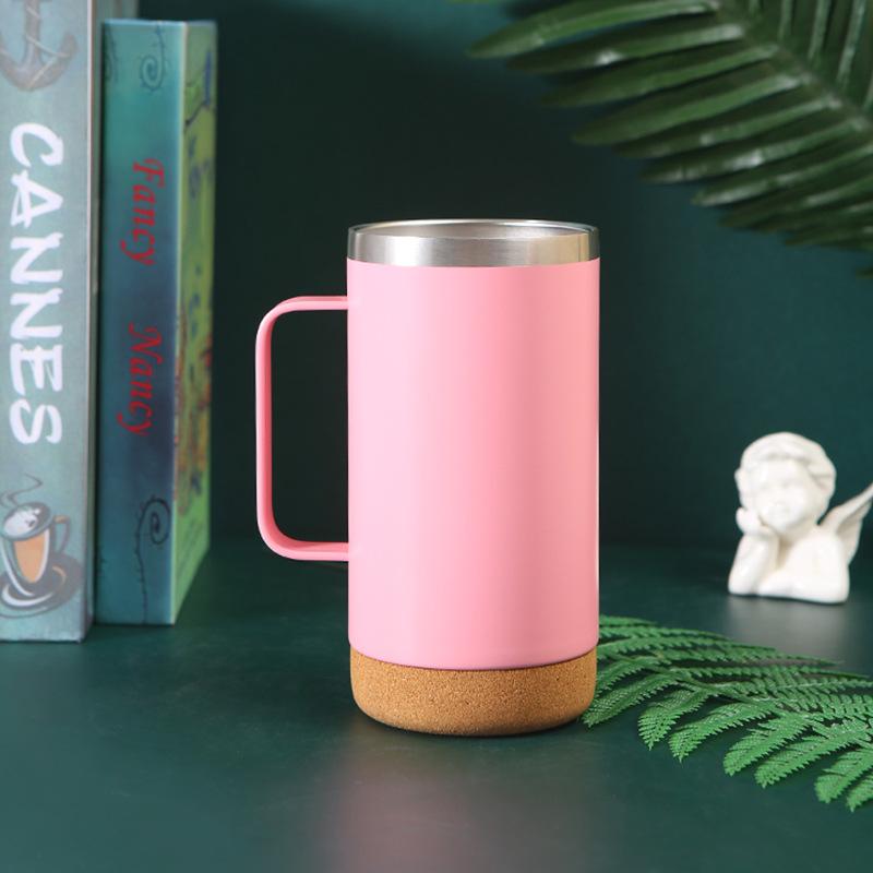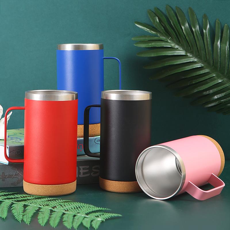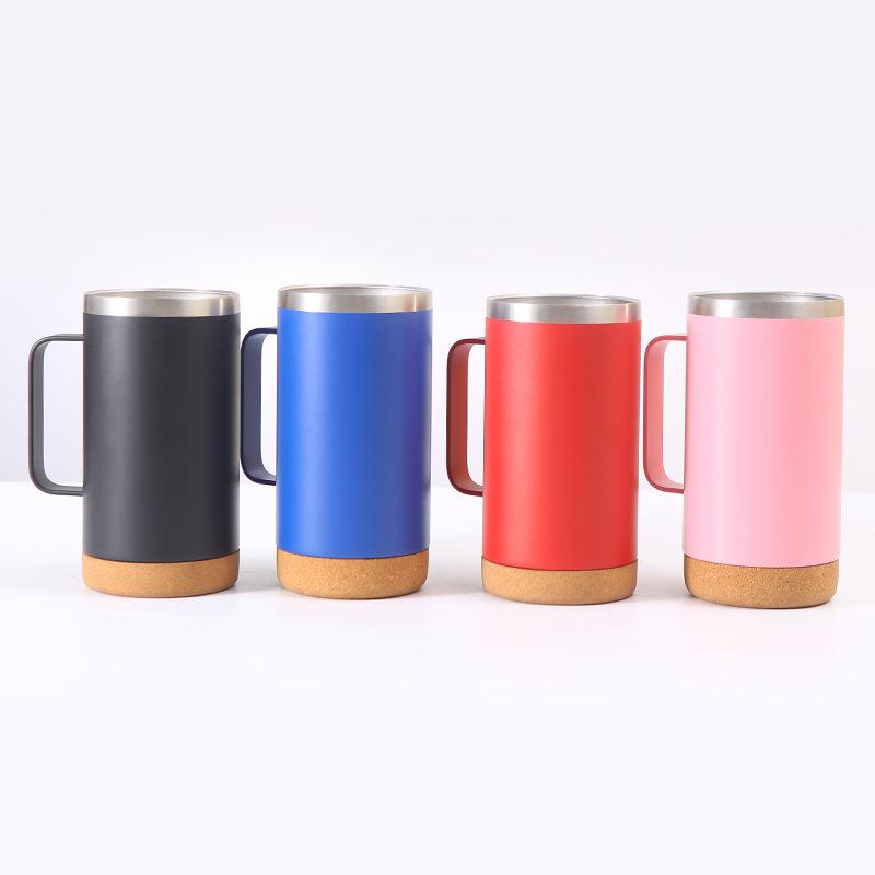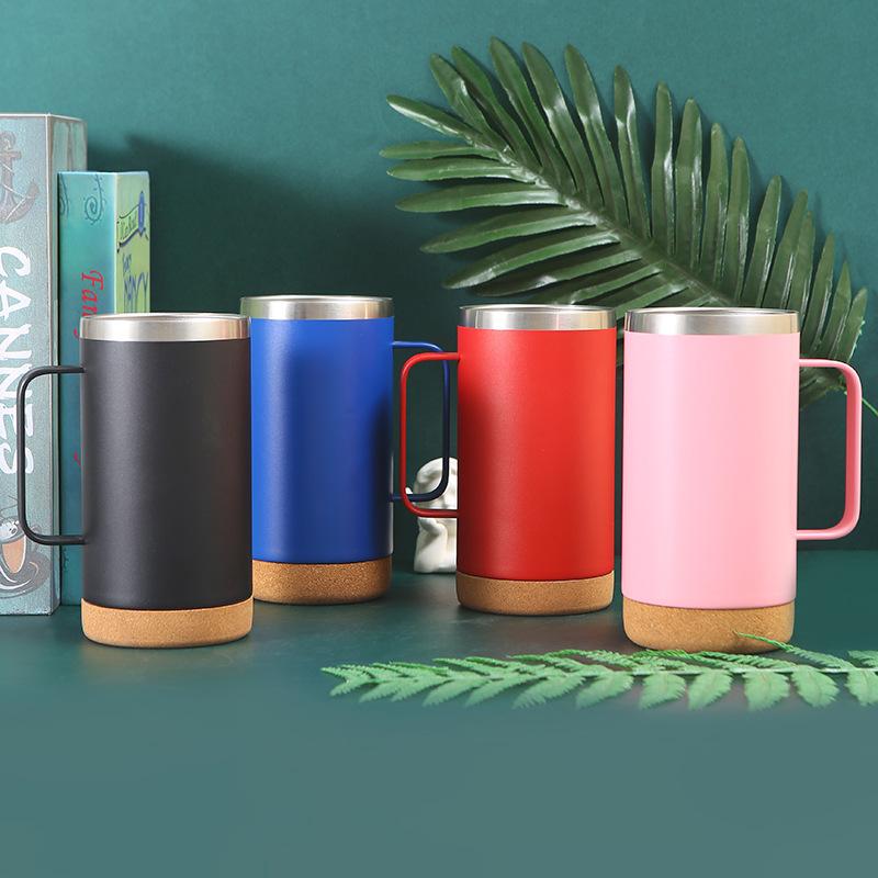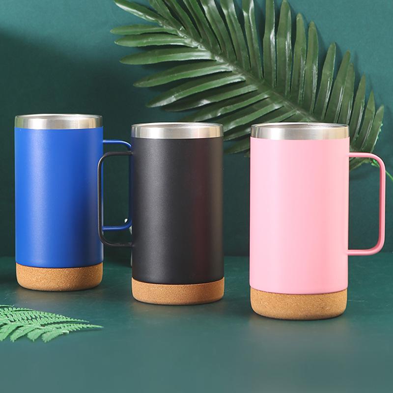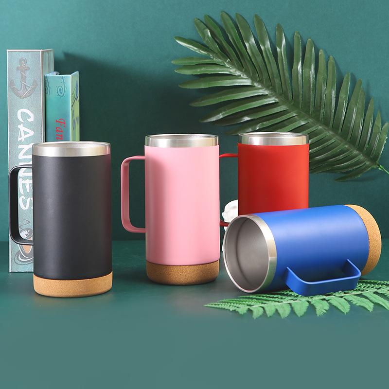 Vaso termo de acero inoxidable 304 transfronterizo Fondo de corcho tapa transparente taza de cerveza con asa taza portátil al por mayor