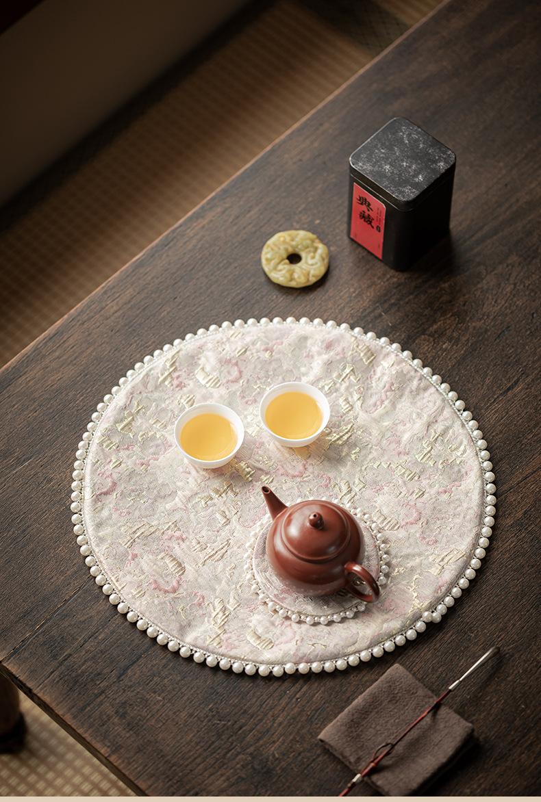 Mantel Individual de Perlas Jinlan Estilo Chino Nuevo Doble Cara Resistente al Calor Camino de Mesa Tapete para Olla Tapete para Mesa de Té Accesorios para Ceremonia del Té