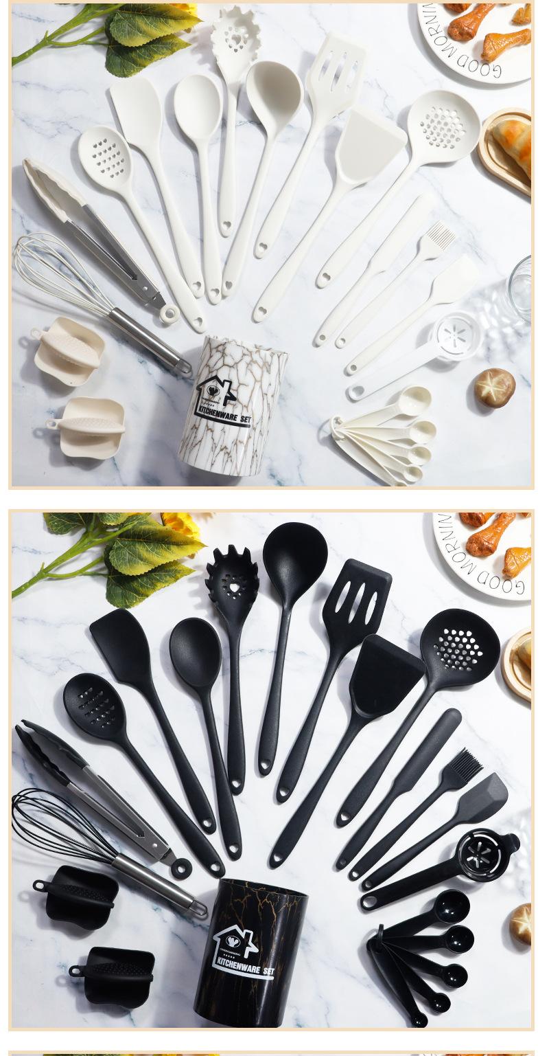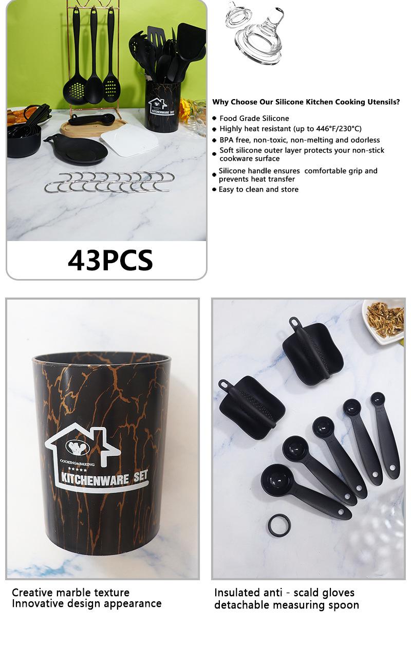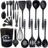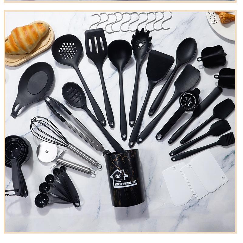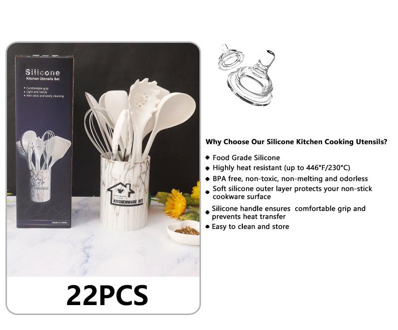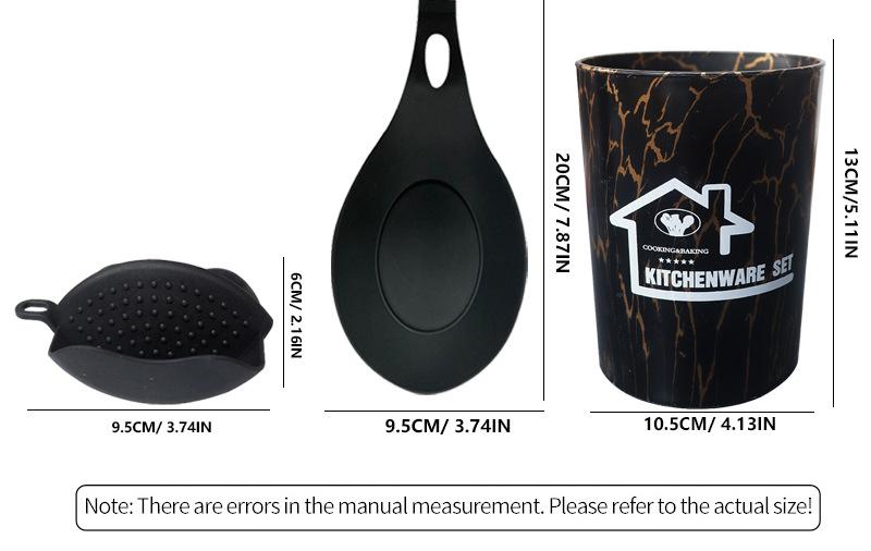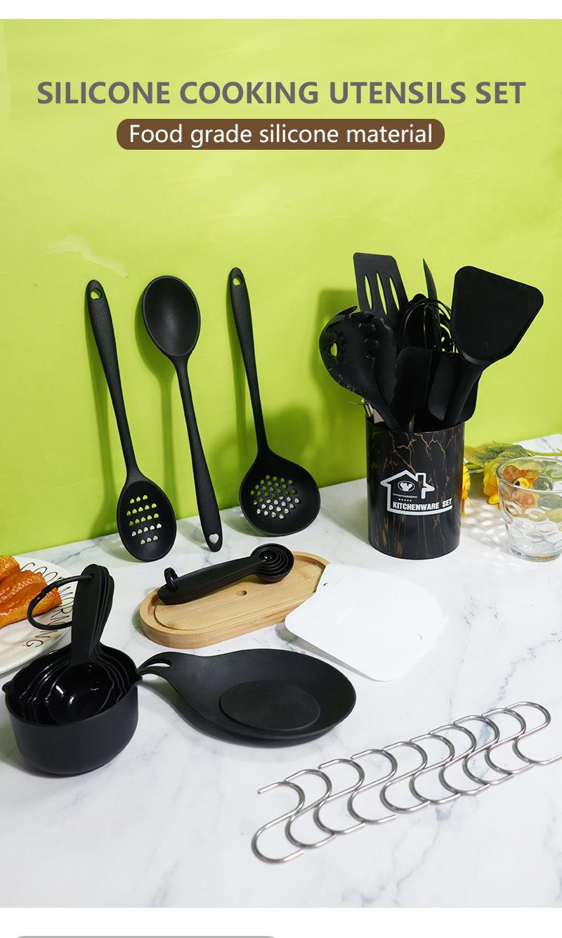 Silicone kitchenware 22-piece set (including marble storage bucket) - black