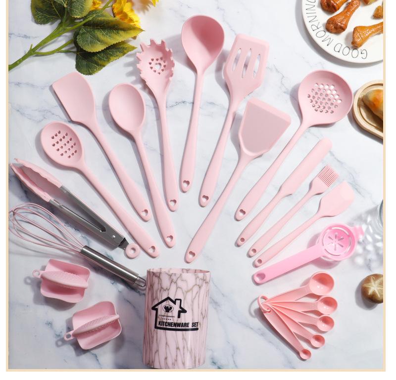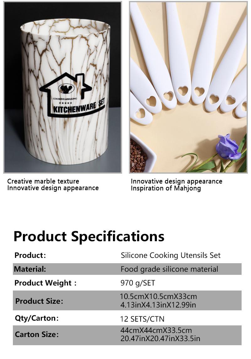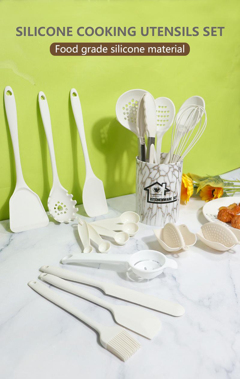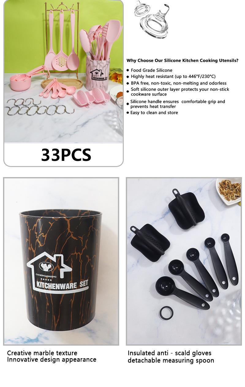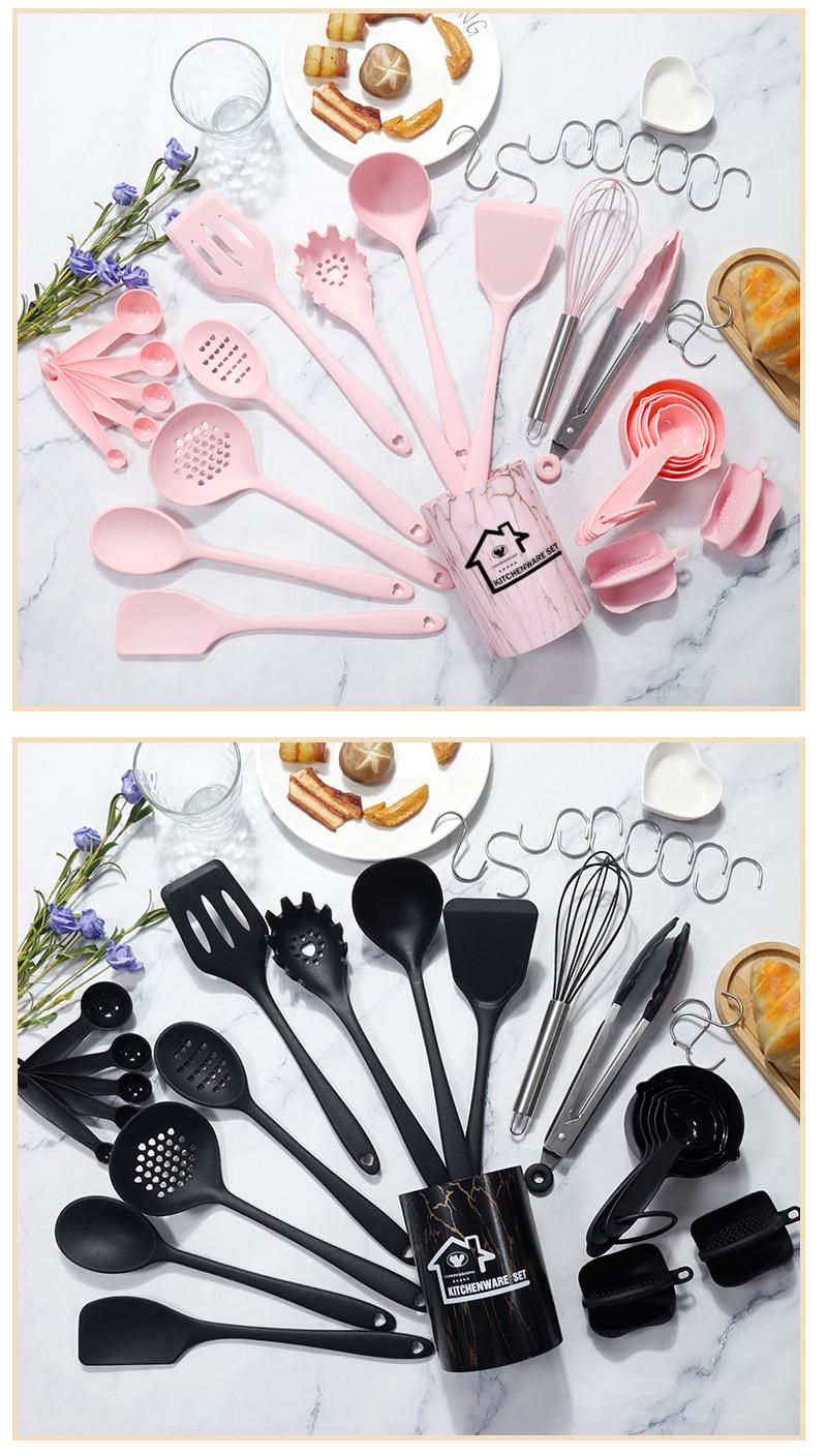 Silicone kitchenware 22-piece set (including marble storage bucket) - black