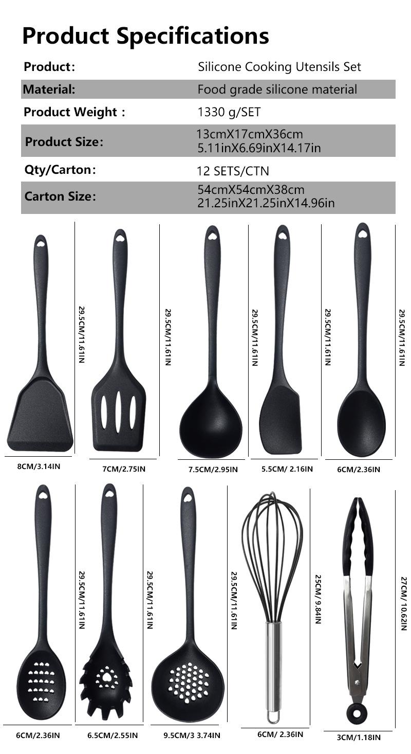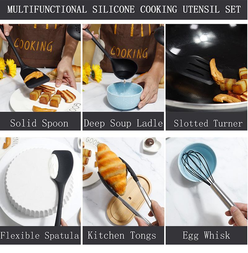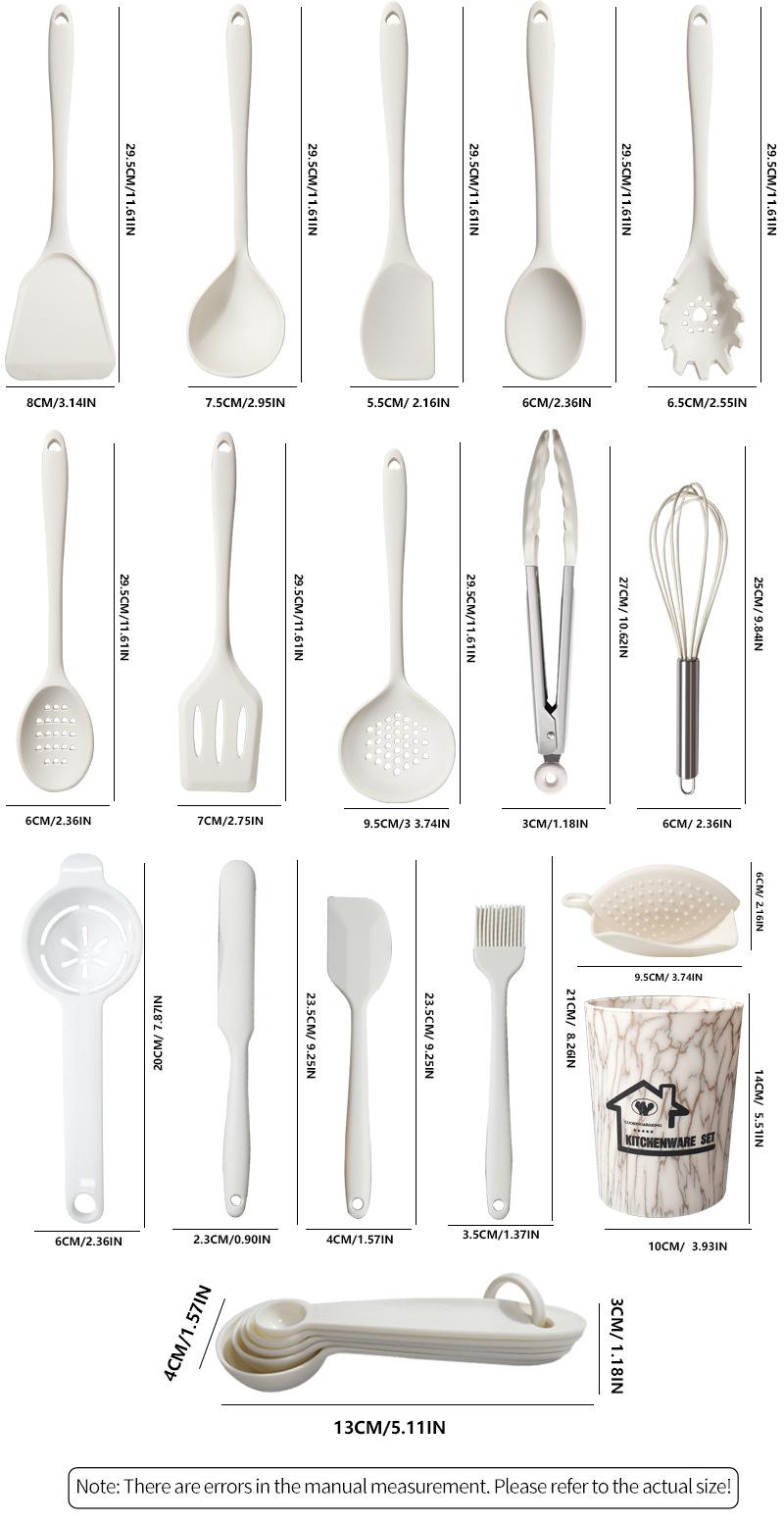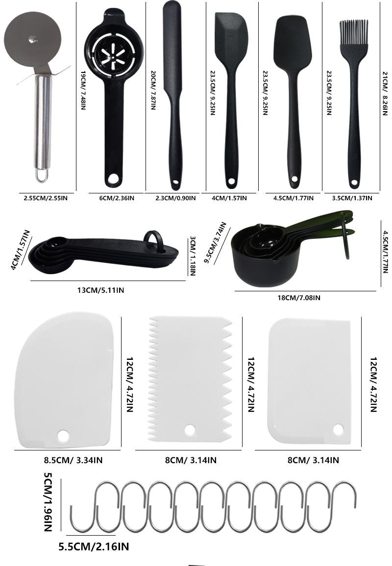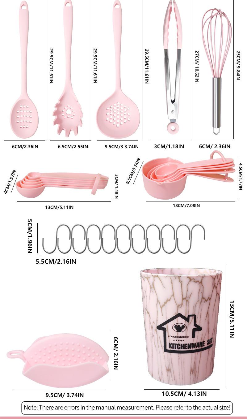 Silicone kitchenware 22-piece set (including marble storage bucket) - black
