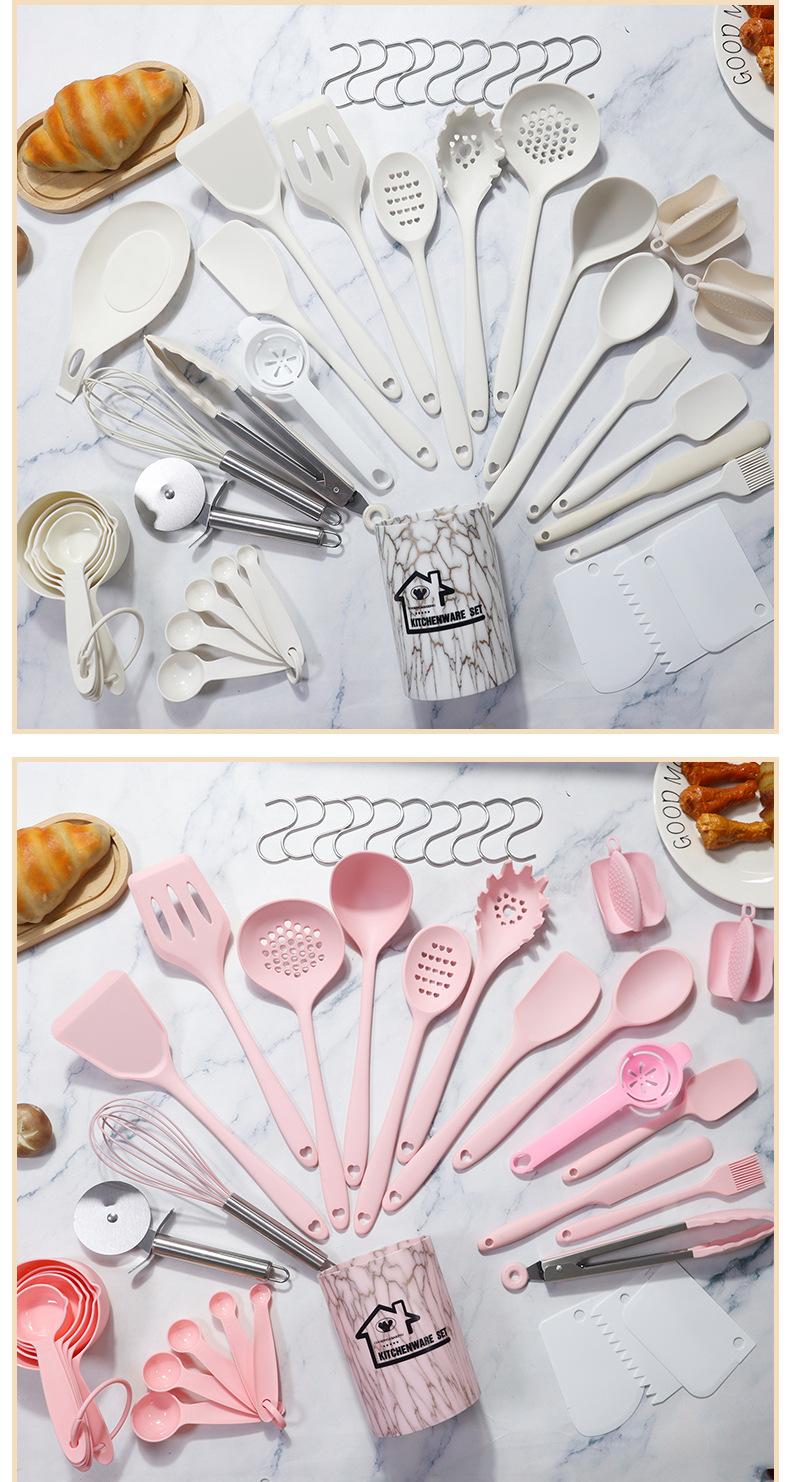 Juego de 43 piezas de espátula y cuchara de silicona transfronteriza, espátula de silicona antiadherente, juego de utensilios de cocina de silicona doméstica de grado alimenticio