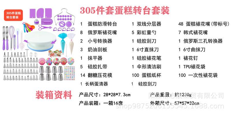 Detalles del set de plato giratorio para pastel de 305 piezas:
