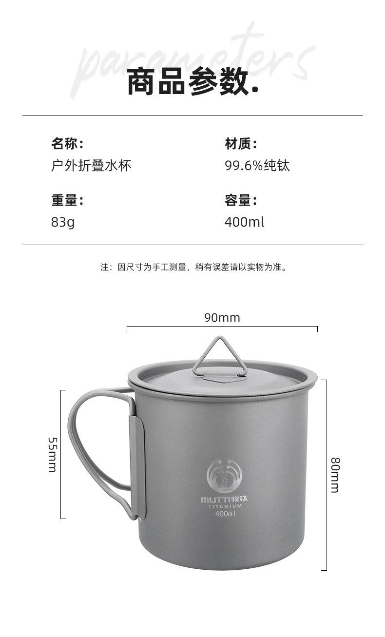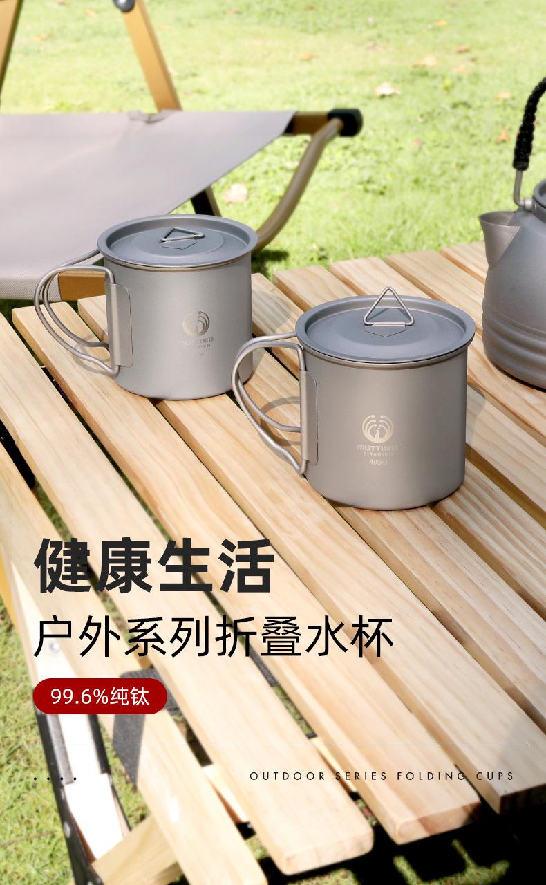 Taza de Titanio Puro con Tapa, Taza Plegable de Aleación de Titanio Total de Grado Alimenticio, Taza de Café, Vaso Portátil para Agua para Camping, Exterior