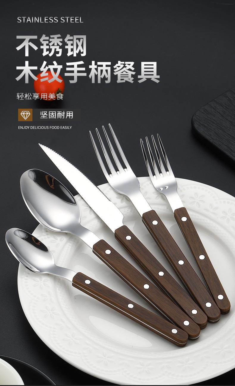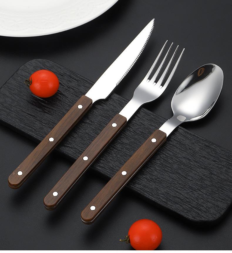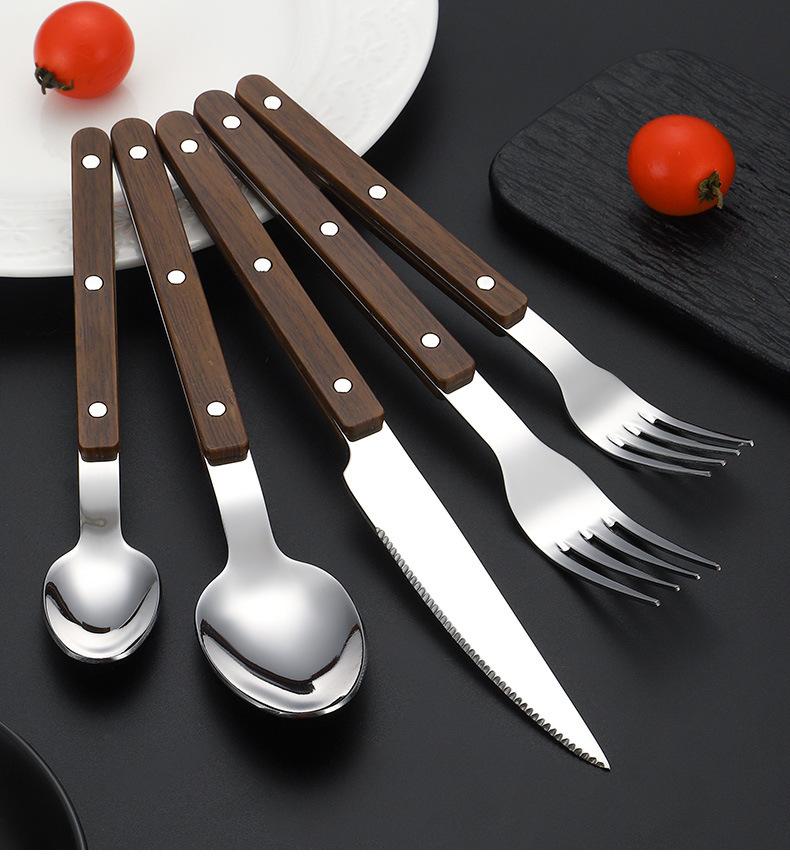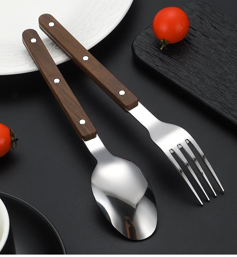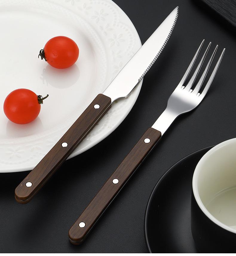 Cubiertos Franceses Occidentales de Acero Inoxidable 430 para Hotel, Cuchillo para Bistec y Tenedor, Cuchara y Tenedor para Postre, Juego con Mangos Remachados