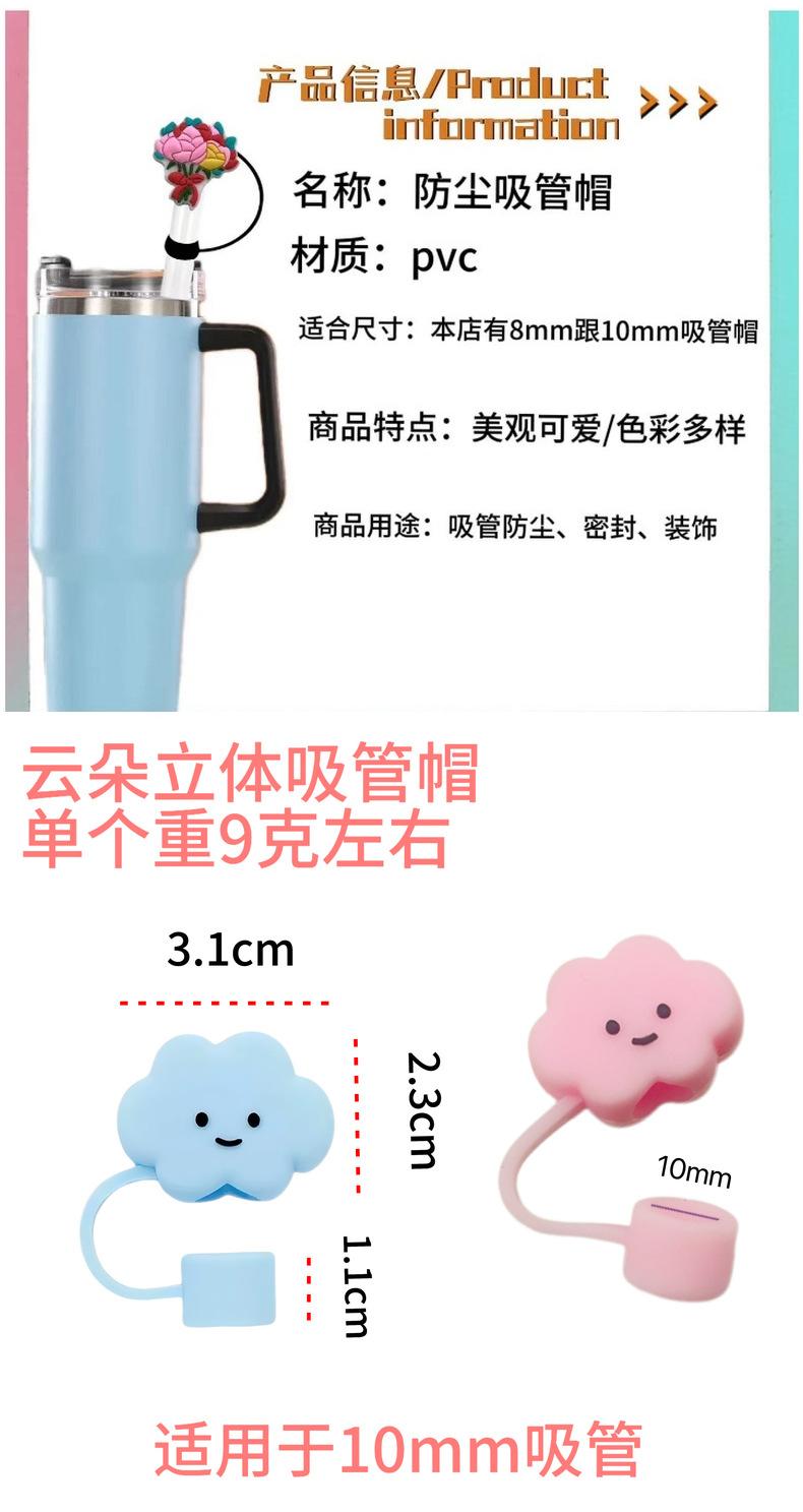 Lindas Tapas de Pajita con Forma de Nube, Grado Alimenticio Transfronterizo, Multicolor, Adecuadas para Pajitas de 8-10 mm