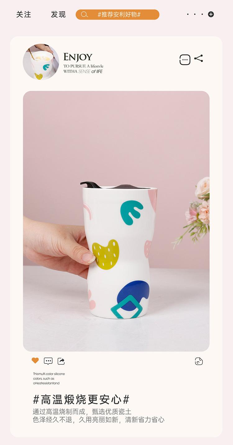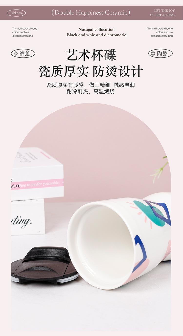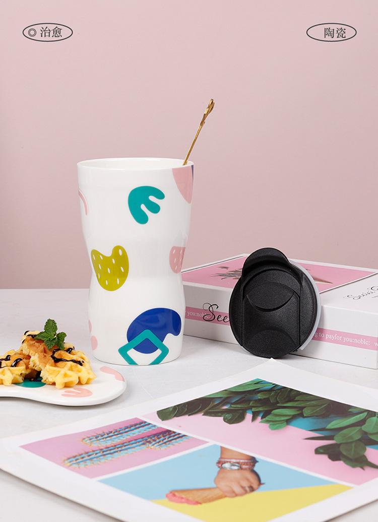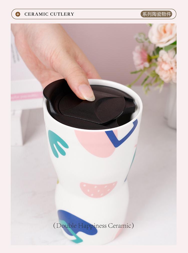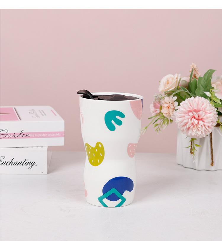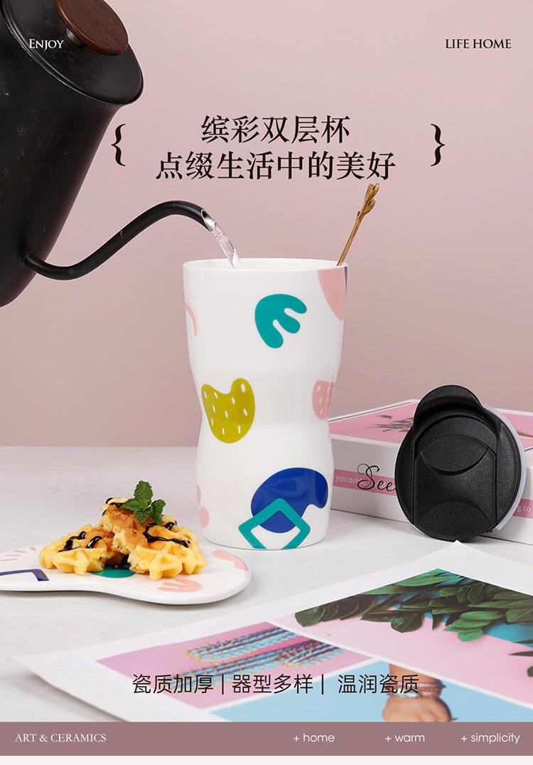Taza de Cerámica Aislada de Doble Capa con Patrón de Dibujos Animados Creativo y Colorido con Tapa Taza para Agua de Oficina Taza de Café para el Hogar Taza