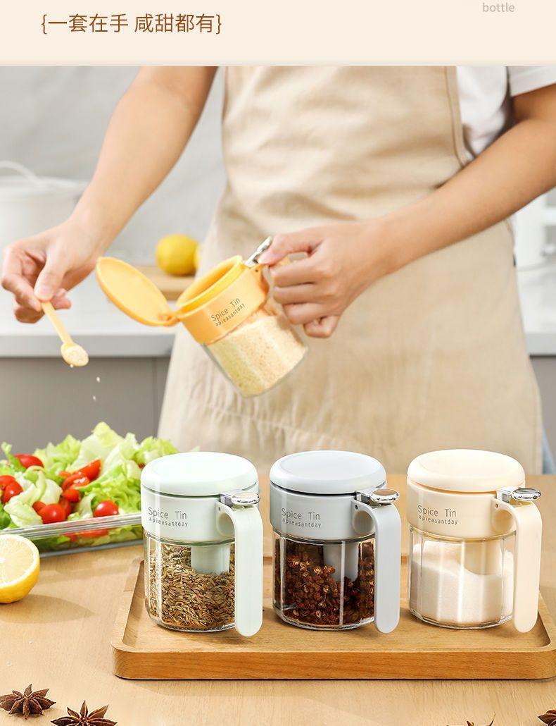 Nueva Caja de Almacenamiento de Condimentos Sellada para el Hogar a Prueba de Humedad Condimento Cocina MSG Sal Tarro Combinación Botella de Condimento Tarro de Vidrio