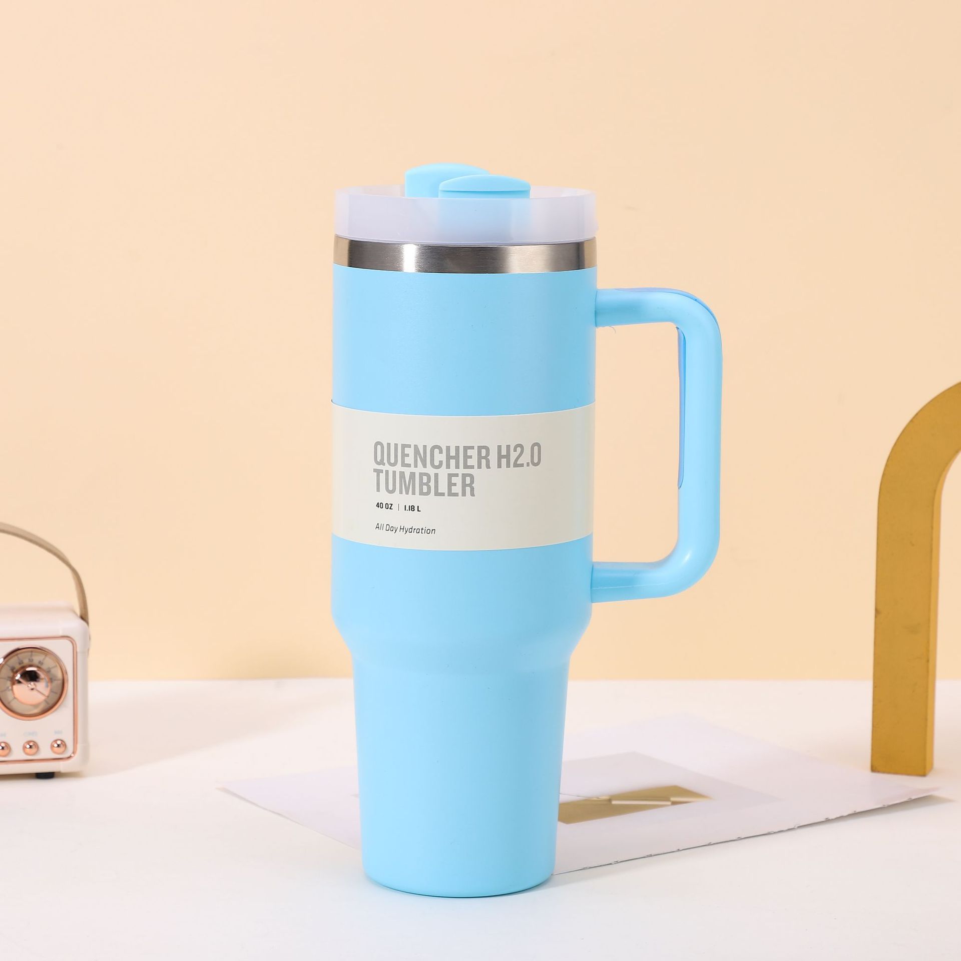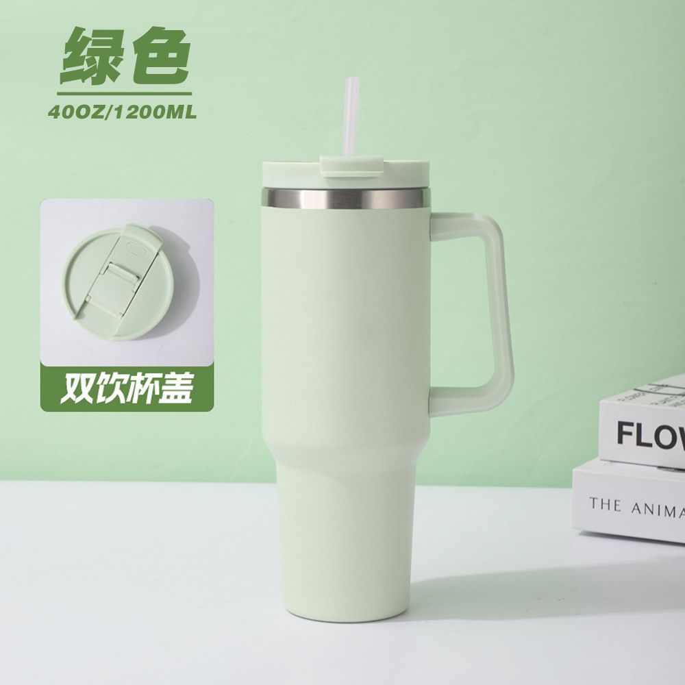 Vaso para Coche Amazon Transfronterizo de 40 oz Vaso Portátil de Gran Capacidad con Pajita Vaso Ice King Vaso Aislado al Vacío de Doble Capa con Asa