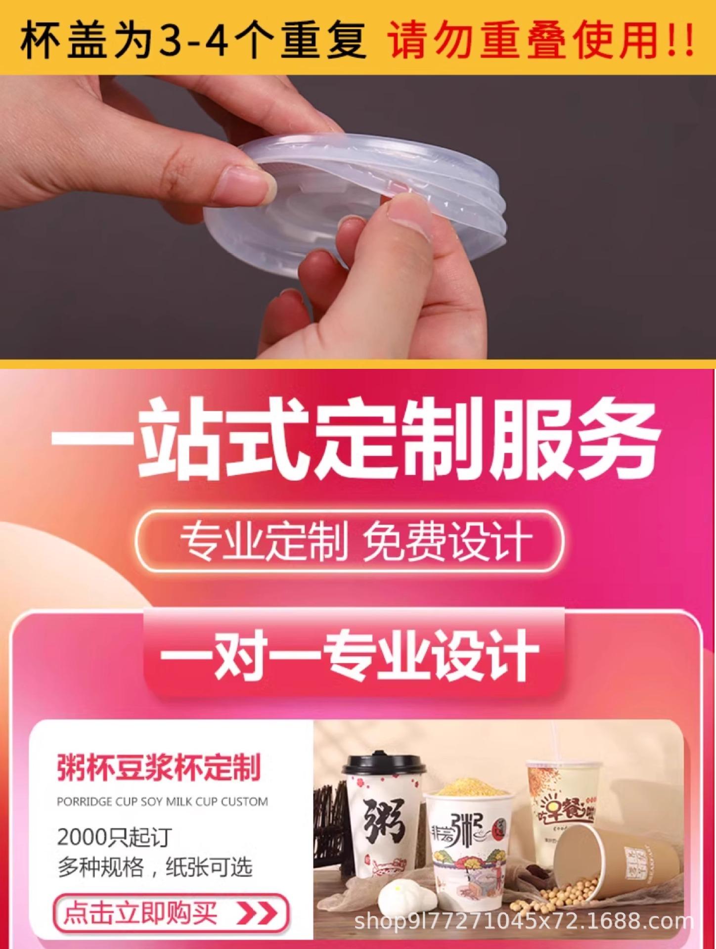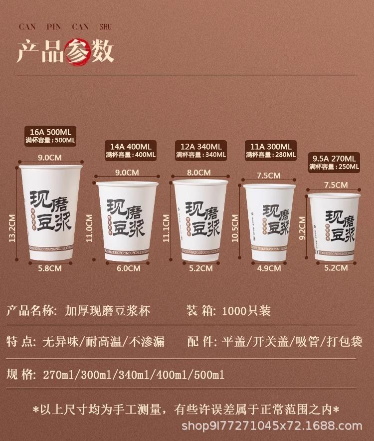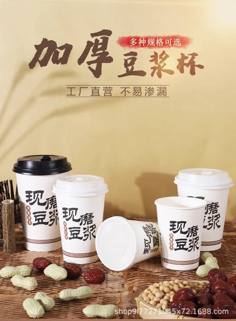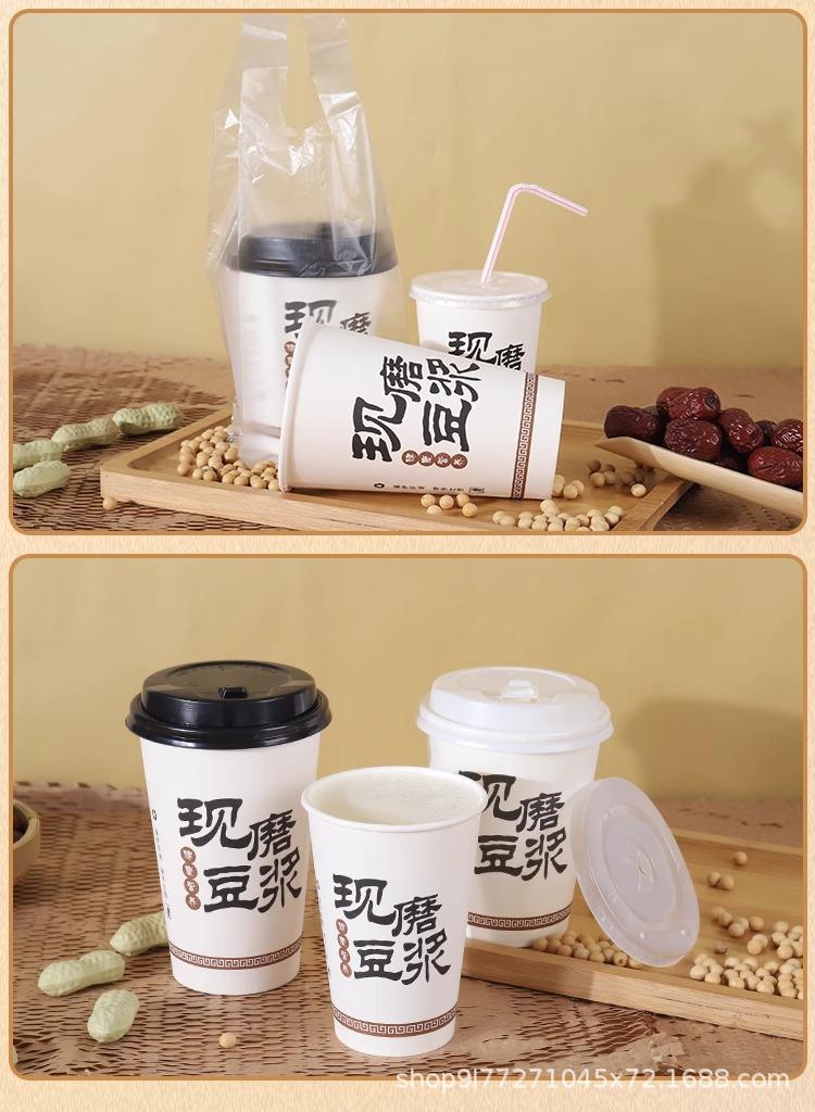 Vaso Desechable para Leche de Soya, Vaso de Papel de Grado Alimenticio Recién Molido con Tapa, Vaso Comercial para Café Empaquetado para Llevar, Vaso para Bebidas Calientes Té con Leche