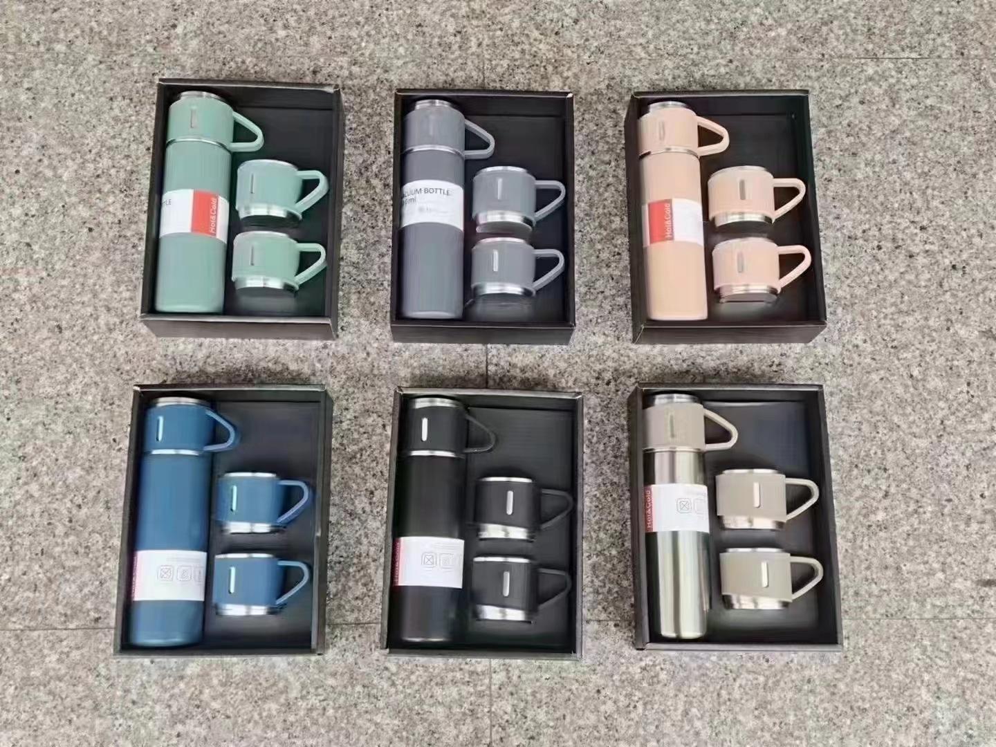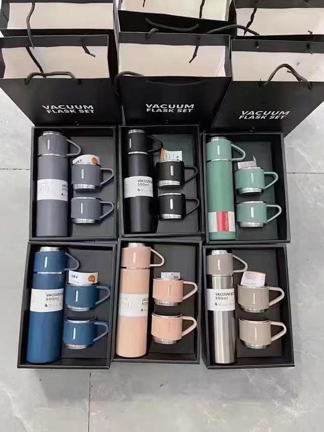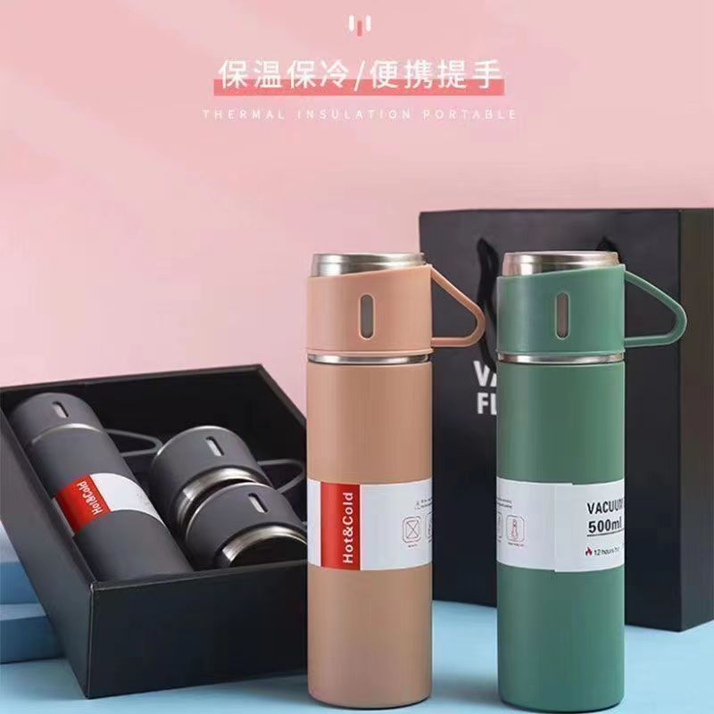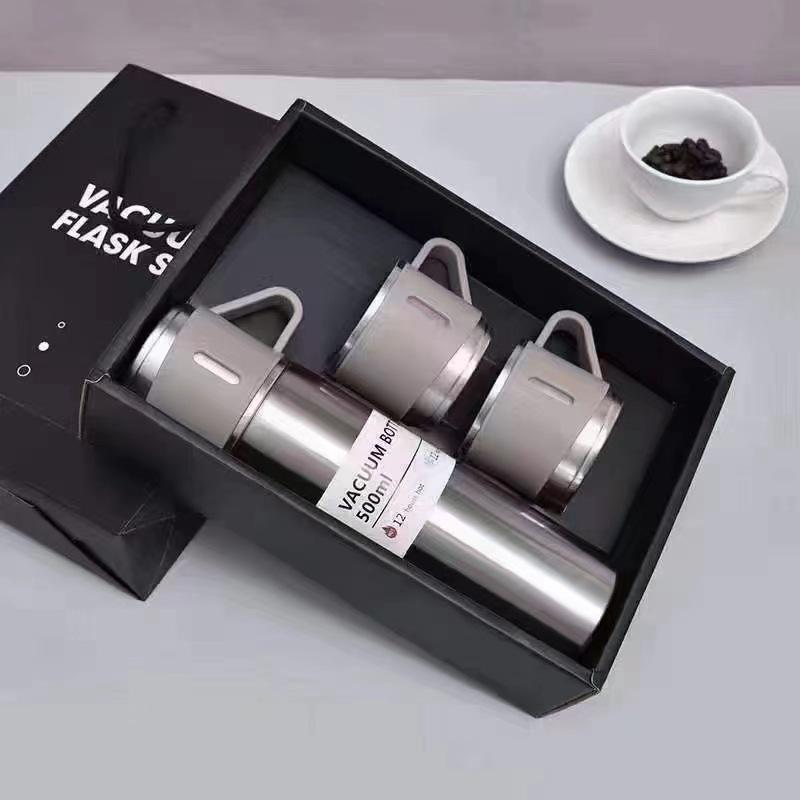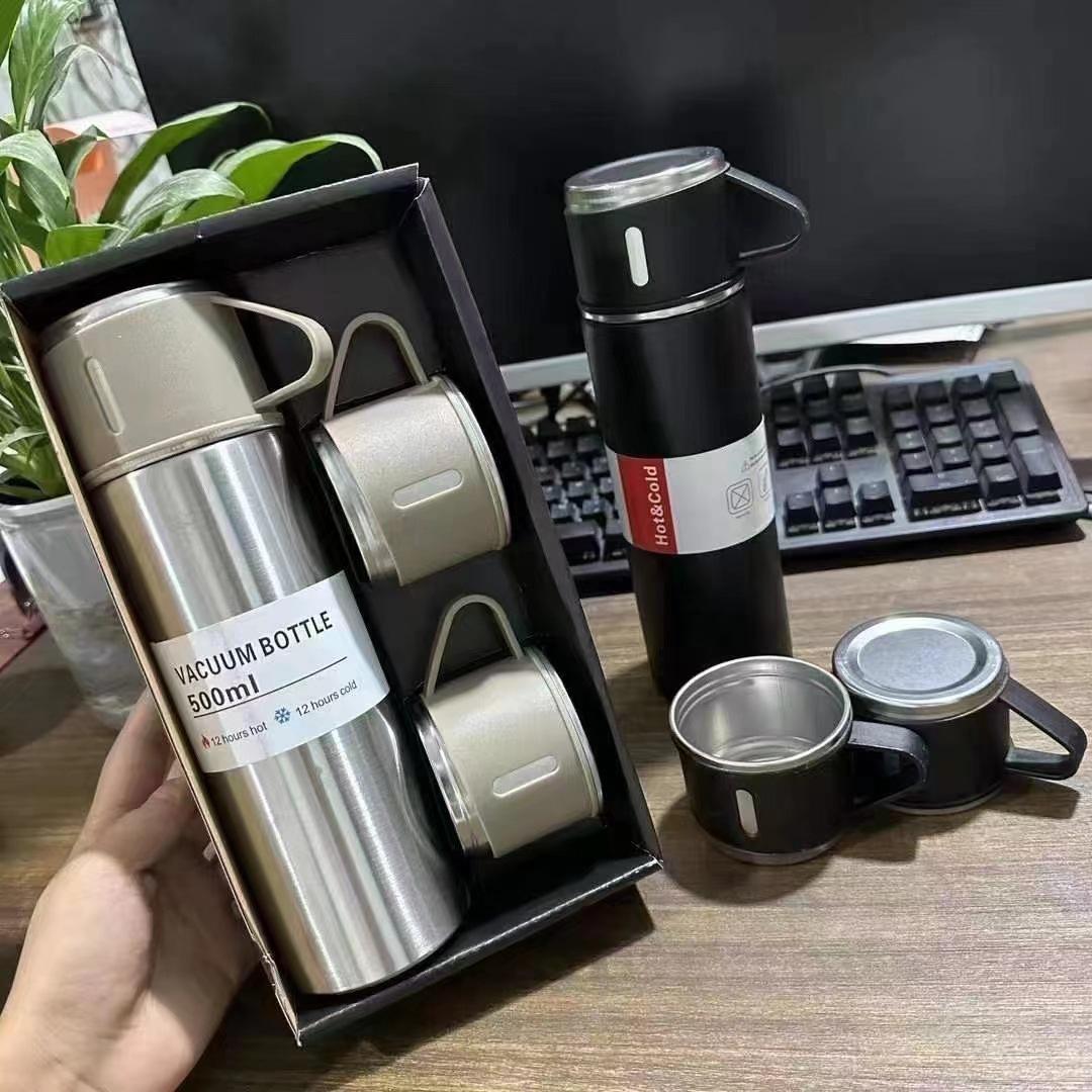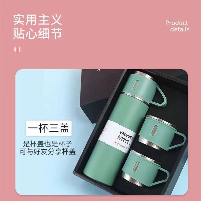 Set de Vaso Termo de Acero Inoxidable 304 Un Vaso Tres Tapas Grado Alimenticio Vaso Recto Set de Taza Portátil Taza de Regalo de Negocios
