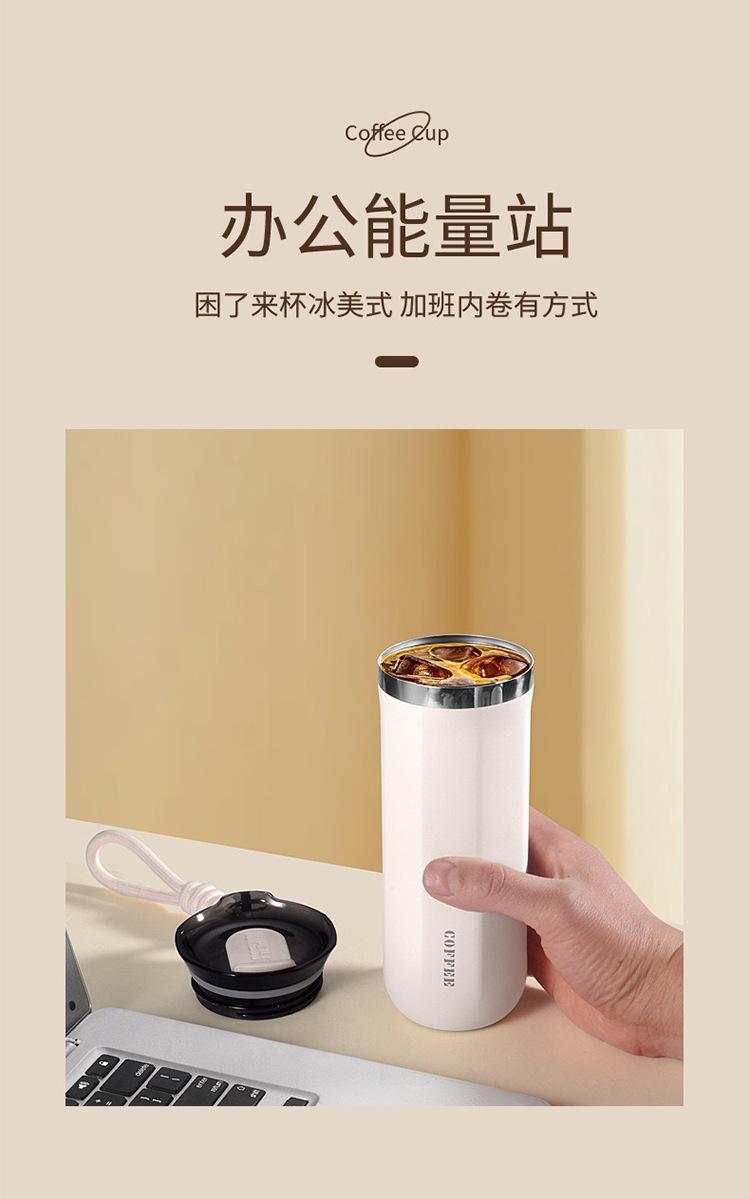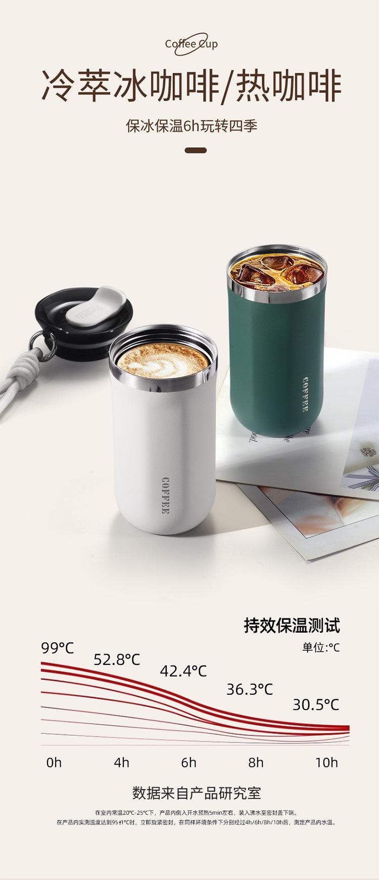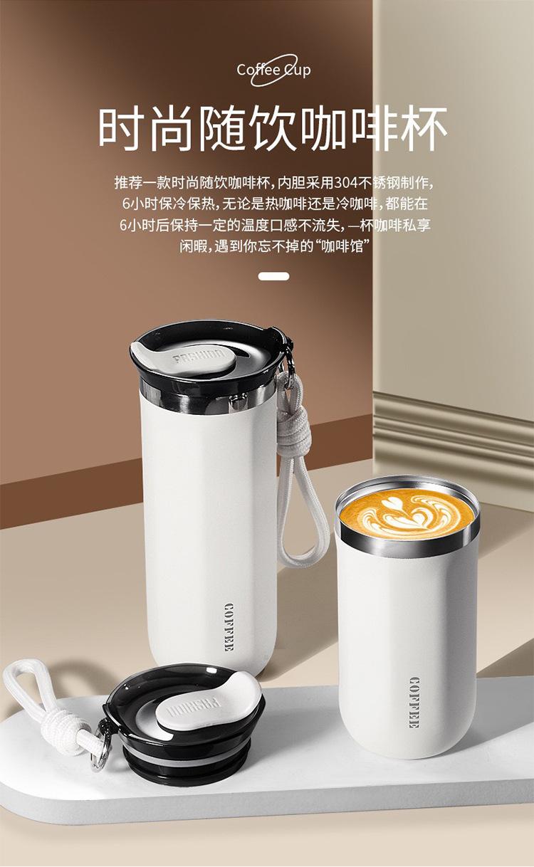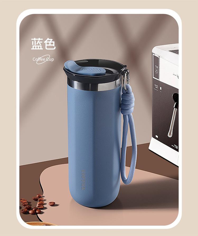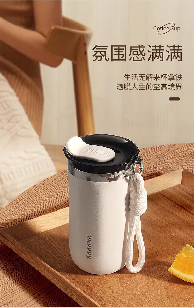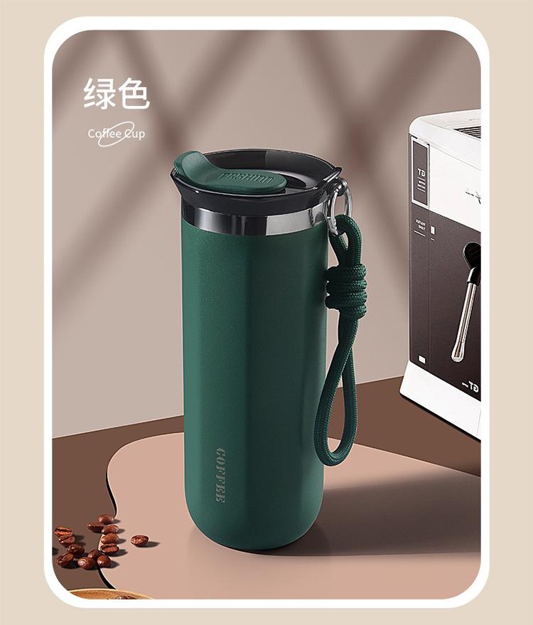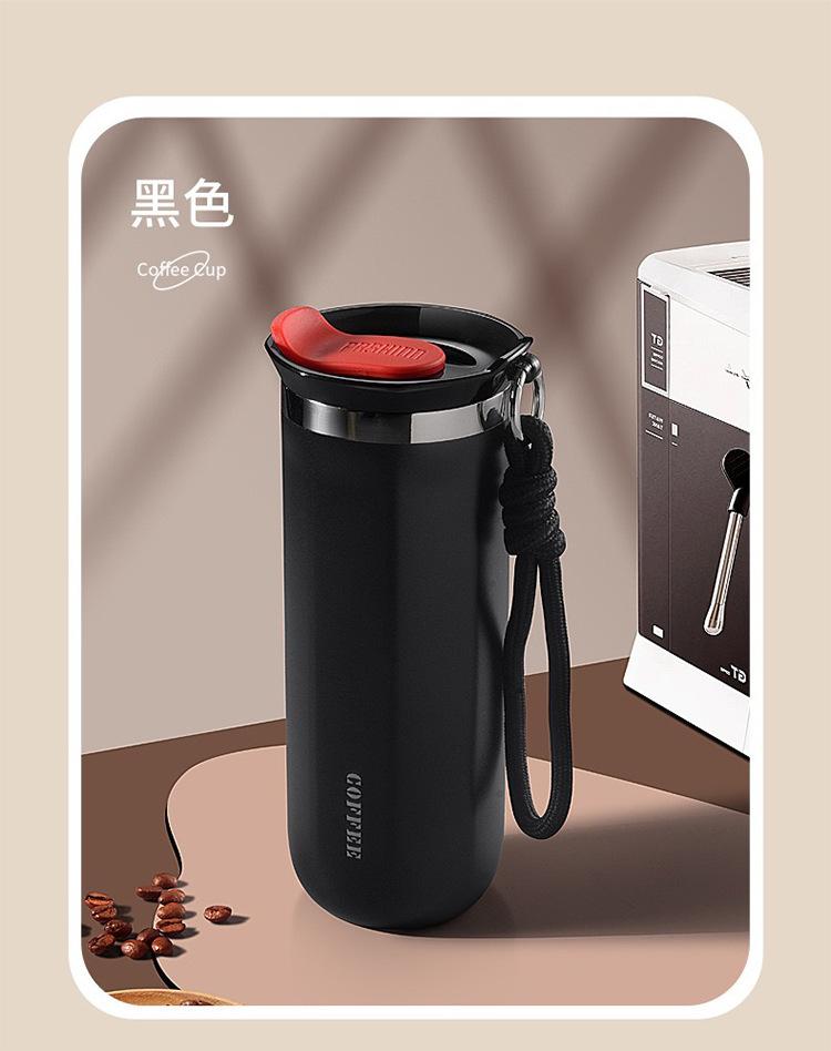 Taza de Café de Acero Inoxidable 304 Vacío Doble Capa Gran Capacidad Taza Termo Hogar Tapa Abatible Vaso Recto de Moda