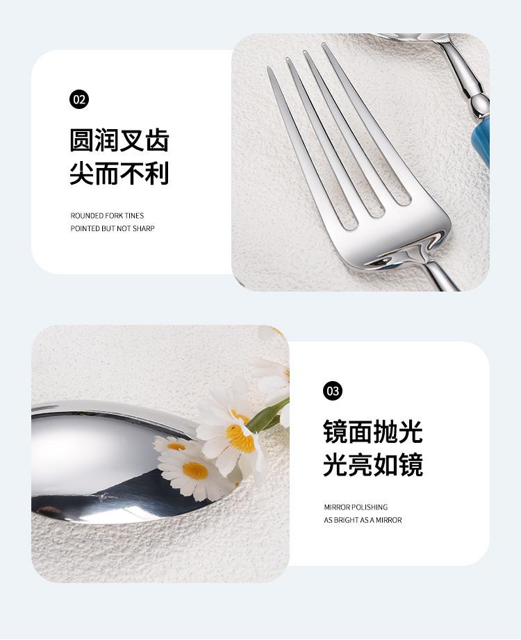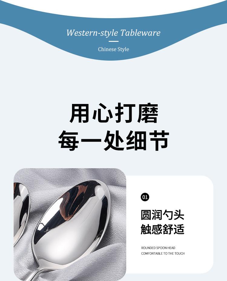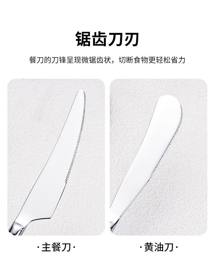 steak knife, dinner knife, dinner spoon, dinner fork, round spoon, teaspoon, tea fork