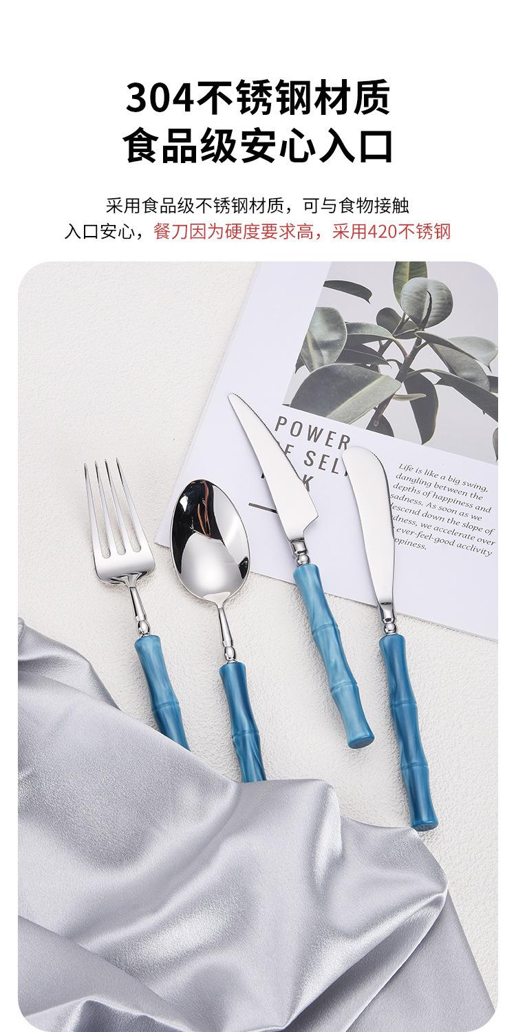 Acero Inoxidable Cuchillo Tenedor Cuchara Nudo de Bambú Cuchillo para Bistec de Alto Valor Tenedor Cuchara para Revolver Té con Leche Práctico Juego de Cubiertos Cuchara de Postre Tenedor
