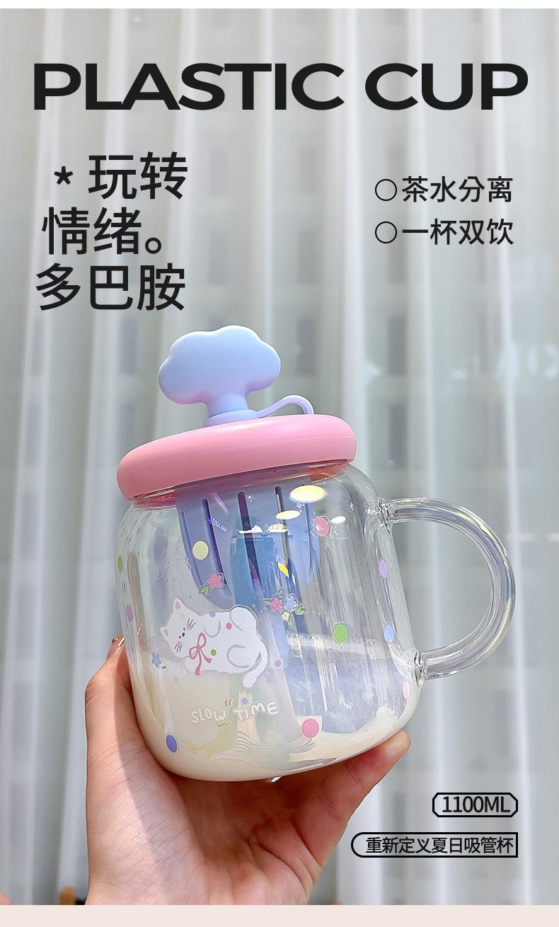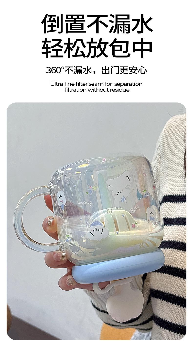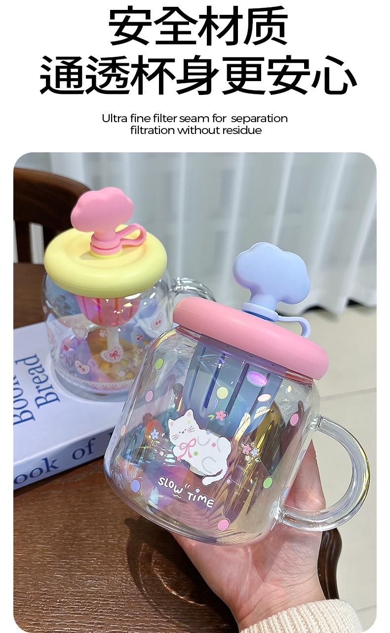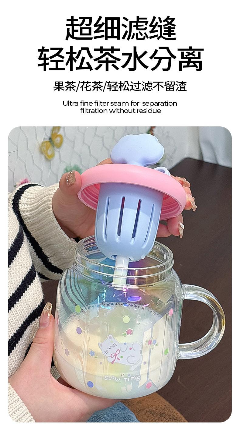 Vaso de Vidrio de Verano de Alto Valor para Niñas 2025 Nuevo Vaso de Oficina de Gran Capacidad con Separador de Té y Pajita