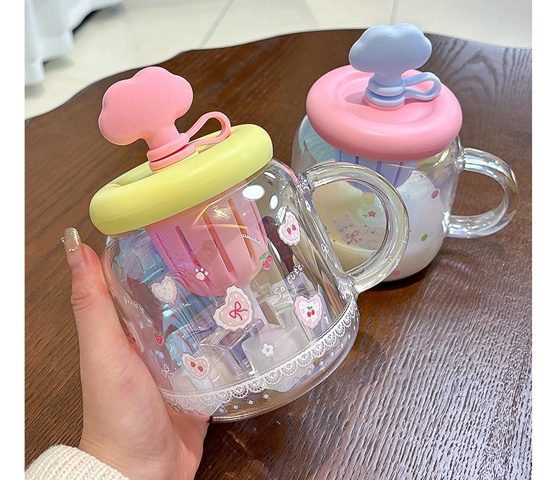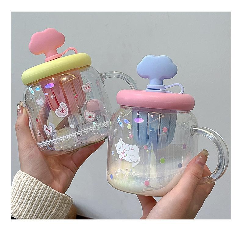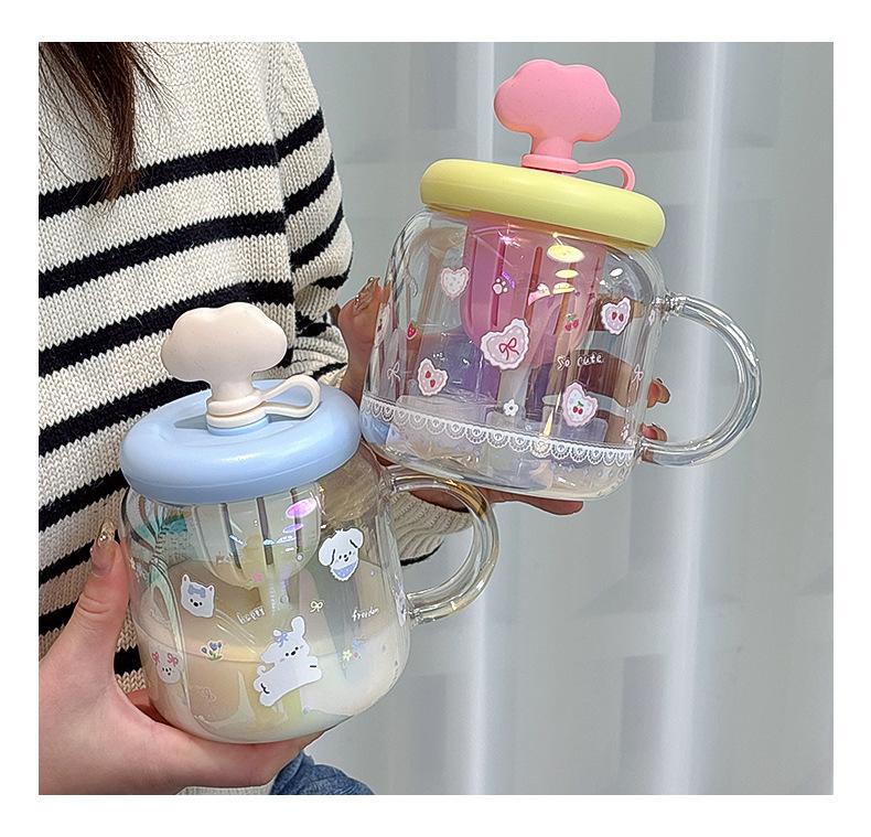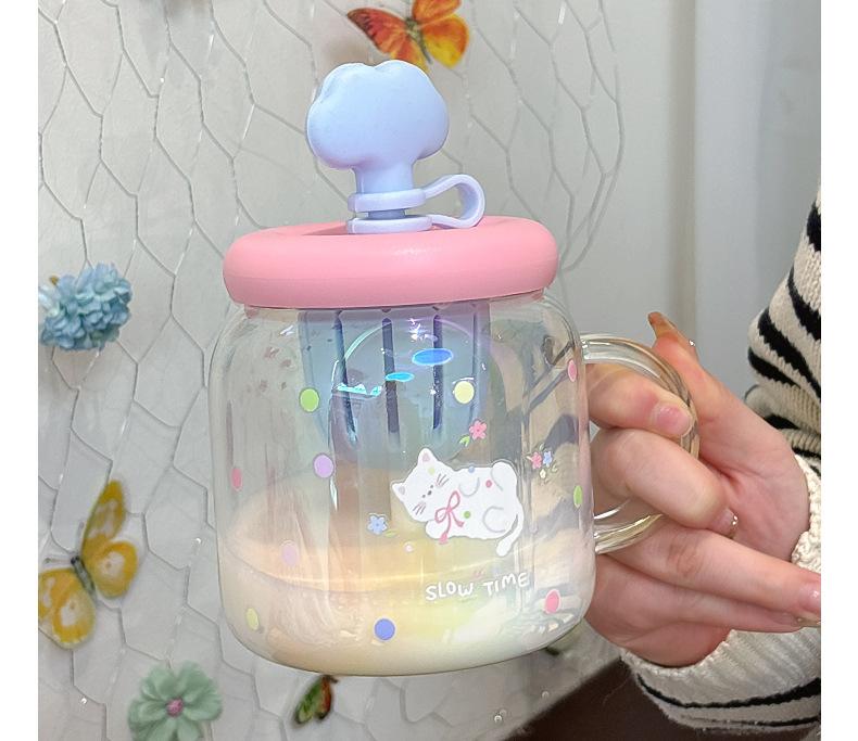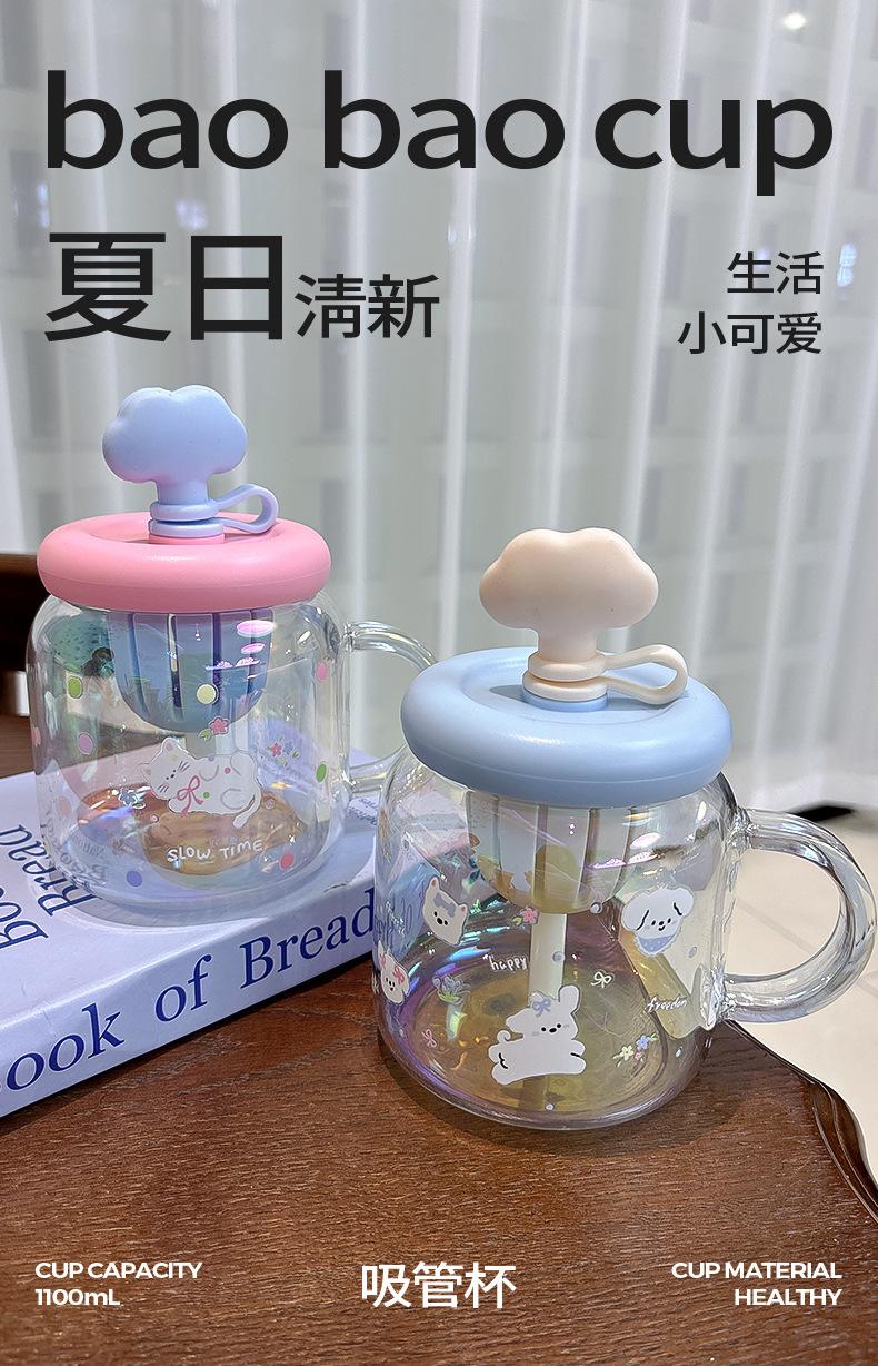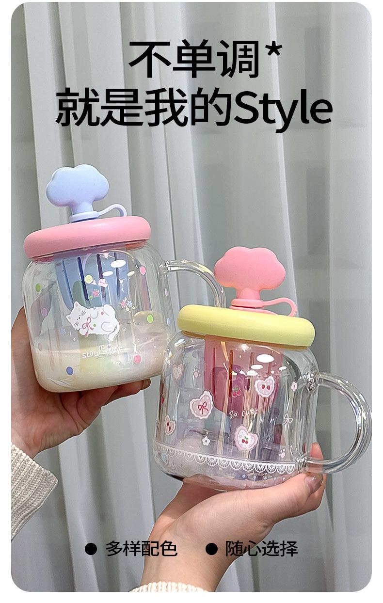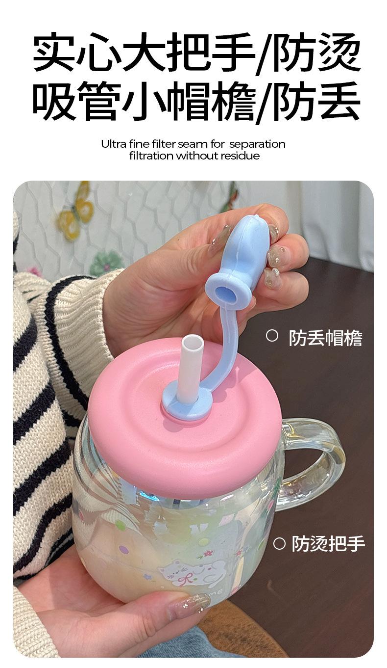 Vaso de Vidrio de Verano de Alto Valor para Niñas 2025 Nuevo Vaso de Oficina de Gran Capacidad con Separador de Té y Pajita