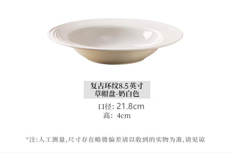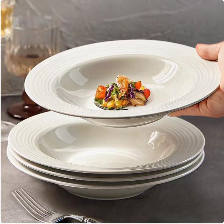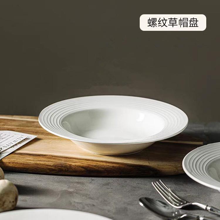 Plato de cerámica blanco puro plato acanalado de sombrero de paja plato para pasta plato para comida occidental plato para arroz plato hondo plato para el hogar plato para sopa
