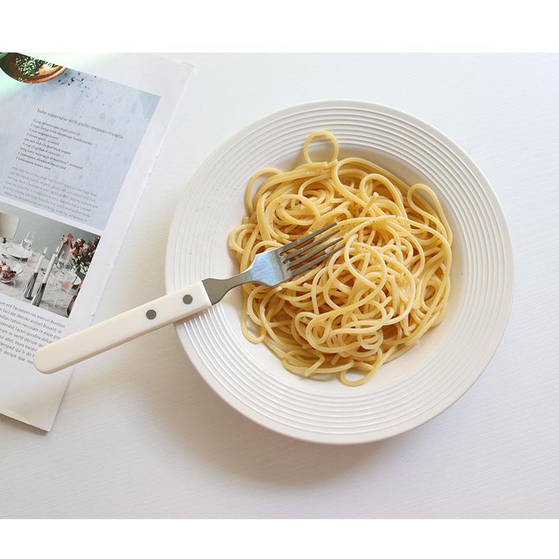 8.5 inch pasta plate*2+imitation wood handle fork*2