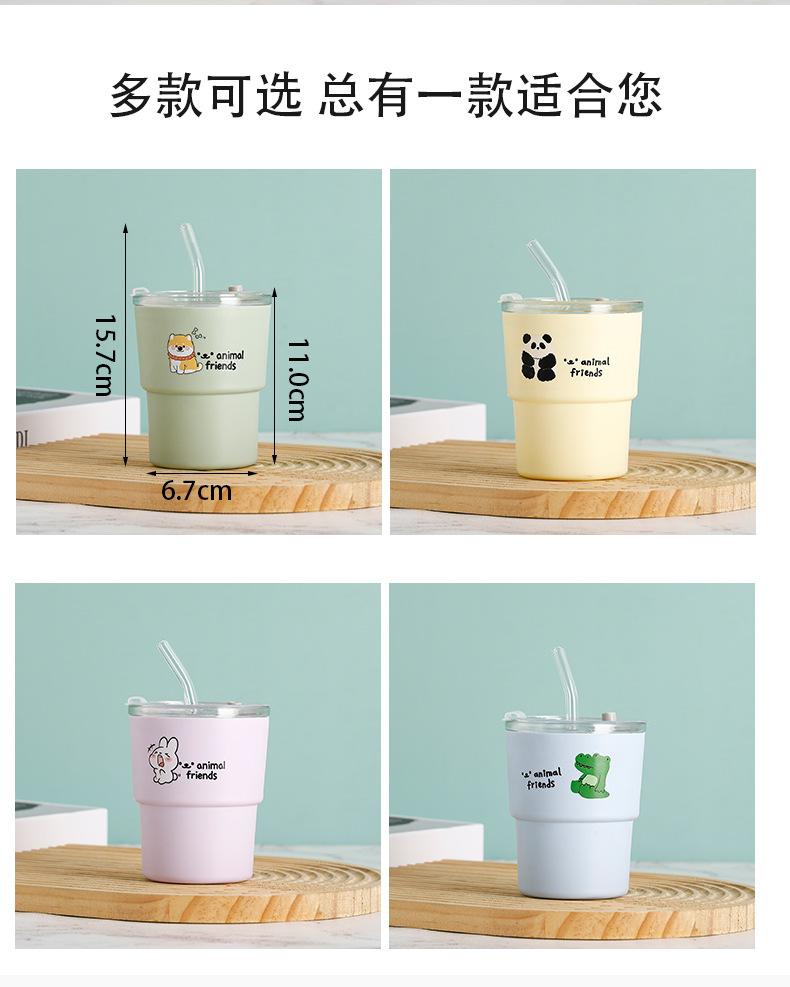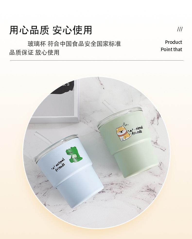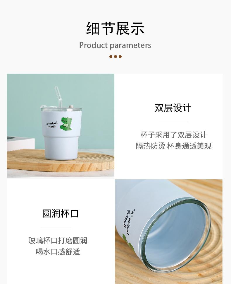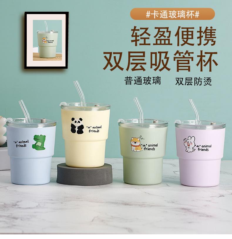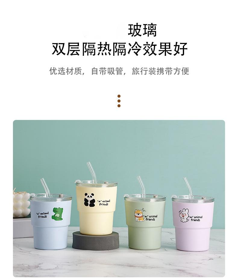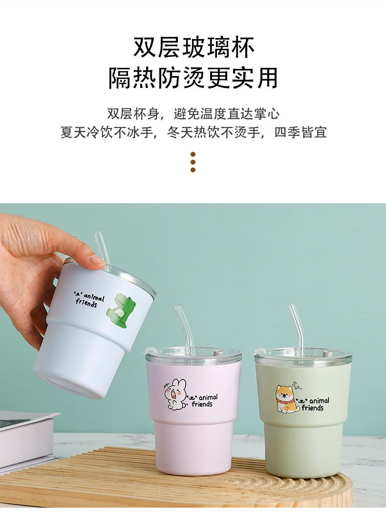 Lindo Vaso de Vidrio de Doble Capa de Dibujos Animados con Pajita Vaso para Agua Caliente Vaso para Beber de Oficina de Aspecto Sofisticado Vaso para Bebida de Café de Celebridad de Internet