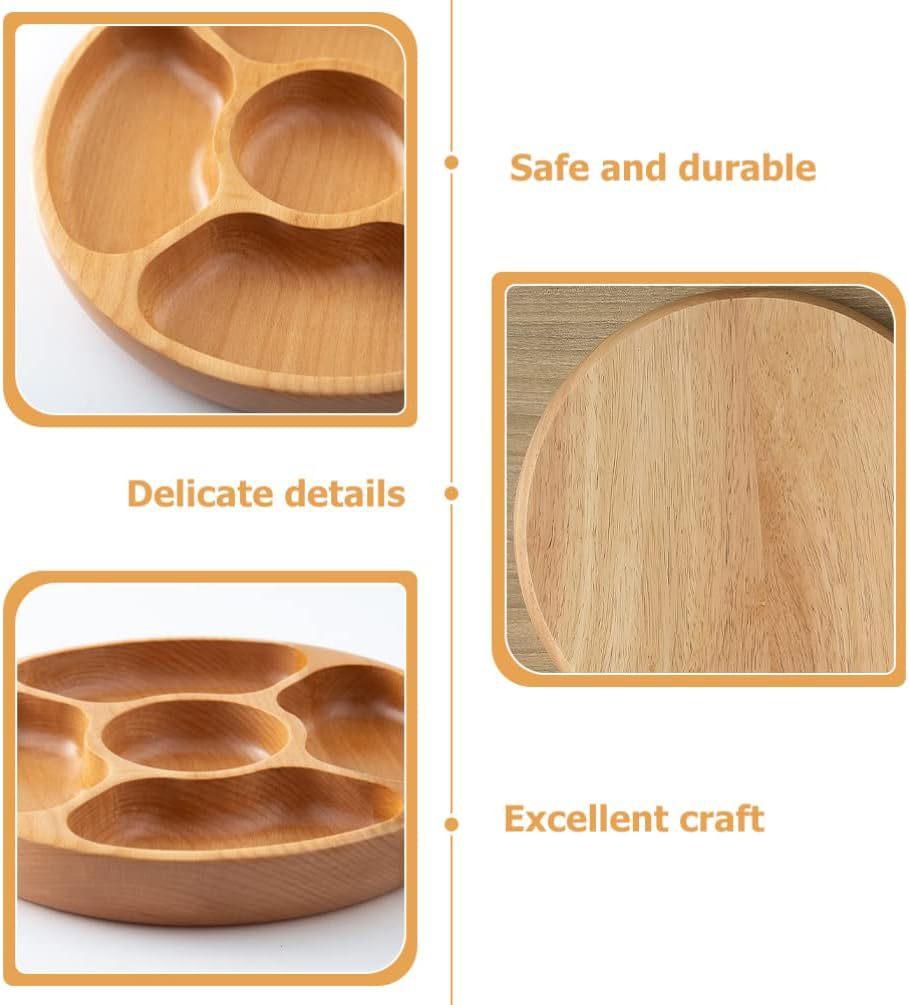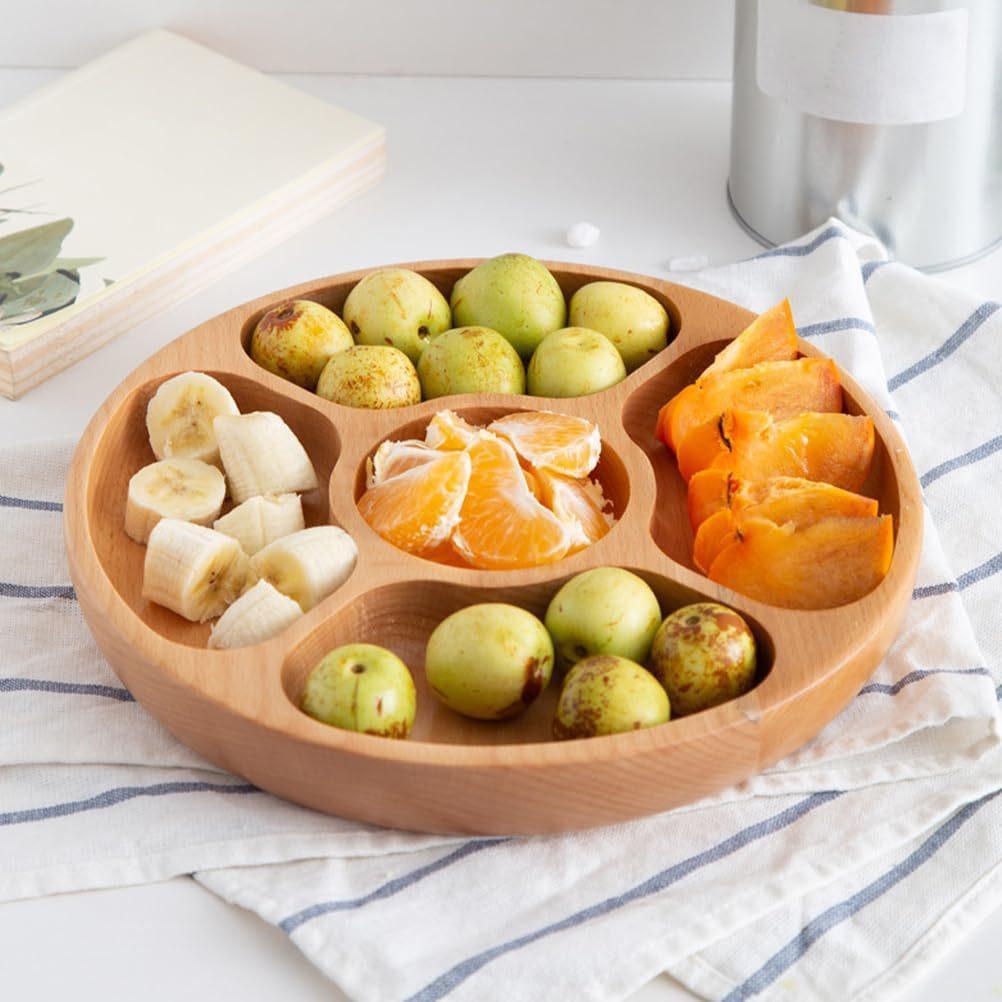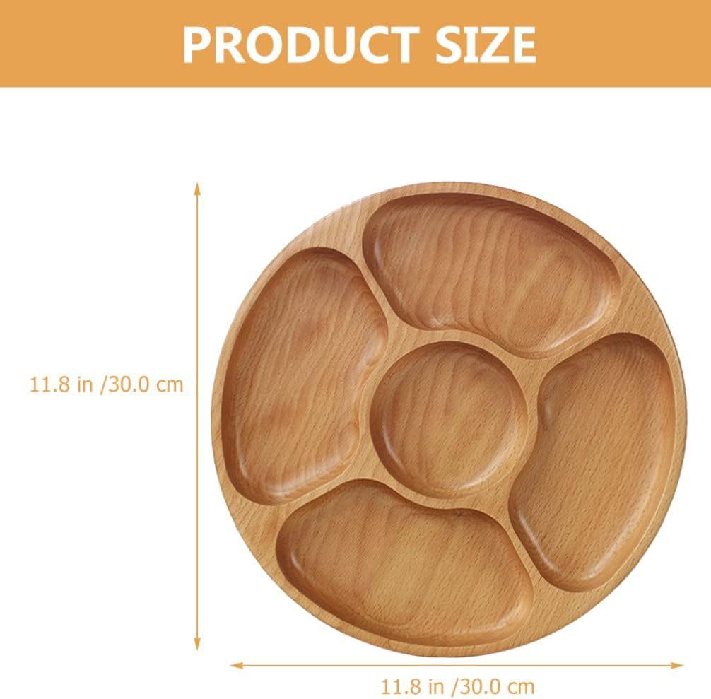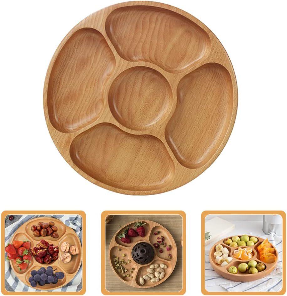 Plato de Madera Seccionado para Frutas y Frutas Secas Bandeja Redonda para Dulces de Semilla de Girasol Plato de Madera para Postres y Frutas Secas para Restaurante
